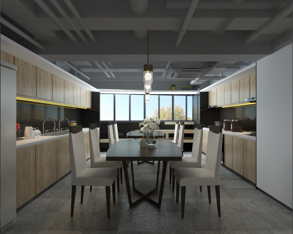 线条平直清晰的餐厅展现了简约有序的一面,与瑜伽素食餐饮的规则相契合,设计师谢剑华设计意在营造平和放松的心境,并以此帮助学员放松喧嚣的心灵.