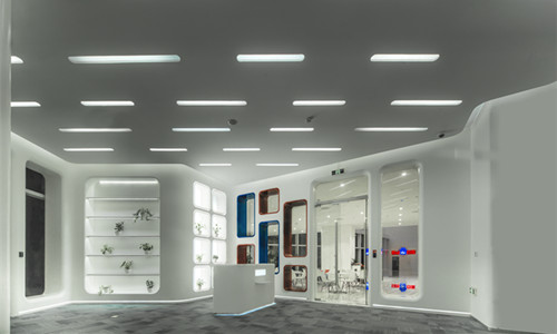 设计师高志强综合香氛系统,模数系统隔音降噪系统等,用白色和灰色两个色调营造了百度大堂,让百度员工在八小时工作中,始终保持平和的工作状态;趣味性的胶囊电梯上上下下中,感受墙面中国山水画带来的穿越时空的感觉;休息区布置了书,阳光,躺椅,还有绿色植物,让员工休息后保持工作的活力。