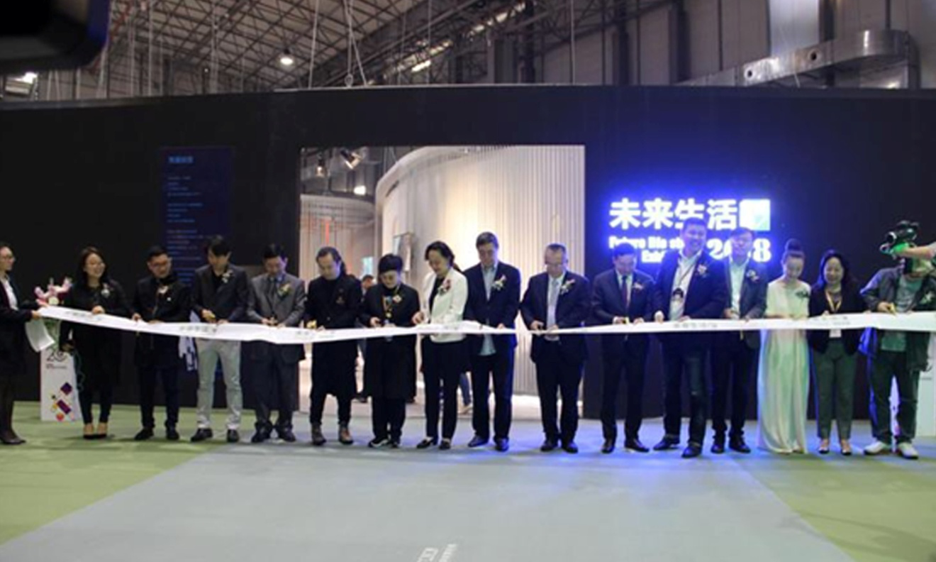 建筑师孙大勇先生与中国室内装饰协会会长刘珝先生、总策展人卢涛先生、网易家居和网易设计全国总编辑胡艳力女士、曾建龙先生、邵唯晏先生、雪梨女士、柏万军先生、以及张丽女士和张冰冰女士等一众家居设计大咖共同上台为“2018未来生活方式展”进行开幕剪彩仪式!