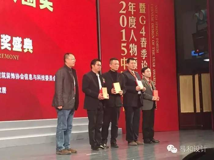 EH+DESIGN易和设计集团创始人/设计总监马辉,在本次颁奖典礼上一举连续赢得<2015中国设计杰出青年领袖>、<2015中国设计年度人物入围奖>两项大奖,EH+DESIGN易和设计集团在设计师马辉带领下,同时荣获<2015最佳样板房专业化设计机构>、<2015年度最佳设计团队>两项大奖,主案设计师李扬还荣获<2015年度杰出设计师奖>。