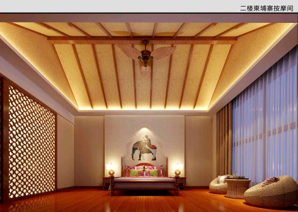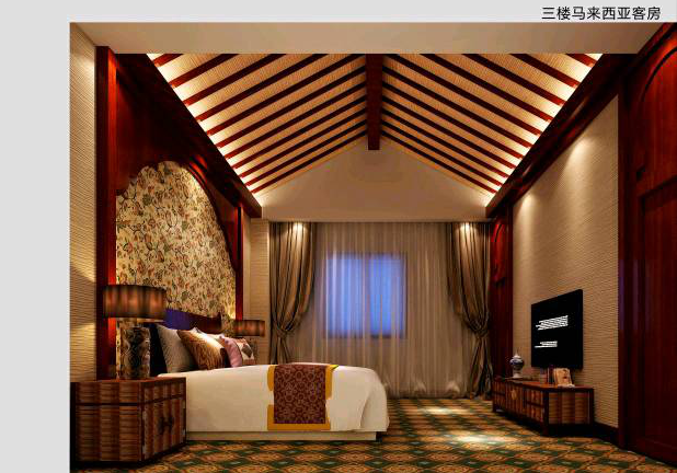 本案以壮族骆越文化为设计理念,许贵萍设计以“铜鼓、绣球、壮锦”为设计元素,将元素细小的精湛文化放大作为酒店的精髓思想,来体现当地独有的文化特色二三层的客房和按摩房的设计元素来源于东盟国风情,将每间按摩房及客房根据东盟各国当地特色文化为设计理念,设计出不同的特色客房。