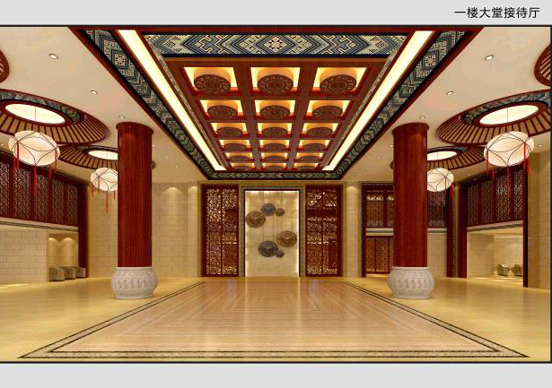典雅浪漫高贵和东方文化中的厚重质朴相结合,刚步入大厅就可以感觉到设 计者所要表达的中式传统文化的沉淀感,巨大的柱子带来恢宏感,红色雕刻花纹处处点缀,许贵萍设计在此处带来了极致的视觉冲击和文化风韵。