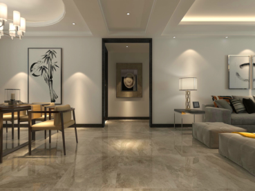 整个空间地面采用花纹大理石拼接而成,颜色淡雅与空间色系非常适合。