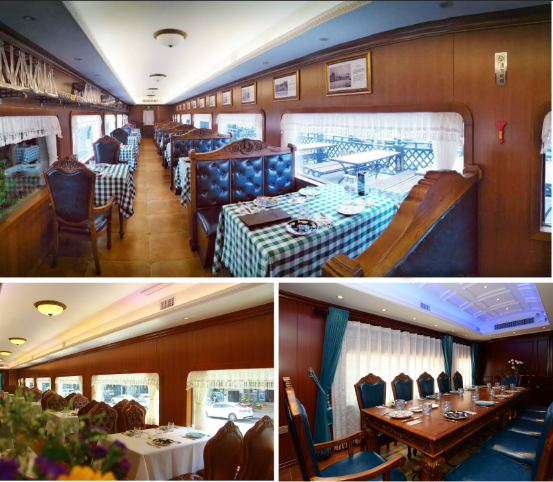 “绿皮车记忆火车餐厅”总占地面积约360平方米,该餐厅总计设有100多个餐位。为展现中东铁路文化,餐厅布局为欧式风格。
