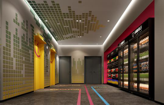 健身房的明黄色酷炫灯具构想出一曲节奏动感的乐曲,配上几何处理的壁画,仿佛已经感受到了挥洒汗水的快感。