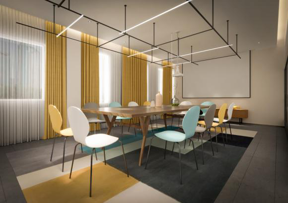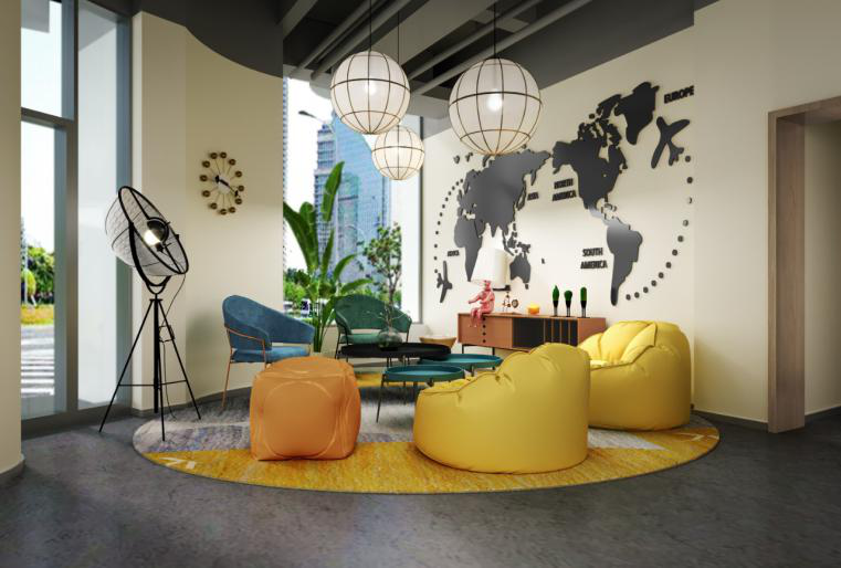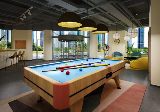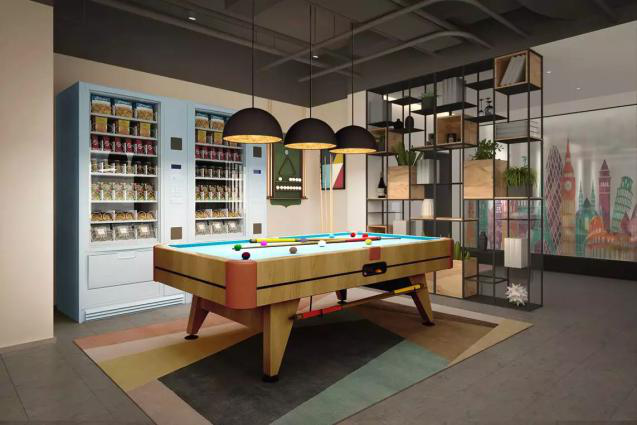 空间的明暗与疏密,都在陈列着艺术的缜密思维。愉悦的色彩带来轻松的氛围,让这个公共娱乐的空间看起来充满了活力。