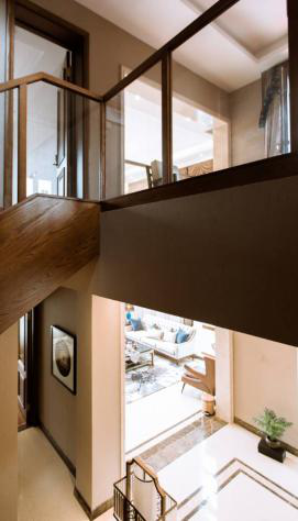 楼中楼梯的布置是一重要元素,邹咏把握住空间利用效率,安放在合理位置,使得楼梯与空间融为一体,扶手的木质设计把环境铺垫出柔和感,镂空的扶手设计使得通透感强烈凸显。层次分明,不拖泥带水的设计灵活。