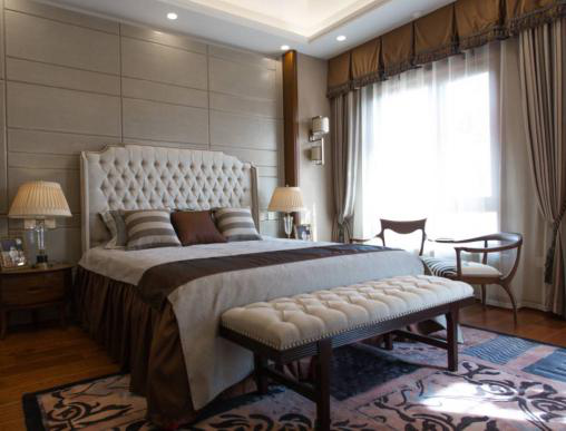奢华感在后续接力而上,细节处理凸显设计师功底,在选材的处理上,做到相互映衬,互补不足,交错纹理储物柜的质感浓厚,都市生活,本该如此。