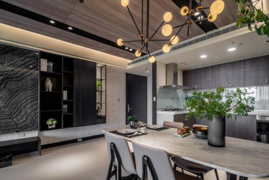 擅长色彩叙事及空间调和的 仝育设计,庄媛婷、郑瑞文总监,将美的精髓抽丝交织,使自然不在眼前所见,而在举手投足间。流畅的动线牵连光线漫室,使居室在光明中呈现气韵,形塑或松或慢的心境变化——使生活节奏随之调匀,终将汇聚的大方气度自是不言而喻。当设计师推送太极之手,于往来的静慢循环中,调和出这处大隐于市的自适归所,让使用者不知觉间习得空间的内在哲学;因而当生命又遇波澜就再也不惊,能够保持本心一切如常。