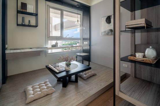 行走至半开放茶室,仿若进入偌大空间中的喘息之域,巧致的小天地内调配纯粹色度,于雪里点墨,宁静空间里晕散简约的框线语汇;并设计和式坐榻使人于坐卧之间,任由茶香染衣,低伏观看大千世界。而铺排的木座搭配镂空柜体,理路清晰的柜身线条卸除繁复装饰,更加引人减去不必要的俗日烦恼,轻身入座,细尝一口清净滋味。
