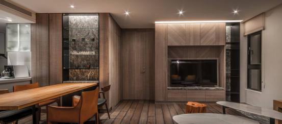 在凝聚家人情感的餐桌中,设计师以陈旧怀古的老桧木料,拼凑出富含情感与人文历史的独特风味;收纳展示柜则用铁件元素框构,与木皮及石材质地呈现新旧交融的对比氛围。此案中业主展现对于设计师的全权信任,而设计师同样也在设计中,表达出对空间的重视;因此在物品和情感的连结上,亦给予高度的尊重及欣赏,从而促成这一件独具品味质感的人文雅作。