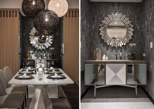 (图)拉开木门,独立于客浴外的洗手台面登时成为餐厅一方华丽端景。