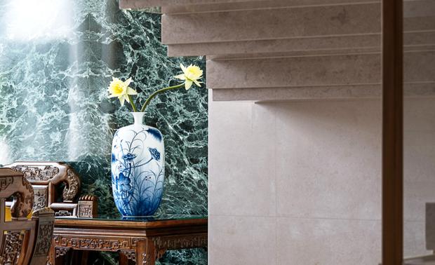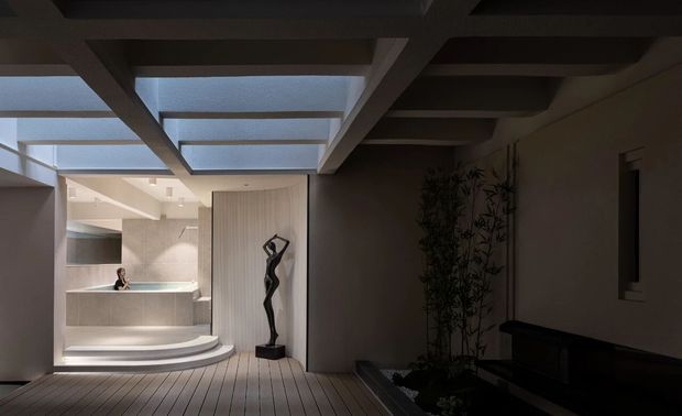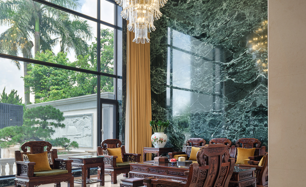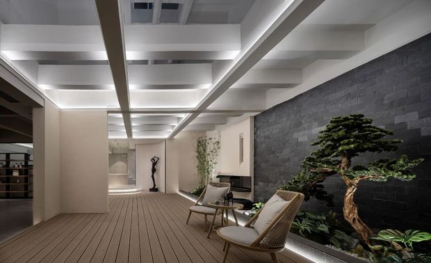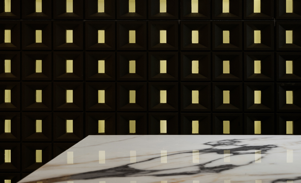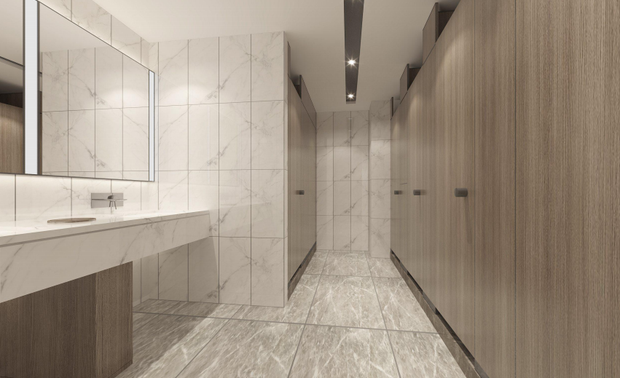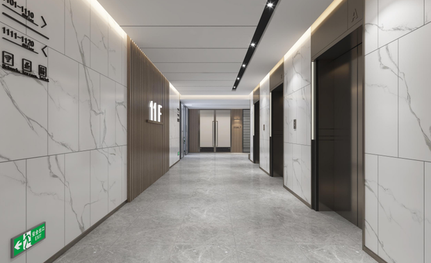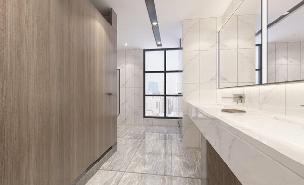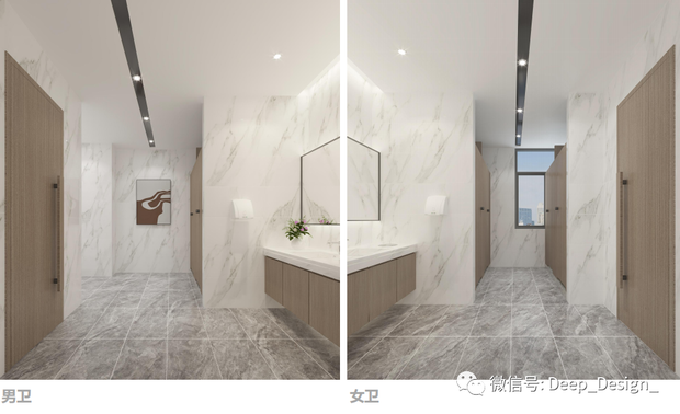 主材:灰色大理石、雅士白岩板、大理石砖、古铜拉丝不锈钢、免漆板、金属铝板、铝方通、工艺玻璃等