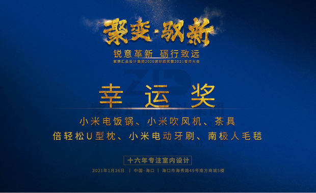 紫禁汇品设计集团2020述职颁奖暨2021誓师大会于2021年1月26日下午在集团办公区如期举行,全体成员出席会议,总结过去展望未来,会议圆满成功!