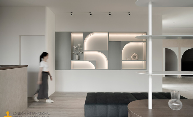全球指标性设计大奖London International Creative Competition(英国伦敦国际创意大赛,简称LICC),于2006年开展至今,每年皆向多国设计好手发出邀请,藉由评选出当中佼佼之作,引领建筑、绘画、影像等11大创作领域齐步向前!擎森设计 设计总监 陈楚扉 此次以母婴摄影品牌空间《时序》参赛,从孕育生命的意象汲取灵感,以流动曲线串联场域、大地色系铺陈温暖基调,并搭配特殊涂料和实木格栅等环保建材,在细腻的光影层次中,将母爱的包覆感转译为身历其境的感官叙事。从入口延伸至洽谈区,每处转折皆以弧面柔化处理,引导来访者安心游走其间,卸下紧绷情绪,沉浸于静谧而充满生机的氛围,作品理念与大赛核心精神高度契合,荣获本届「shortlist」殊荣!