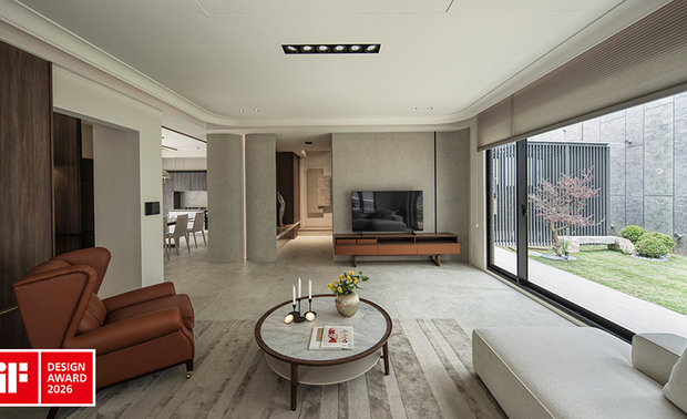 世界四大设计奖之一的德国 iF 设计大奖(iF DESIGN AWARD),自1954年创办至今,已在国际间拥有无可取代的指标性及前瞻性。2026年 iF 设计大奖由21个国家、129位设计界权威组成评审团,依据理念、外观、功能、差异化与影响力等五项指标,自68国、逾一万件参赛作品中,评选出最优良的设计之作。为诠释人与自然共融的居住理想,D.H.I.A黄静文室内设计 设计总监 黄静文 于实品屋《山岚艺境》中,以大板砖山石纹理搭配手感涂料,层叠铺陈内敛低奢的空间质感,并透过大面落地窗将庭园绿意引入室内,实现「家中多一座花园」的诗意生活。全案兼融自然美学、空间秩序与永续建材理念,完美契合赛事对「创新、机能与永续设计」的严格标准、顺利脱颖而出,荣获本届赛事「Winner」殊荣!