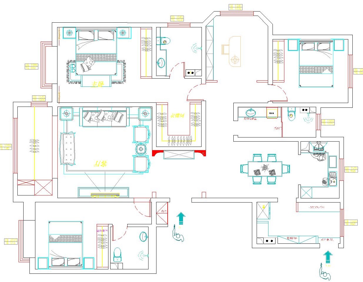 空间布局:四室的户型功能合理:四个卫生间,其中一个设计为收纳间。