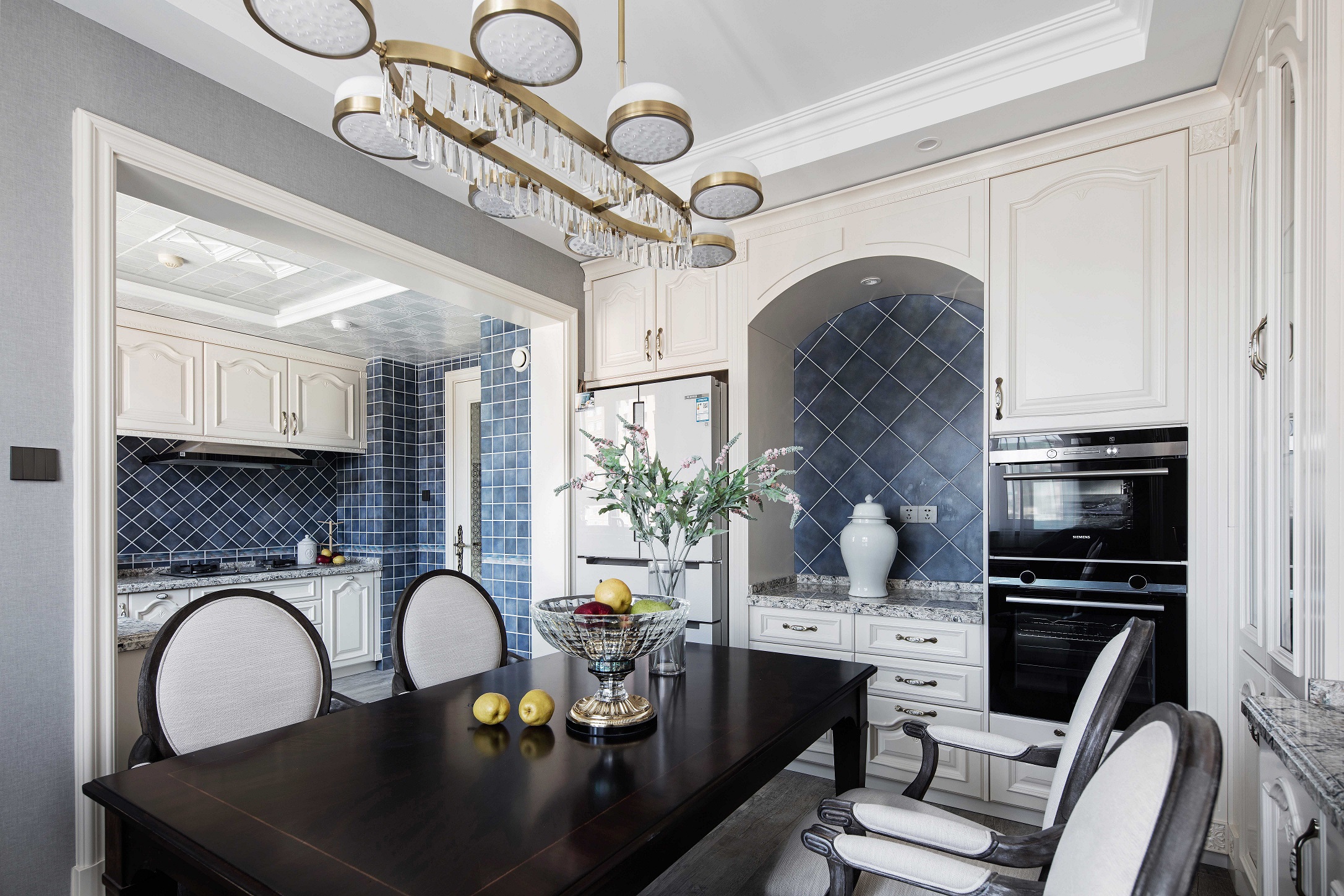 本案原始为毛坯房,14楼,落地窗,观景条件良好。原始结构门厅相对杂乱, 现有餐厅较小,需要在结构上重新梳理。房屋自带新风,增氧,加湿系统,居住舒适。 1 重新梳理了入户关系 使入户空间宽敞明亮 2 做了中西厨分离设计 3 按照客户的家庭需求 废掉一个阴面卧室 作为餐厅使用 满足了客户家庭聚会和女儿学习空间相互影响问题 解决了厨房收纳不够 空间体量不足问题 4 砸掉墙体 以背靠背柜子形式替代 节省空间的同时增加收纳 做好收纳空间分类。