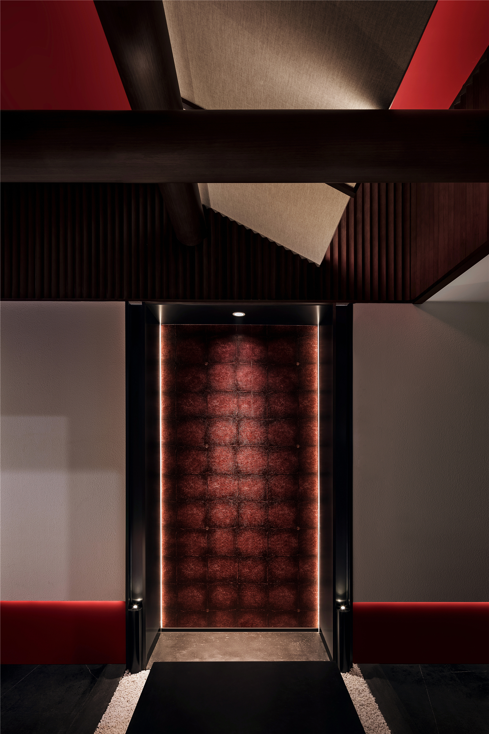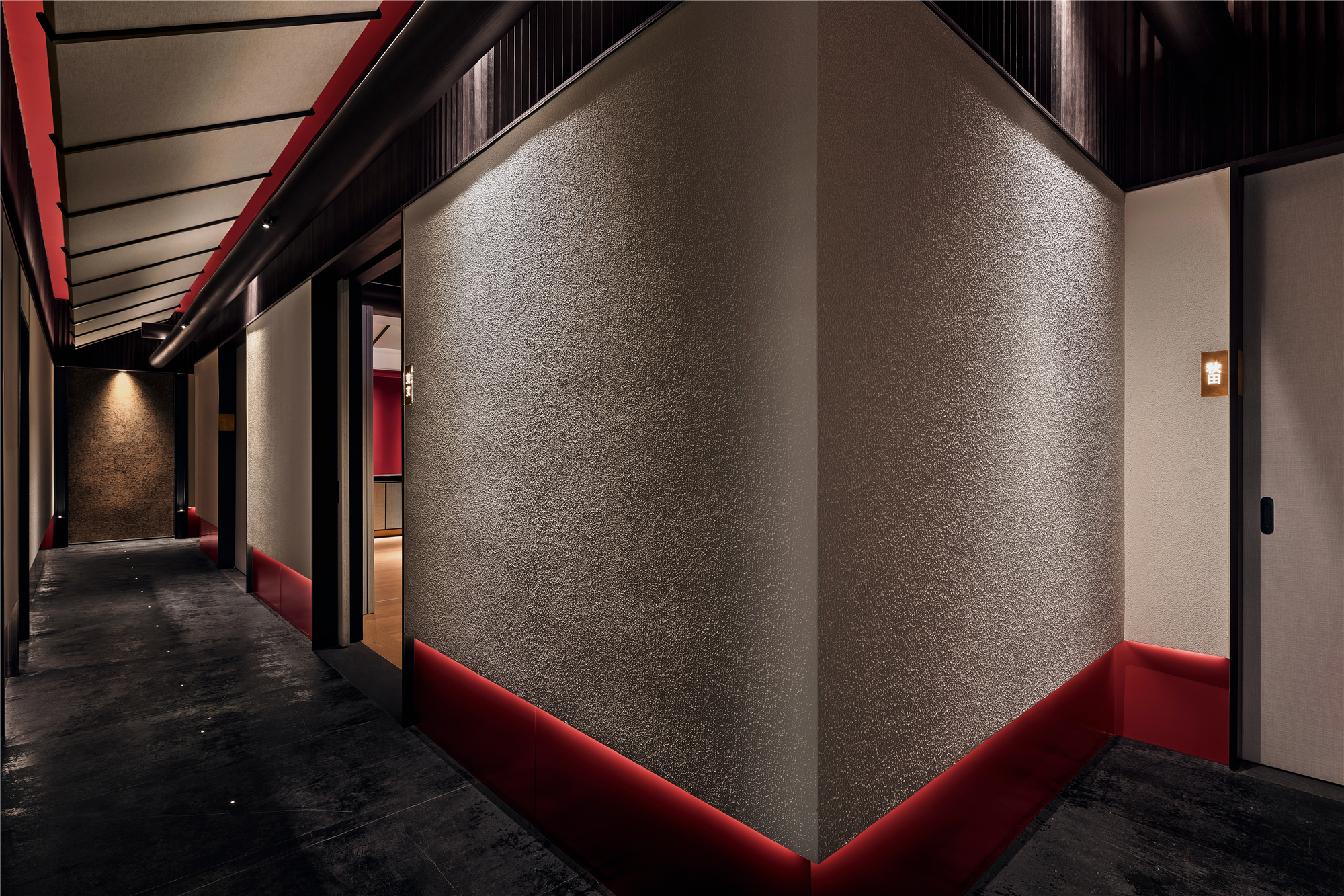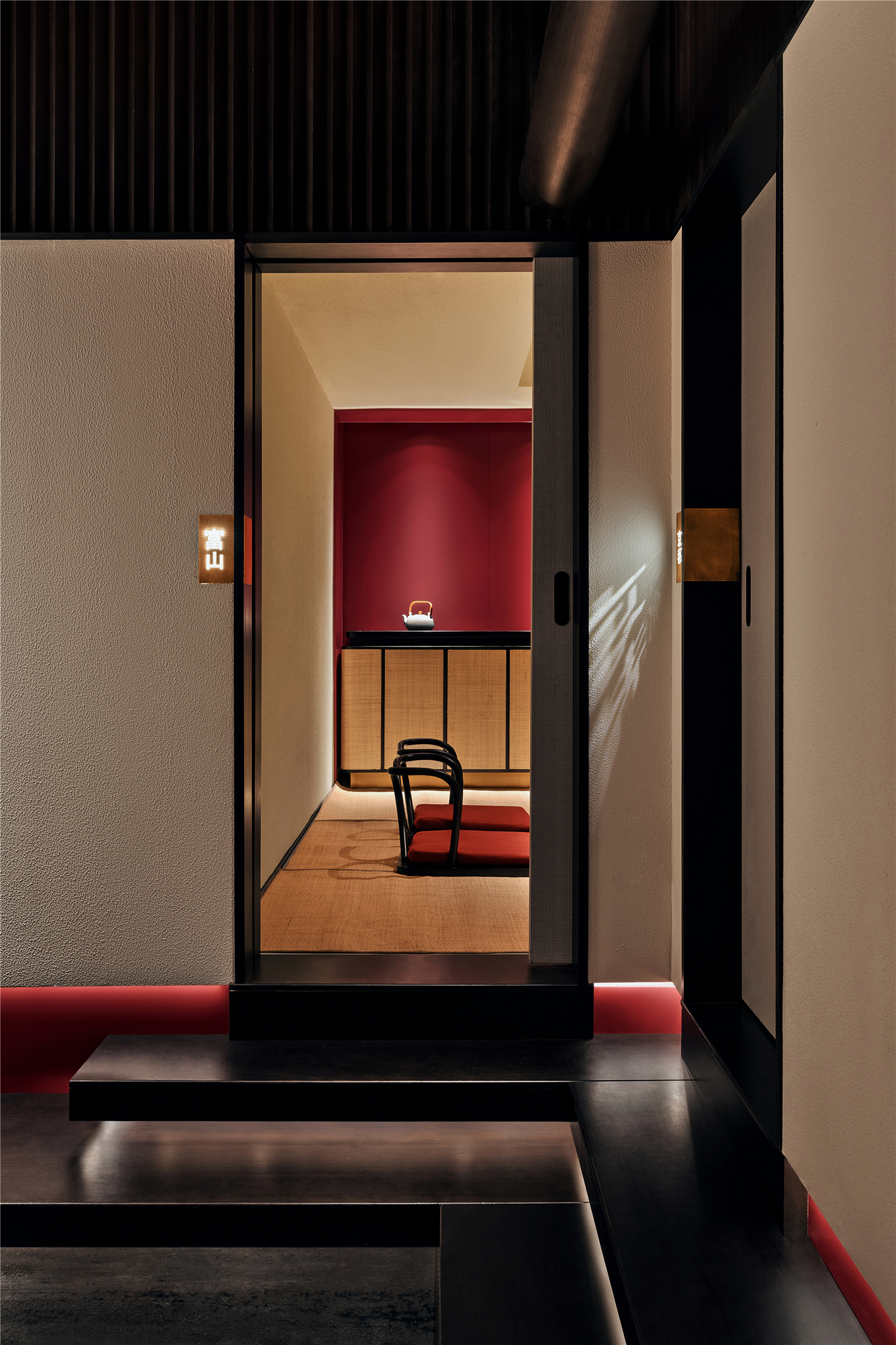 用户体验:每间包房以日本地名命名,富士、京都、东京、神户、千叶等铜制门牌嵌有光源,斑驳的光影投射于粗粝的墙面上,颇有几分雅意。为了让用餐者得到纯粹的体验感,设计师在软装陈设上也丝毫不敢松懈,从松柏艺术装置、和服摆件到日式挂画,无一不精到,甚至餐具摆盘也颇费心力,不同食材,对应的摆盘方式皆有考究。细微之美,却蕴含着设计者质朴的匠心。