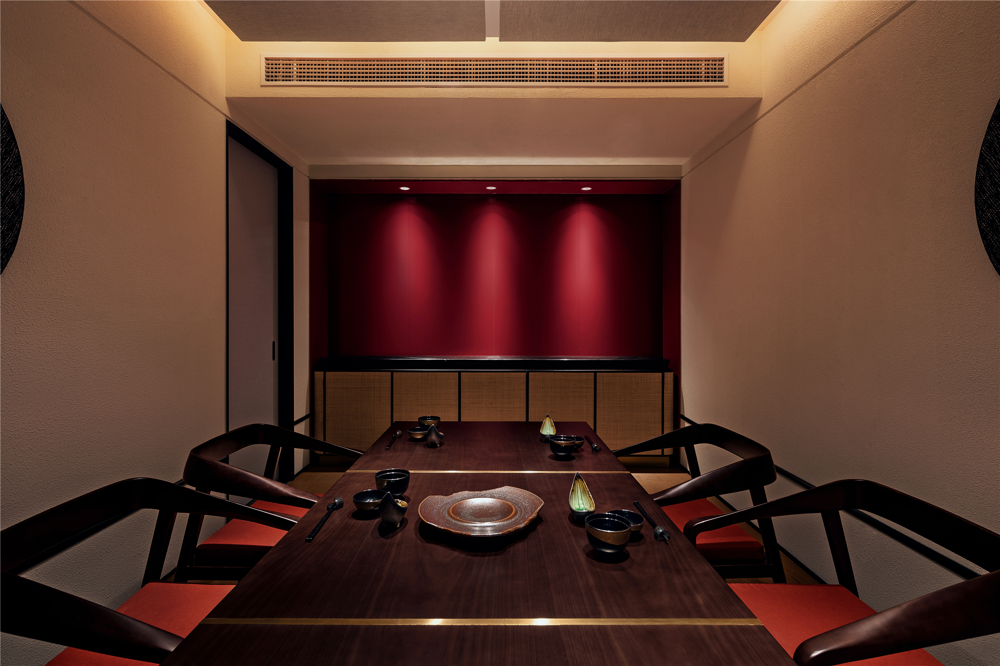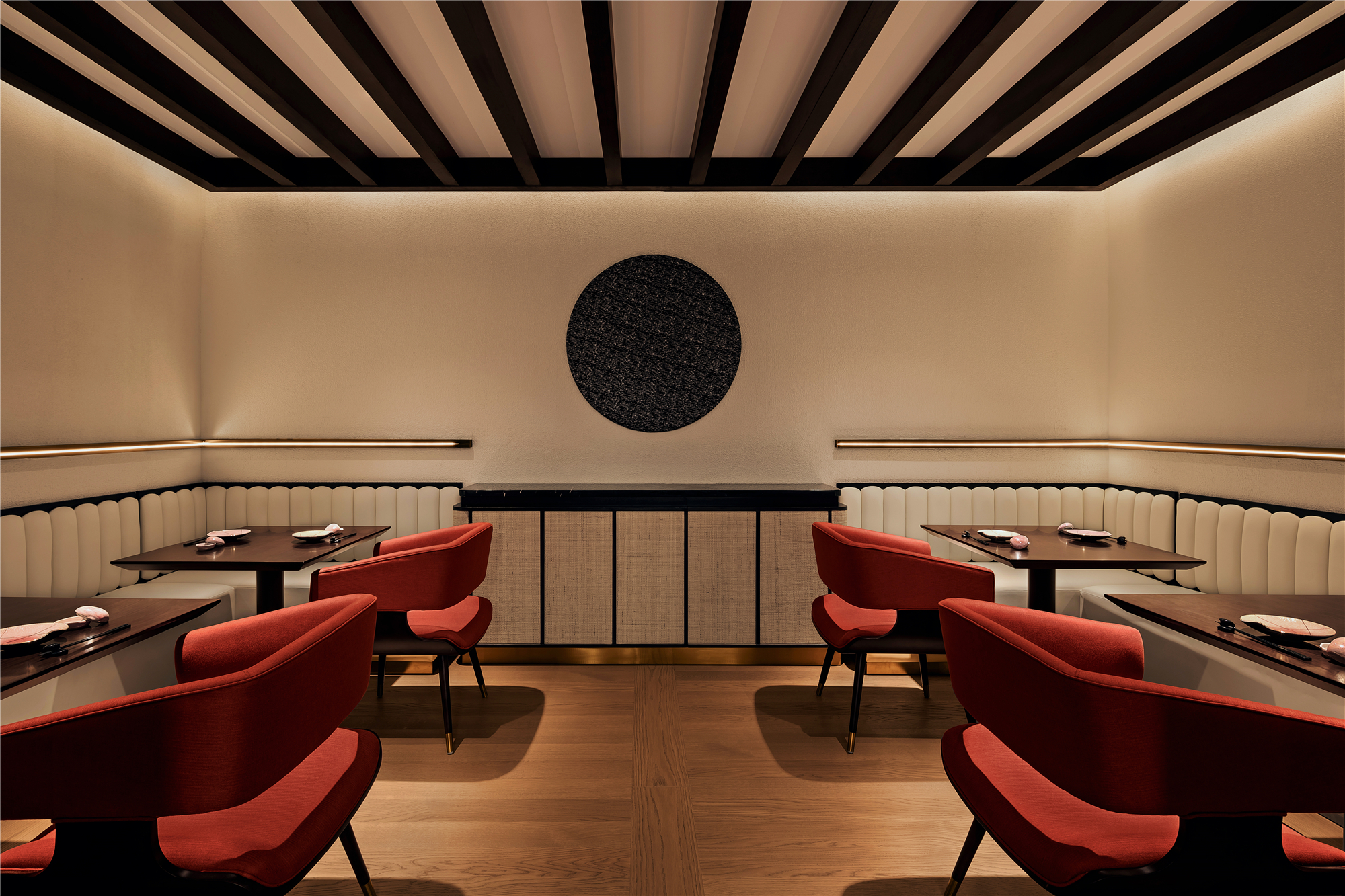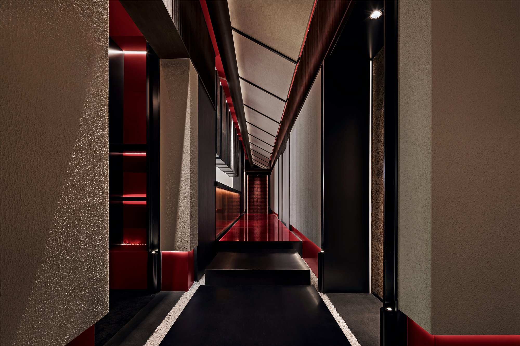用户体验:每间包房以日本地名命名,富士、京都、东京、神户、千叶等铜制门牌嵌有光源,斑驳的光影投射于粗粝的墙面上,颇有几分雅意。为了让用餐者得到纯粹的体验感,设计师在软装陈设上也丝毫不敢松懈,从松柏艺术装置、和服摆件到日式挂画,无一不精到,甚至餐具摆盘也颇费心力,不同食材,对应的摆盘方式皆有考究。细微之美,却蕴含着设计者质朴的匠心。