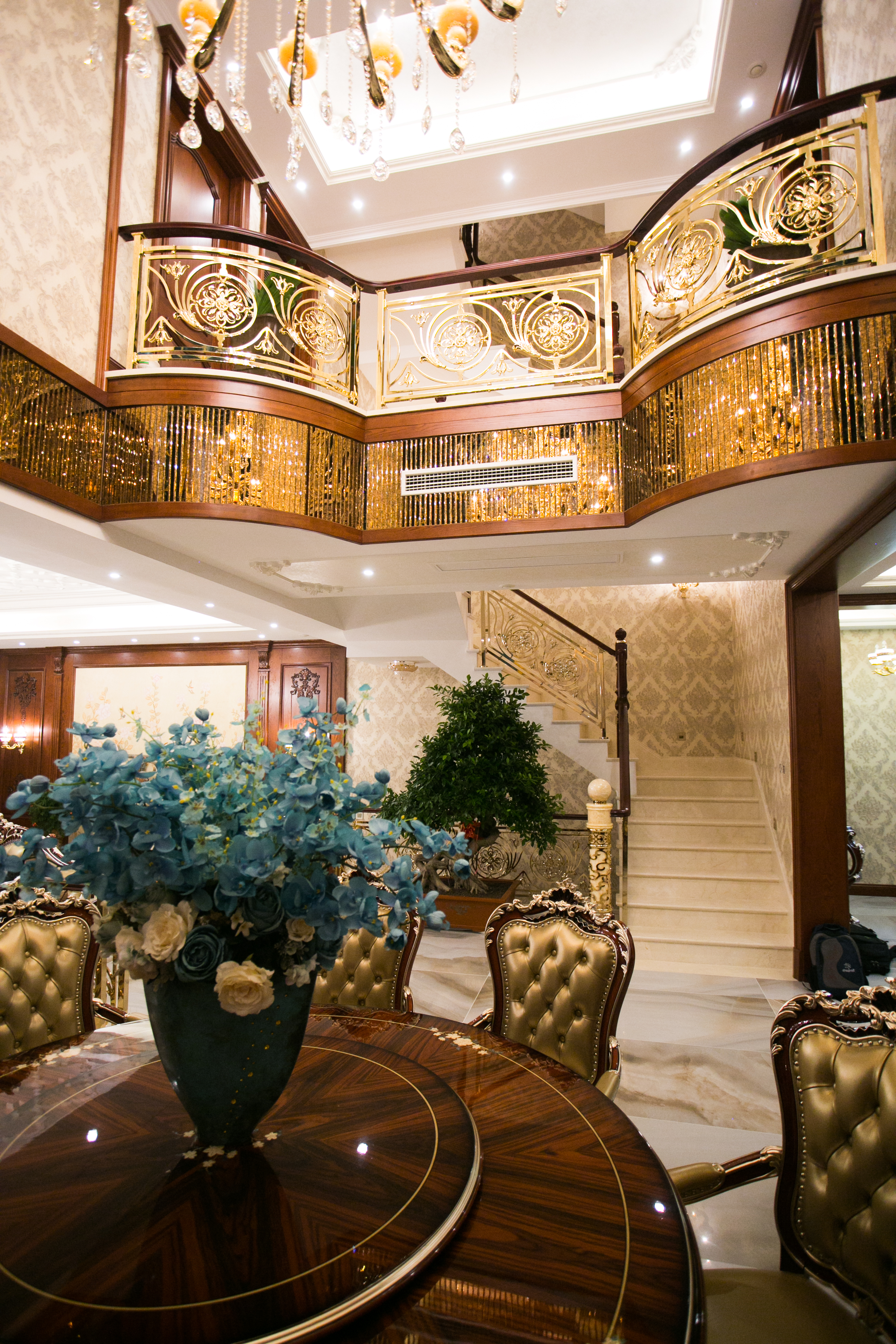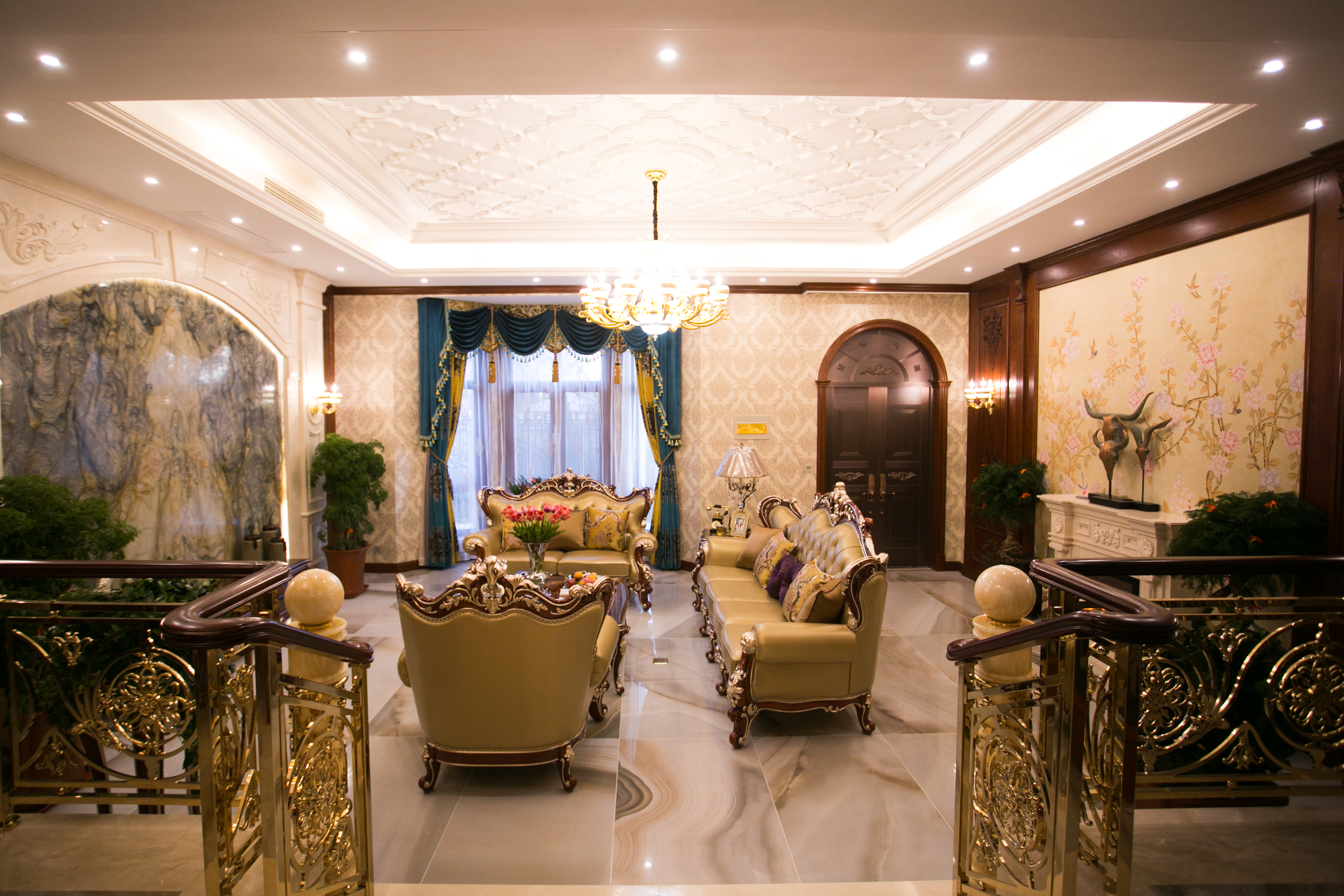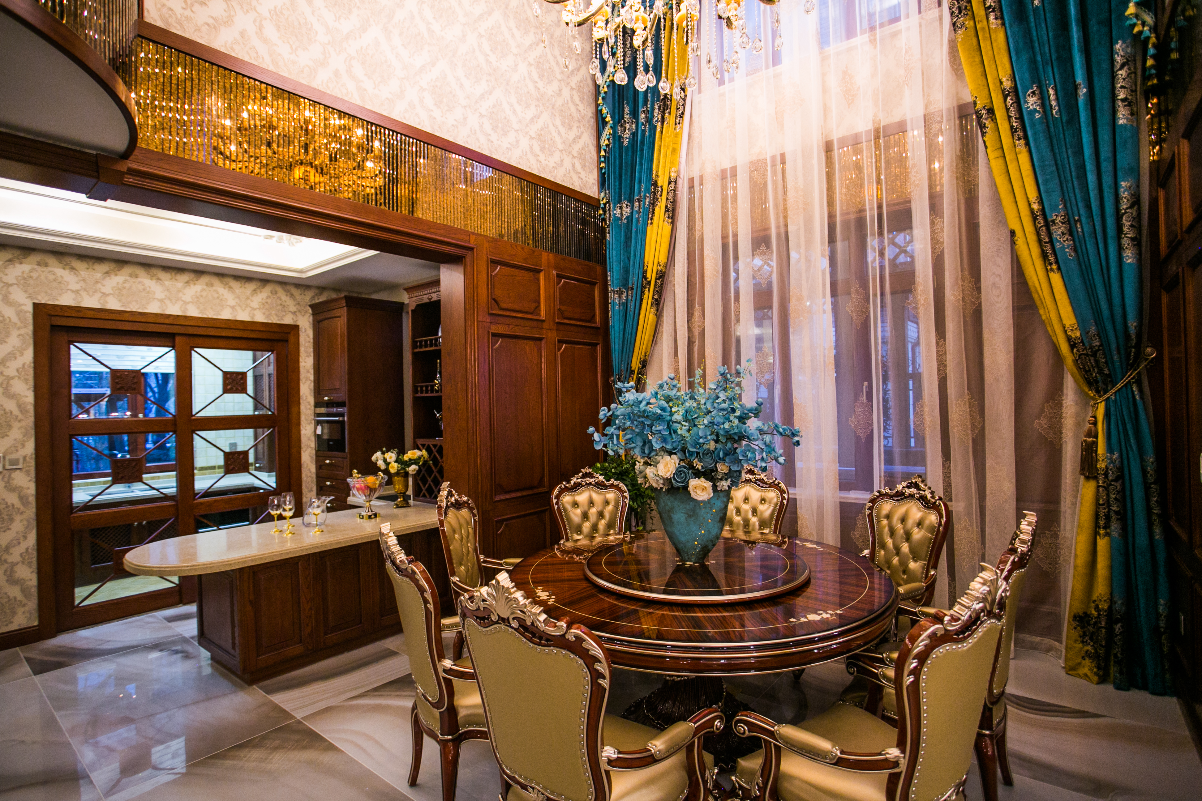 空间布局:将原有的界限打开,利用线条与颜色的色彩重新划分,定义彼此提供居住者和家人不同的生活经验,以及更具有互动式的情感连接,把人们常常说的生活,需要仪式感的想法,都一一体现到我们奢雅古典别墅的艺术空间当中
