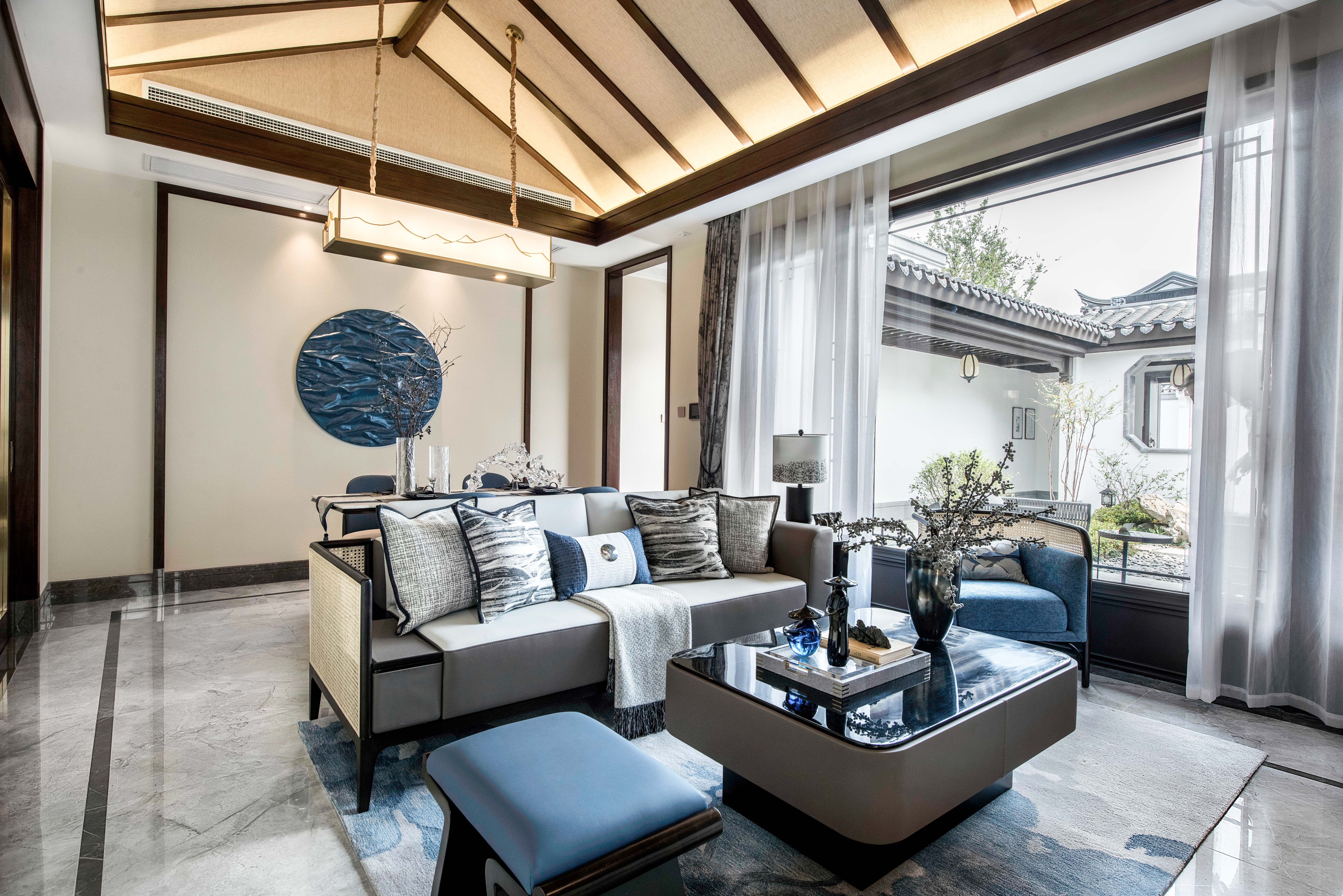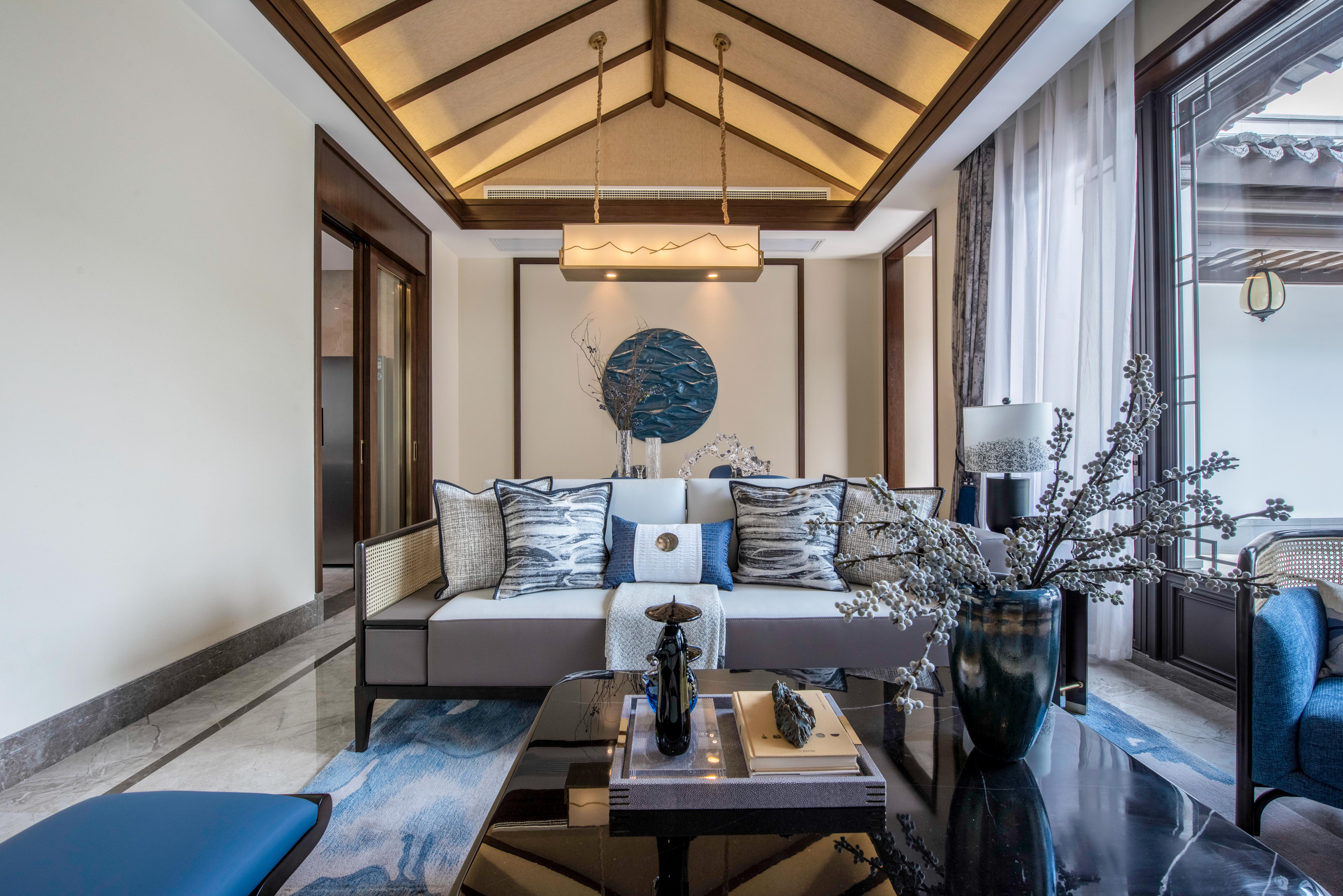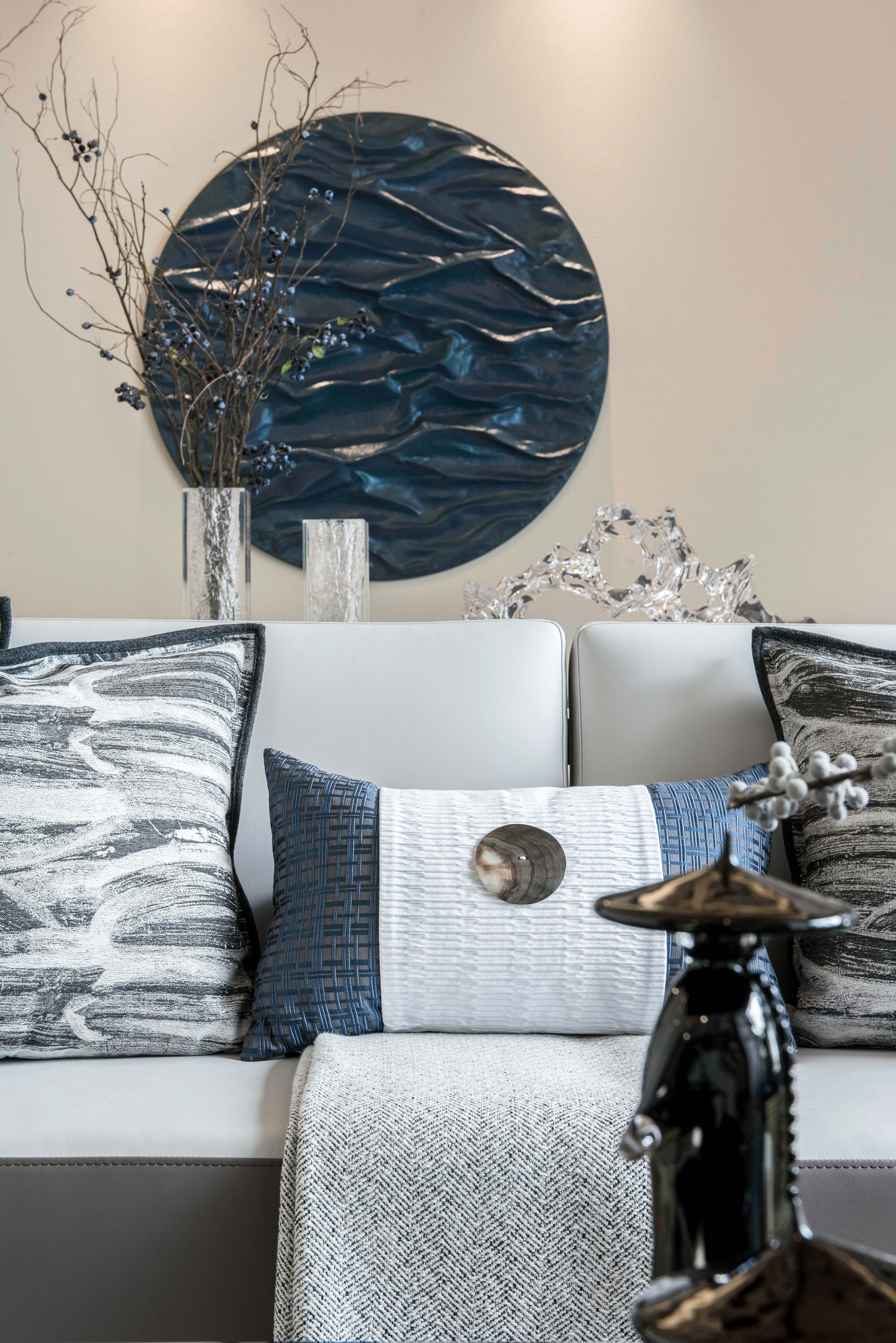 图5客厅:深邃蓝又赋予了其浅色系的生动,是秋季里的小精灵,也是室内搭配中的小天使。