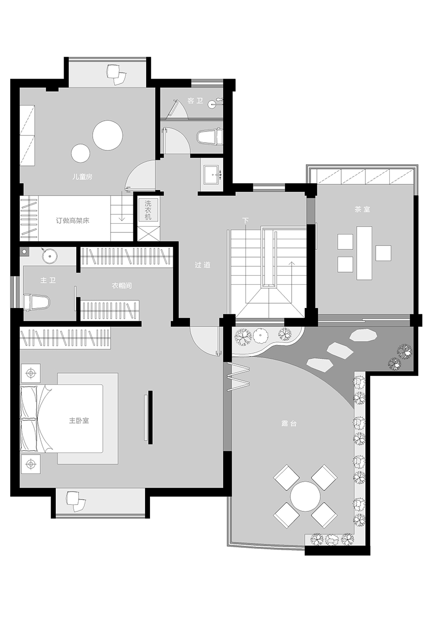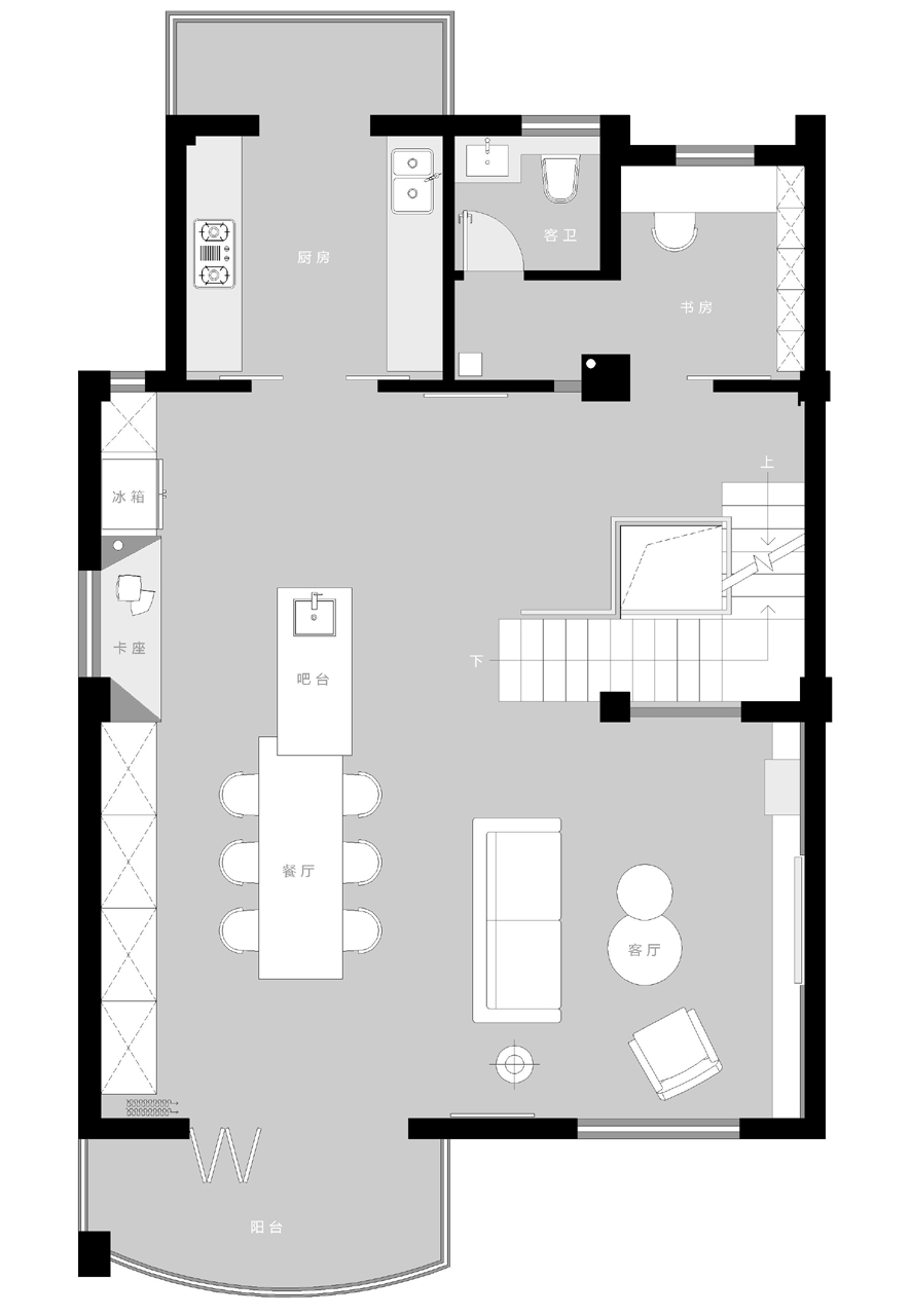 项目定位:在我们以往接触的客户中,女性业主一般偏爱美式、轻奢、小清新,而此案例中的女业主却钟情现代极简,初次见面就笃定的告诉我们只要黑、白、灰,于是设计师决定用建筑的思考方式来做室内,还原并强调建筑的这种结构之美。
