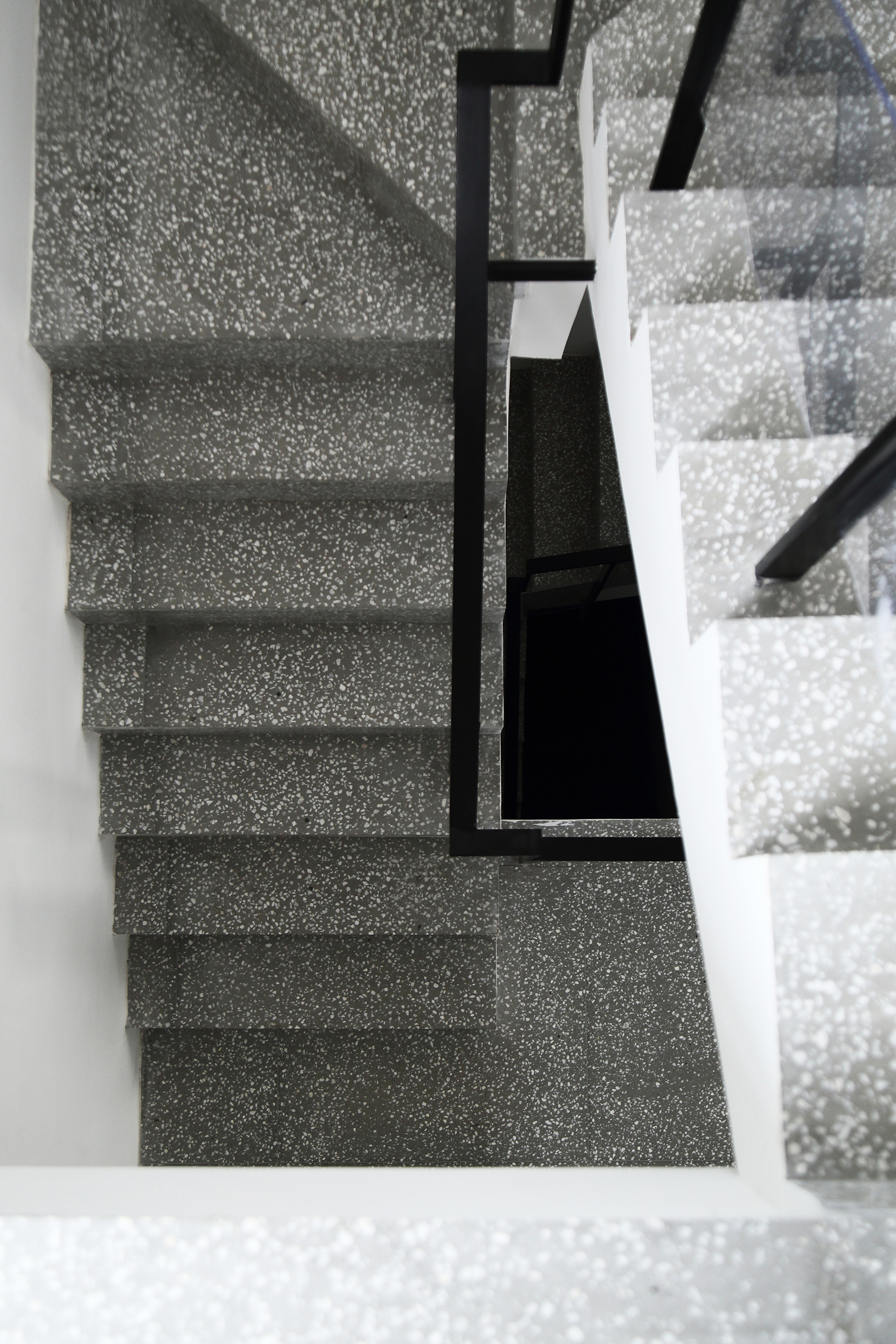 空间意境:乍看之下,你可能会以为这是一间美术馆,极简黑白灰的空间、裸露的楼梯、线型的黑色扶手、粗犷的水泥孔砖结构墙……无一不彰显着建筑的结构之美。