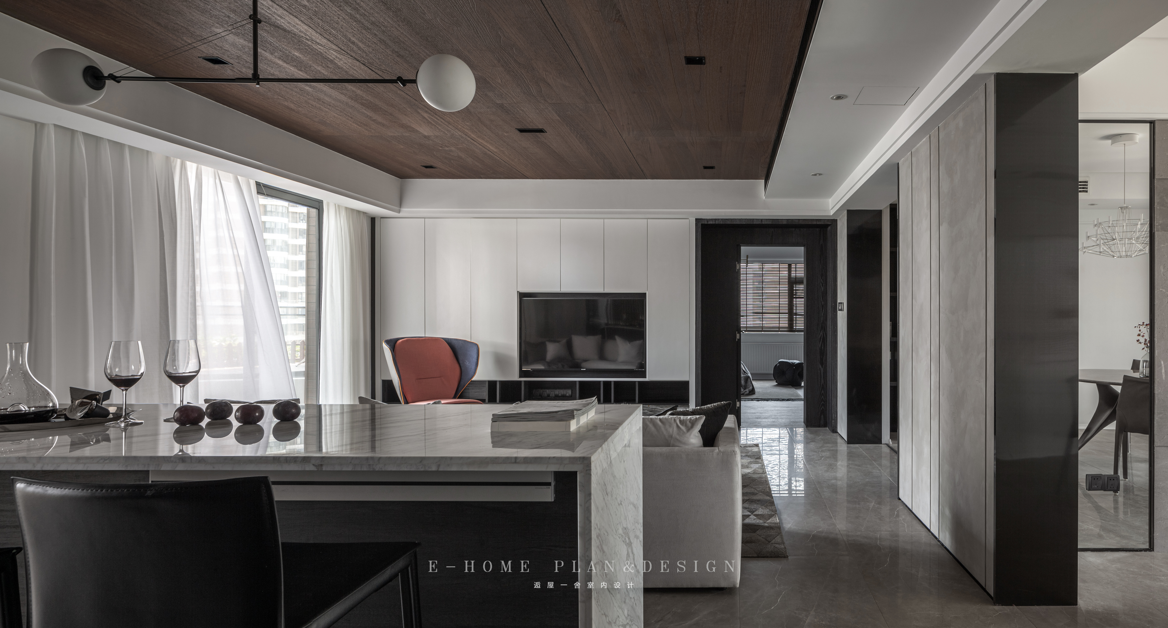 在这个家里,你首先会看到一个创造了回字形动线的大理石岛台。