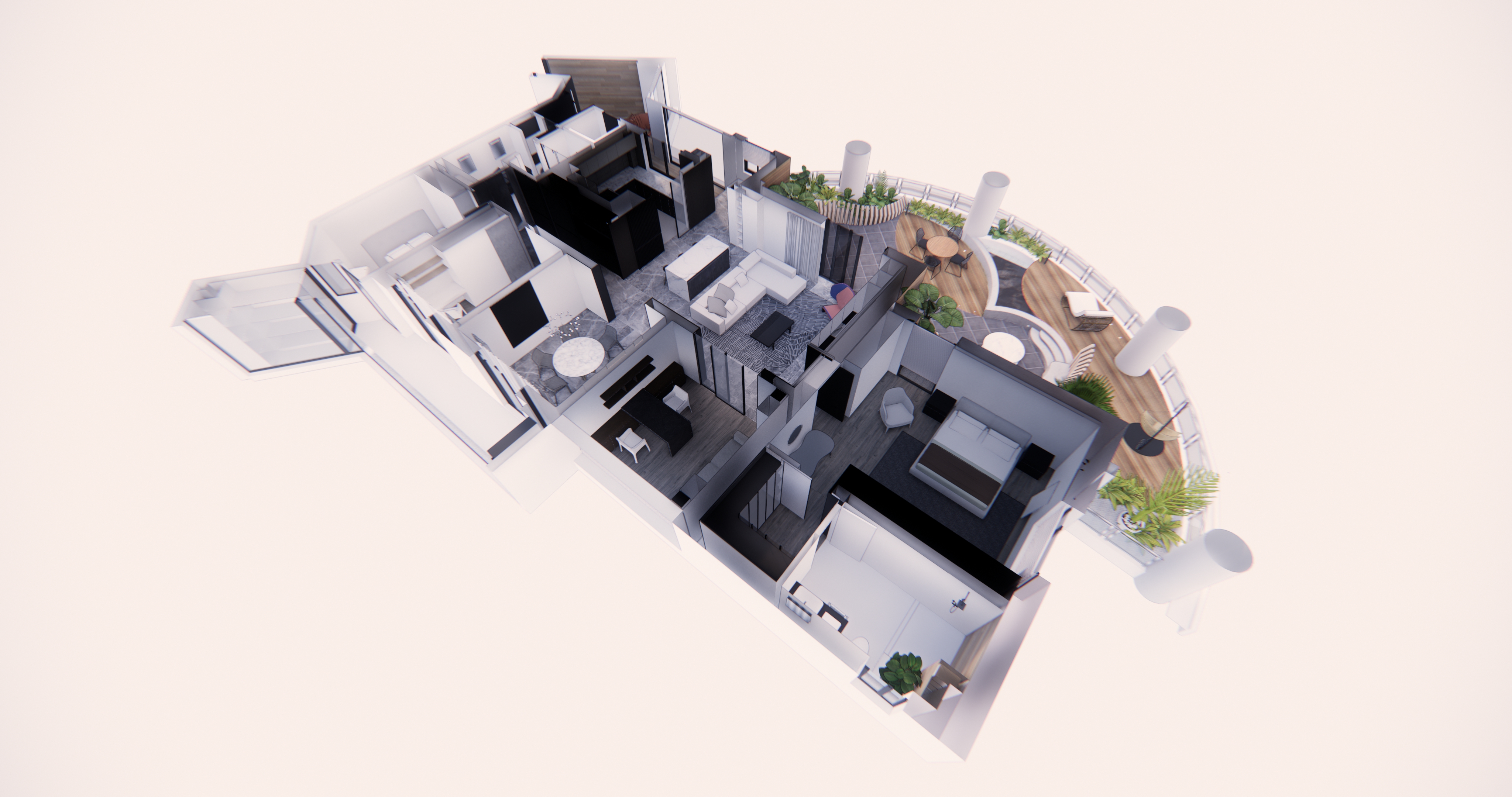 运用蒸汽灰的色彩铺叙,结合室外景观,赋予业主在步足转移之间,仿佛置身于天际 -