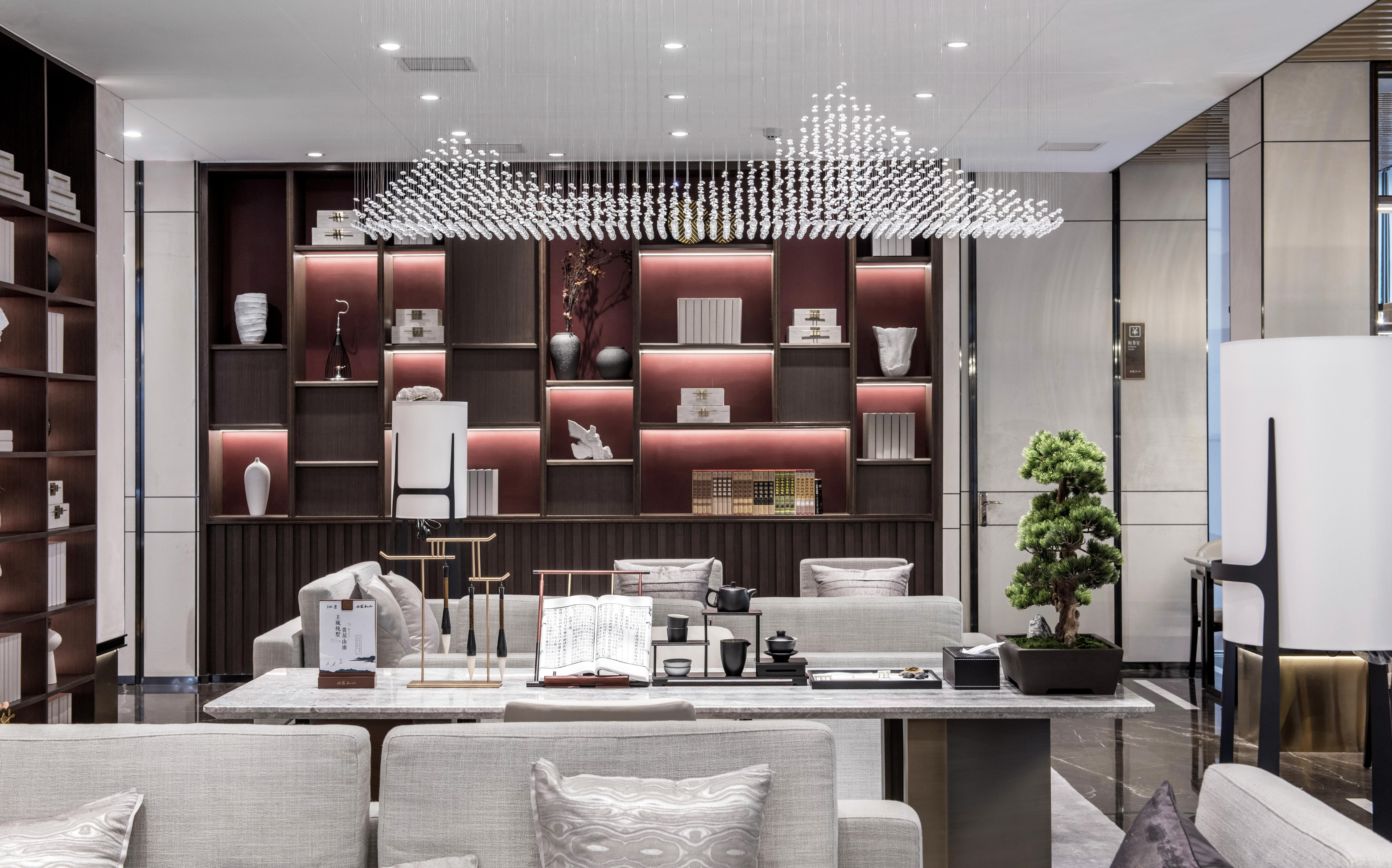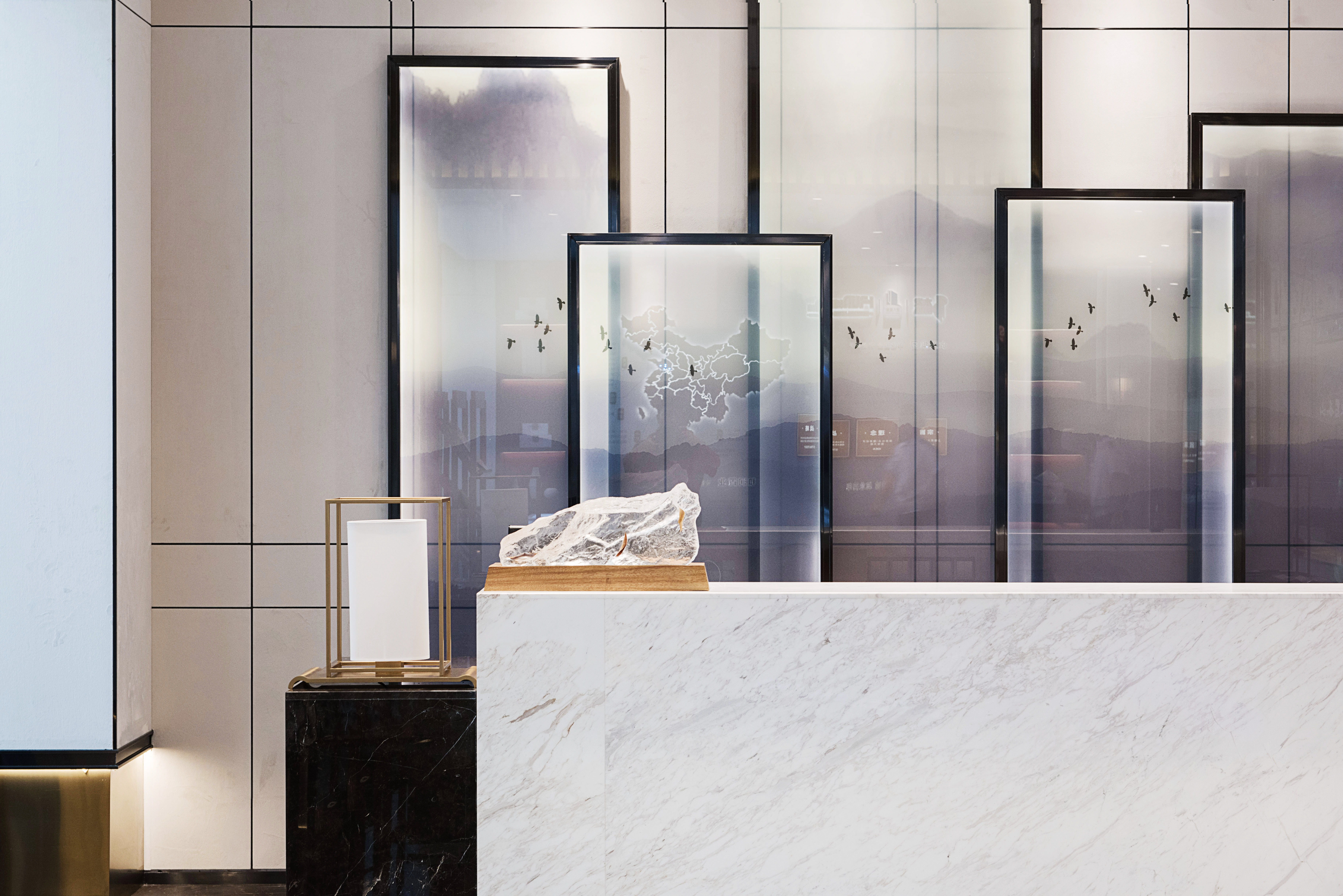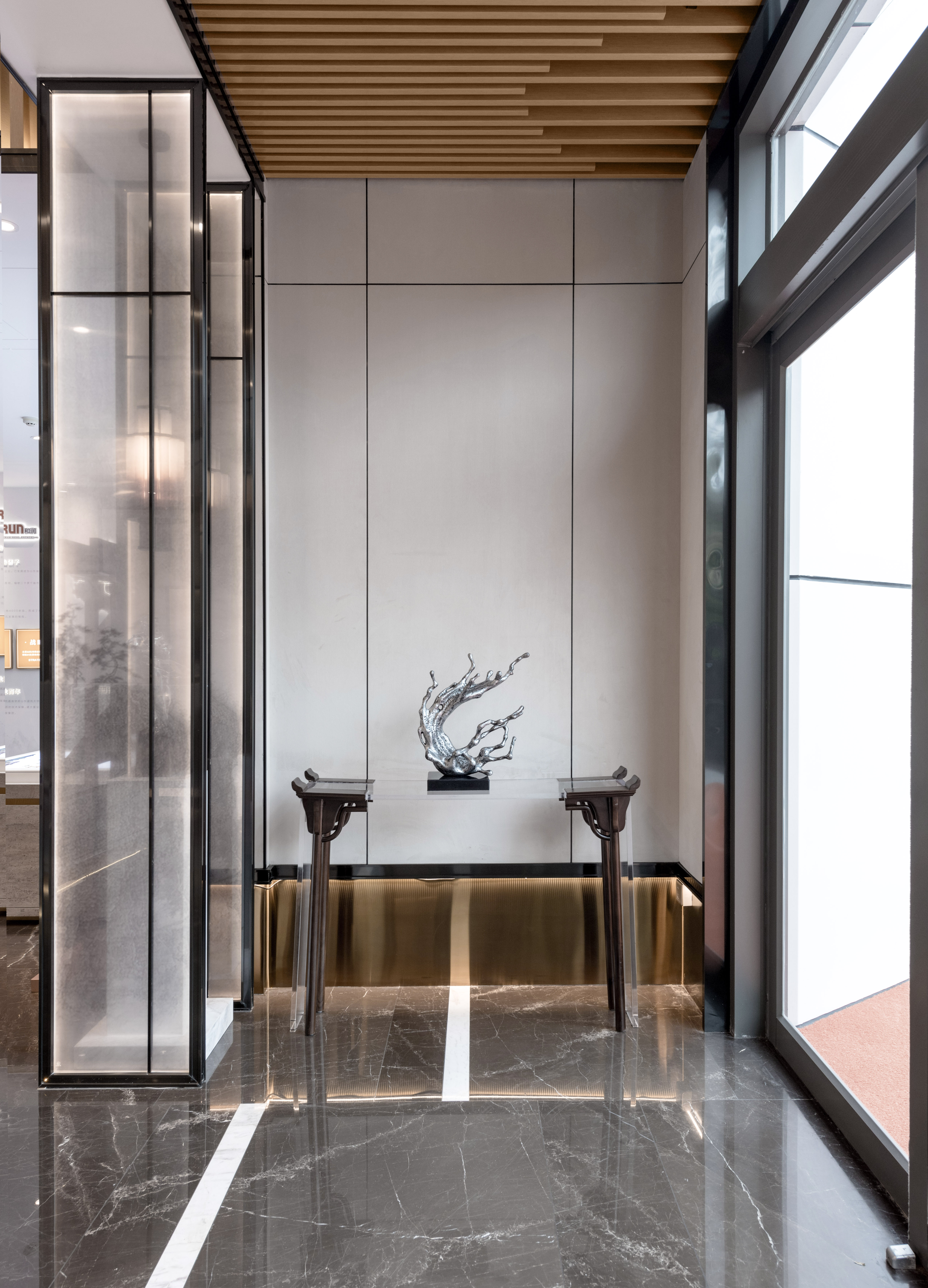 空间意境:设计师将有着“泉城”之称的济南特色文化和售楼处相结合,意在打造空间,融入东方文化的符号,承袭文脉将历史情怀与特有的东方审美融汇成独特的东方气质。