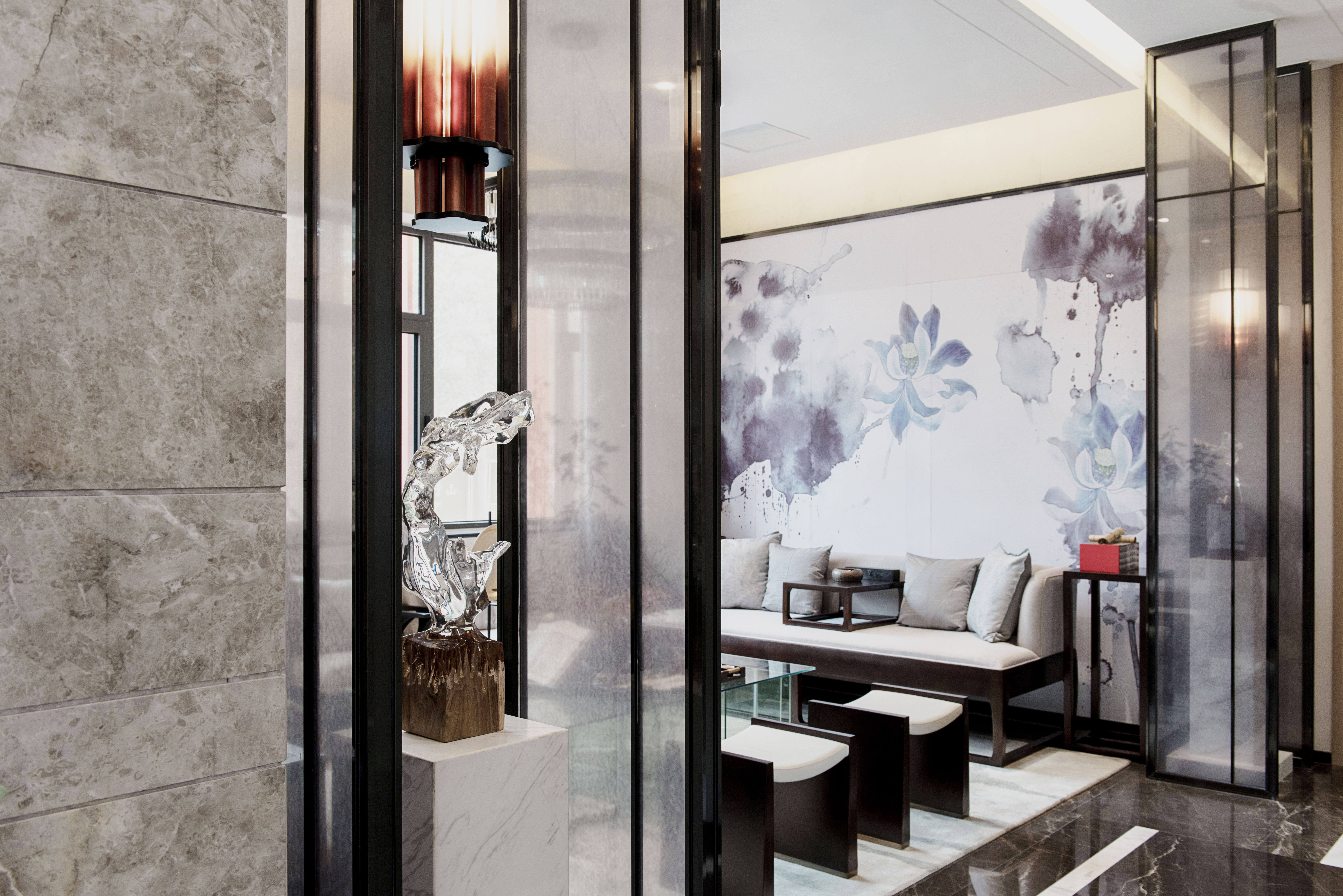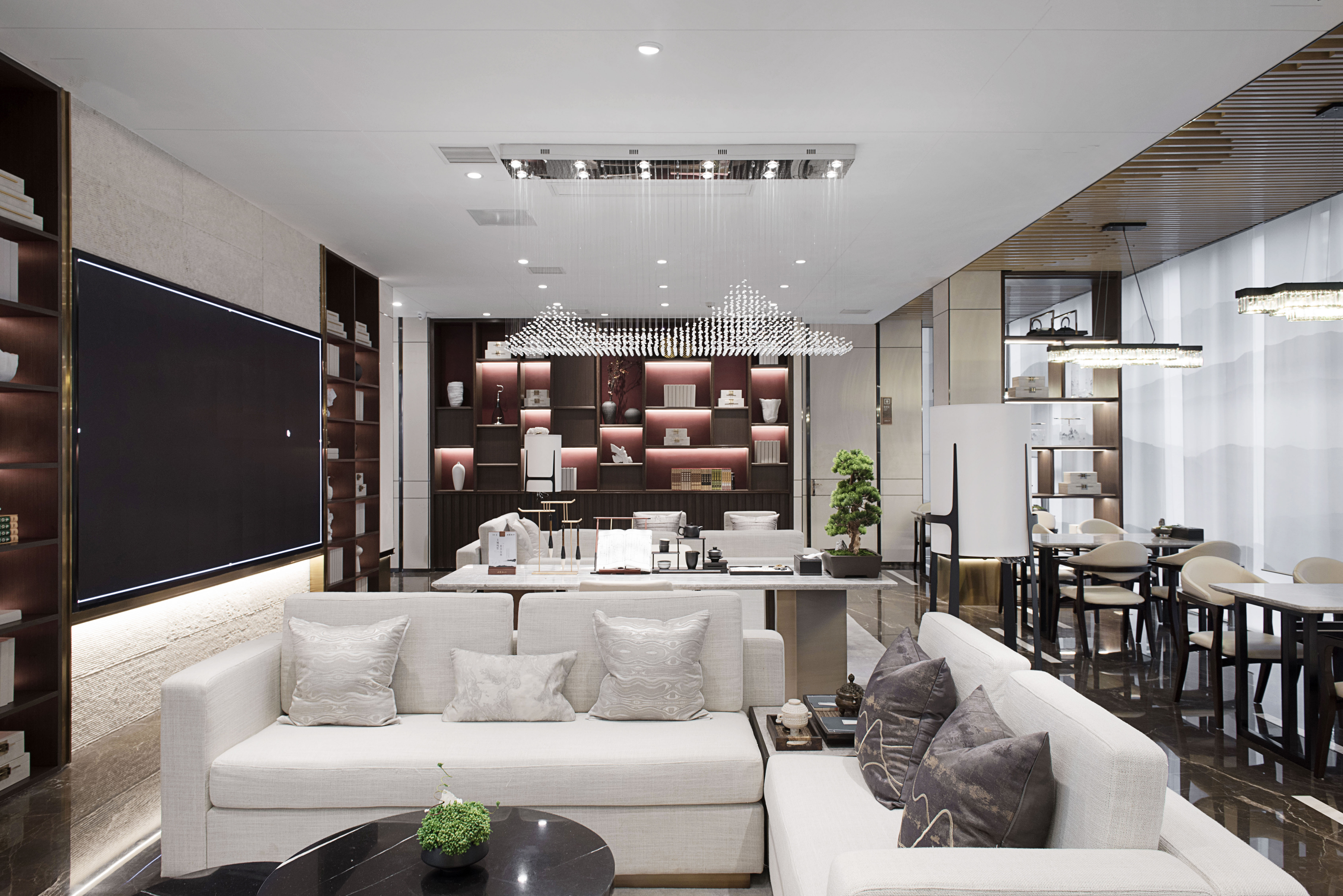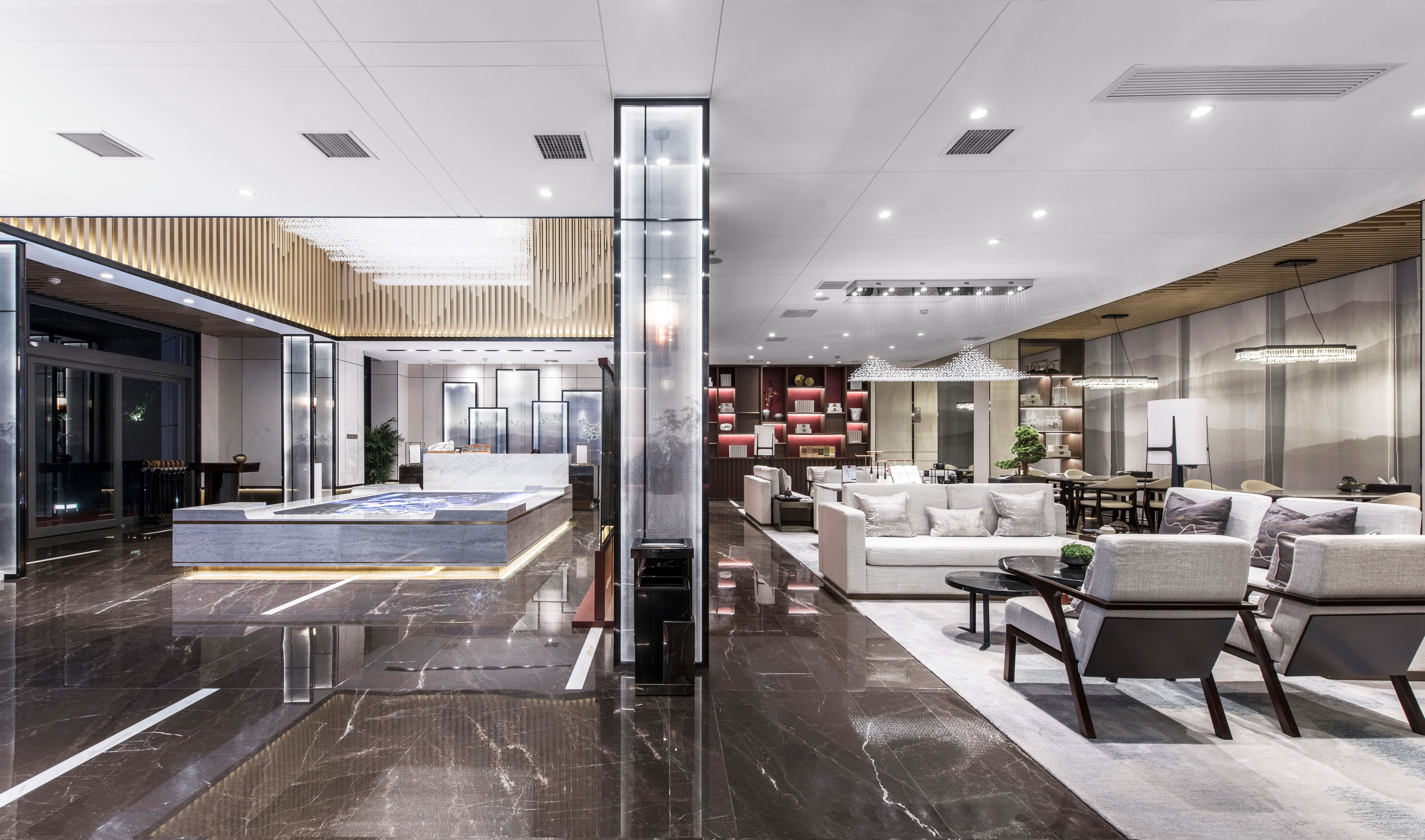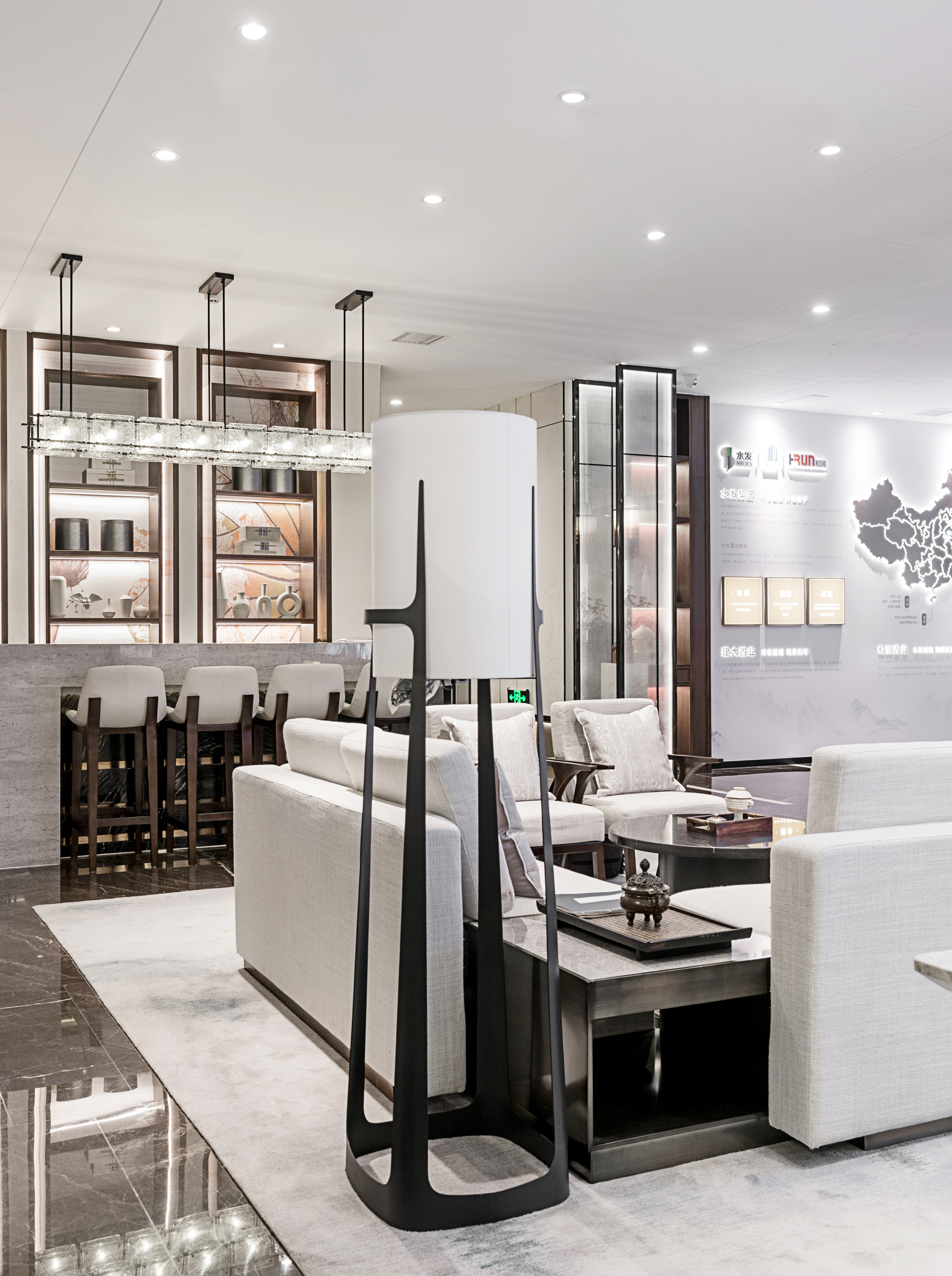空间意境:设计师将有着“泉城”之称的济南特色文化和售楼处相结合,意在打造空间,融入东方文化的符号,承袭文脉将历史情怀与特有的东方审美融汇成独特的东方气质。