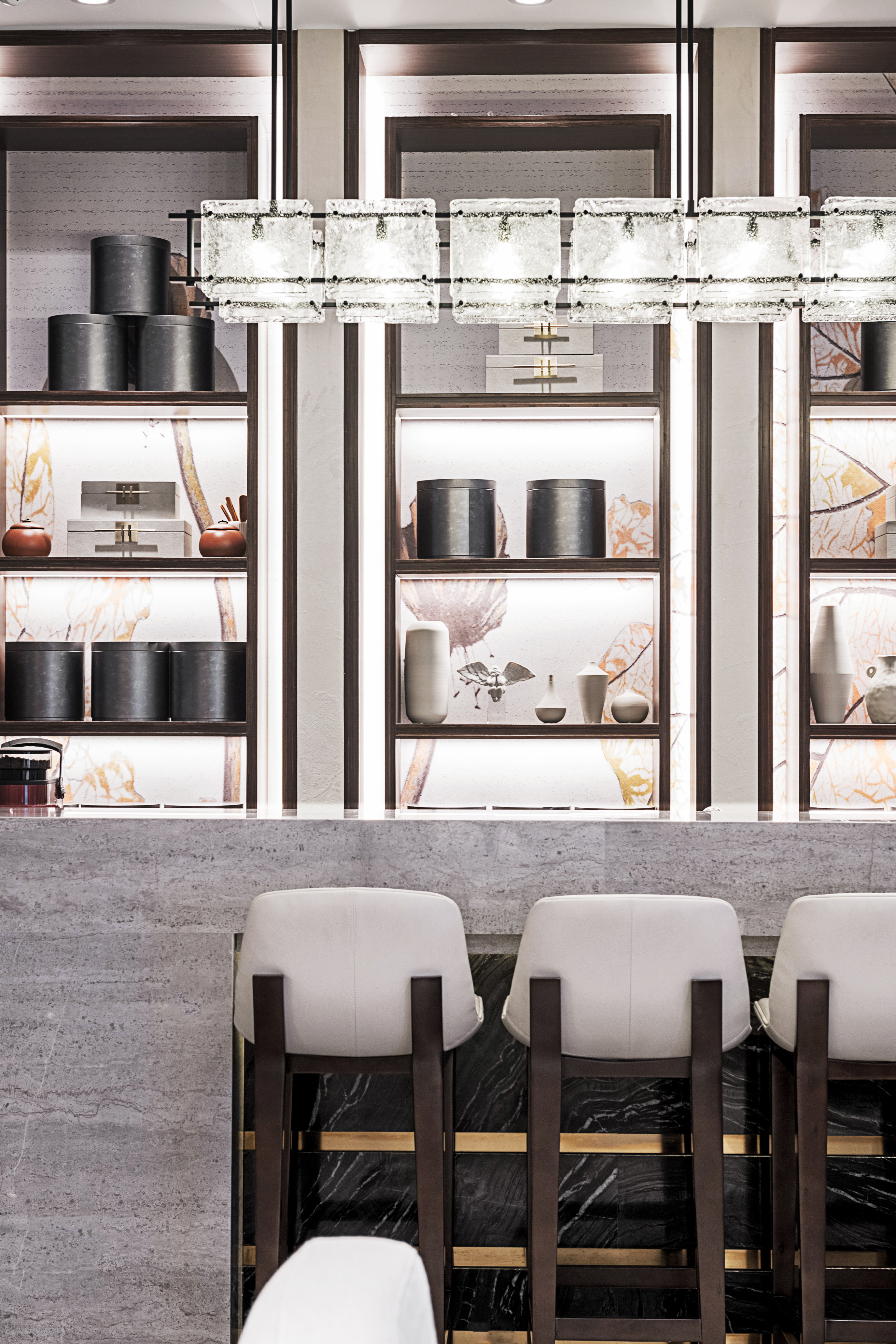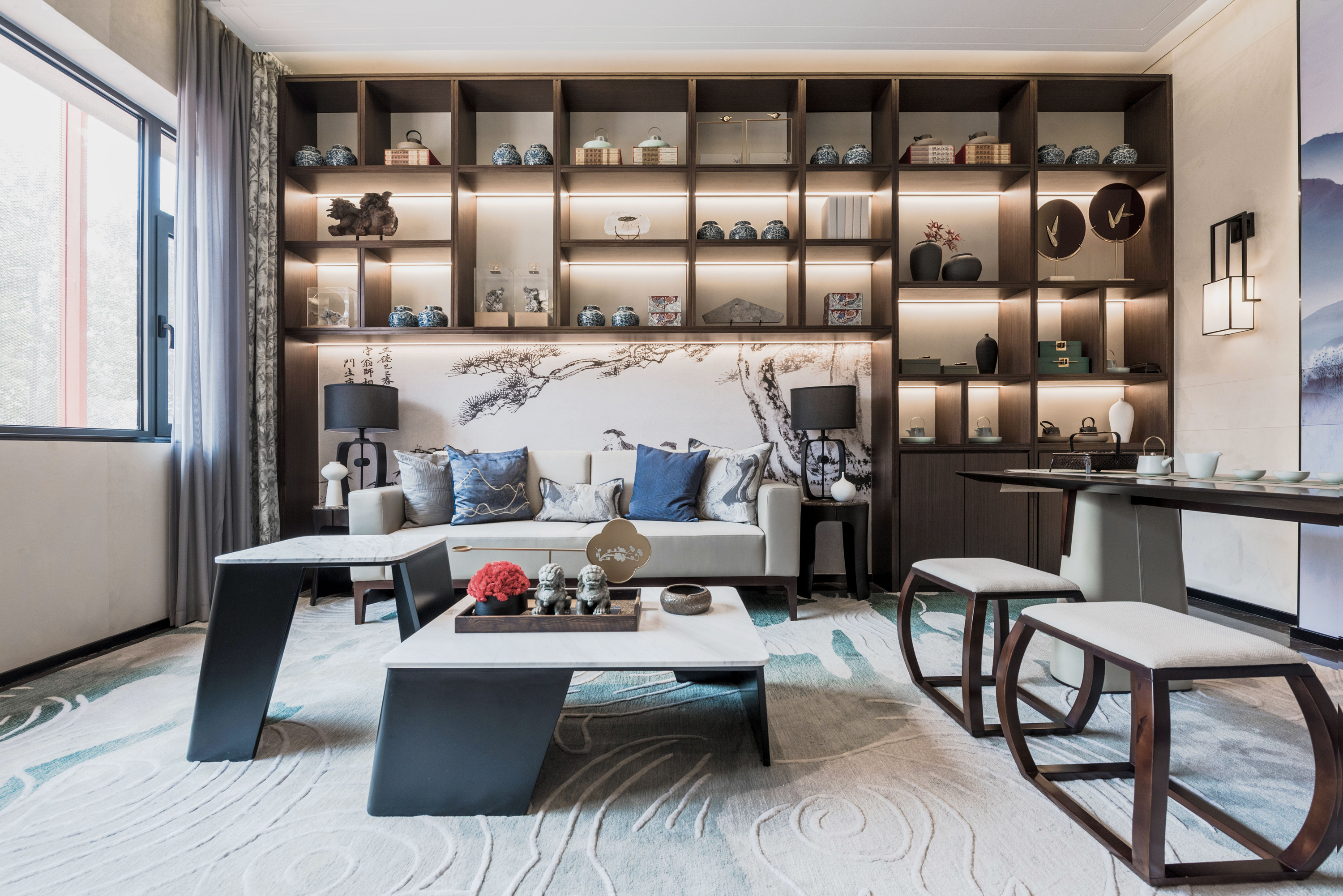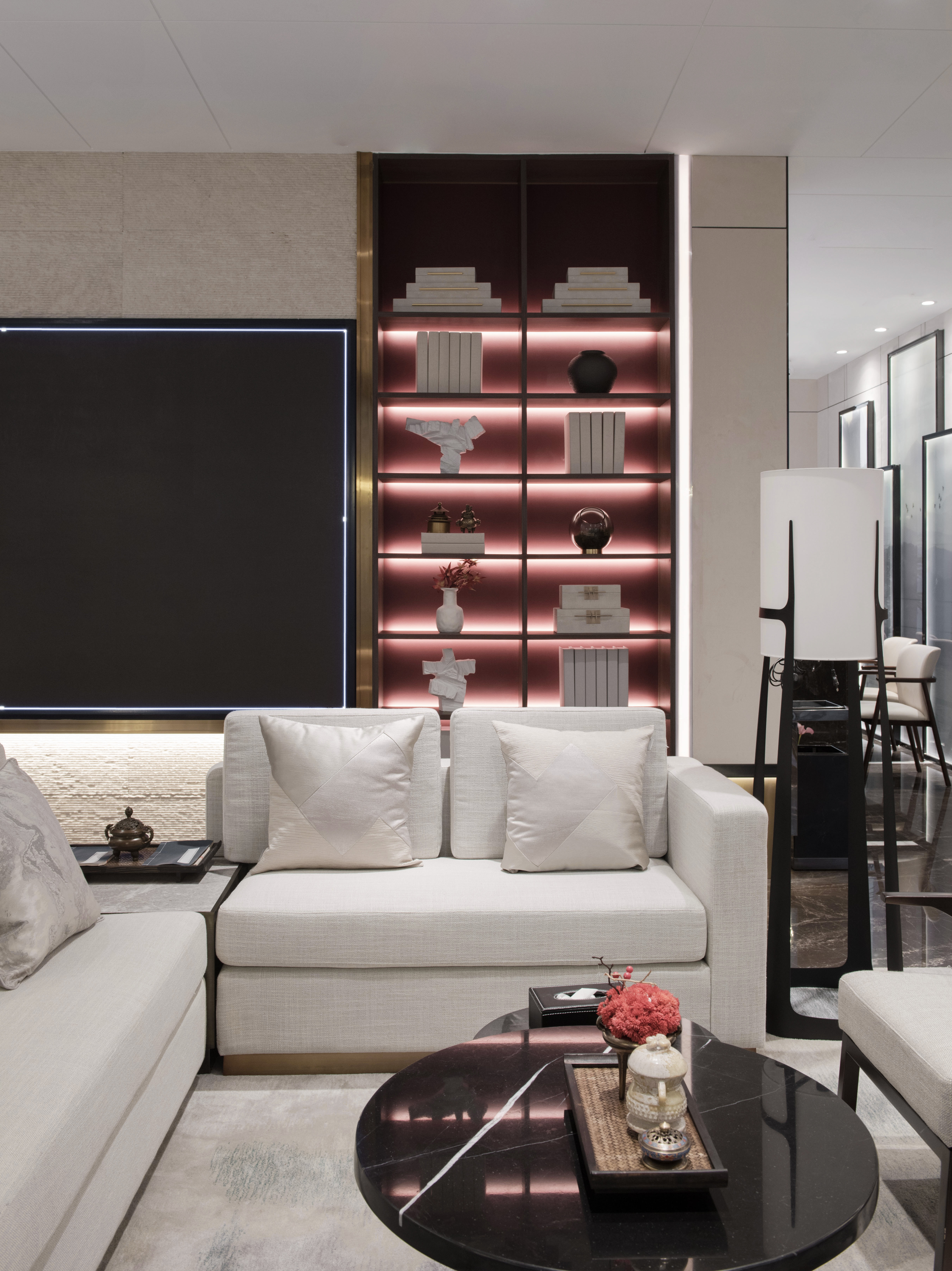 图20VIP接待室:柜子里的饰品有节奏的给人营造了非凡的视觉体验,将空间的清肃高雅的气韵瞬间展开,增添想象与趣味的艺术语言