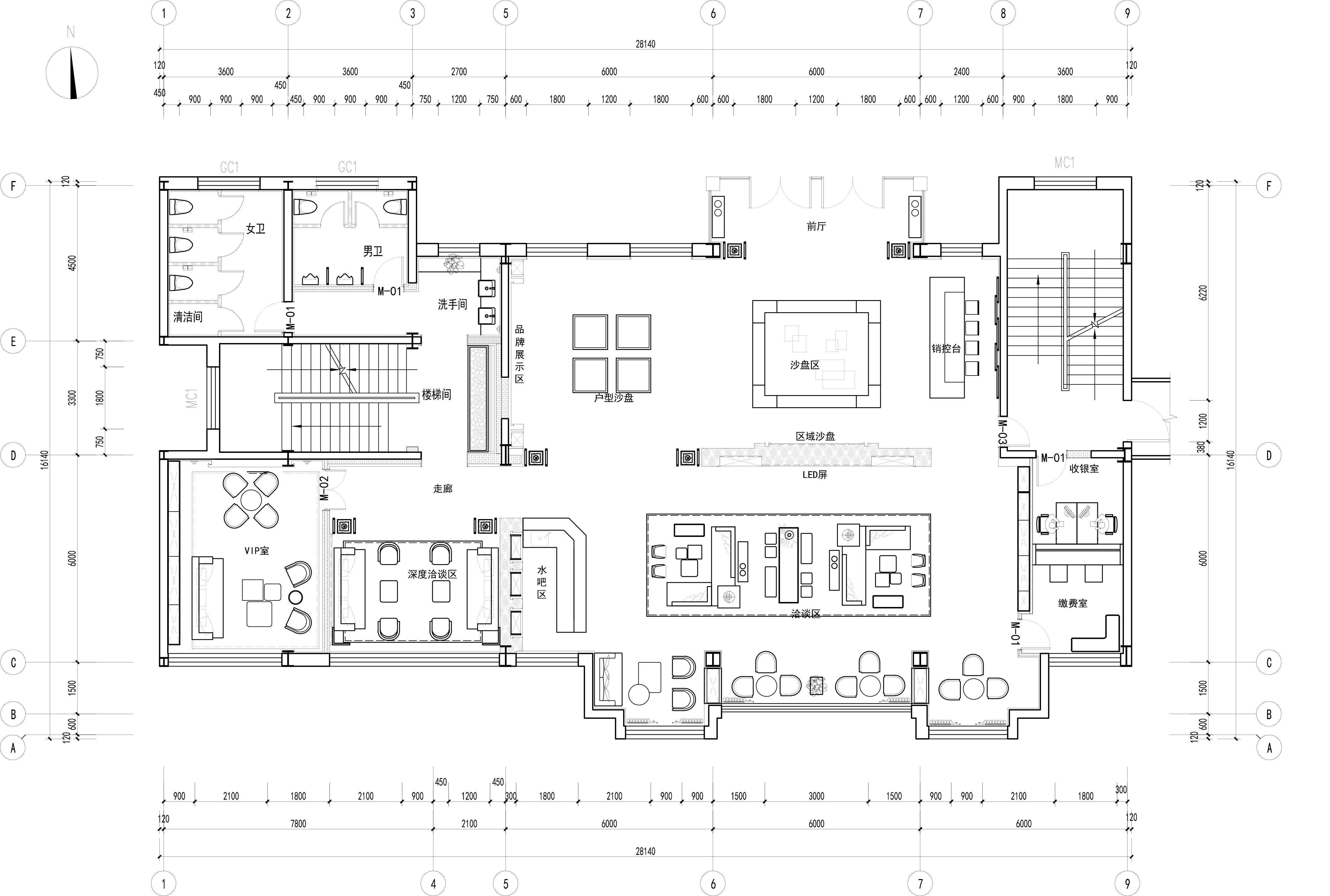 空间布局:以炭墨色和浅灰色为主体色调,创造出典雅稳重的空间氛围。
