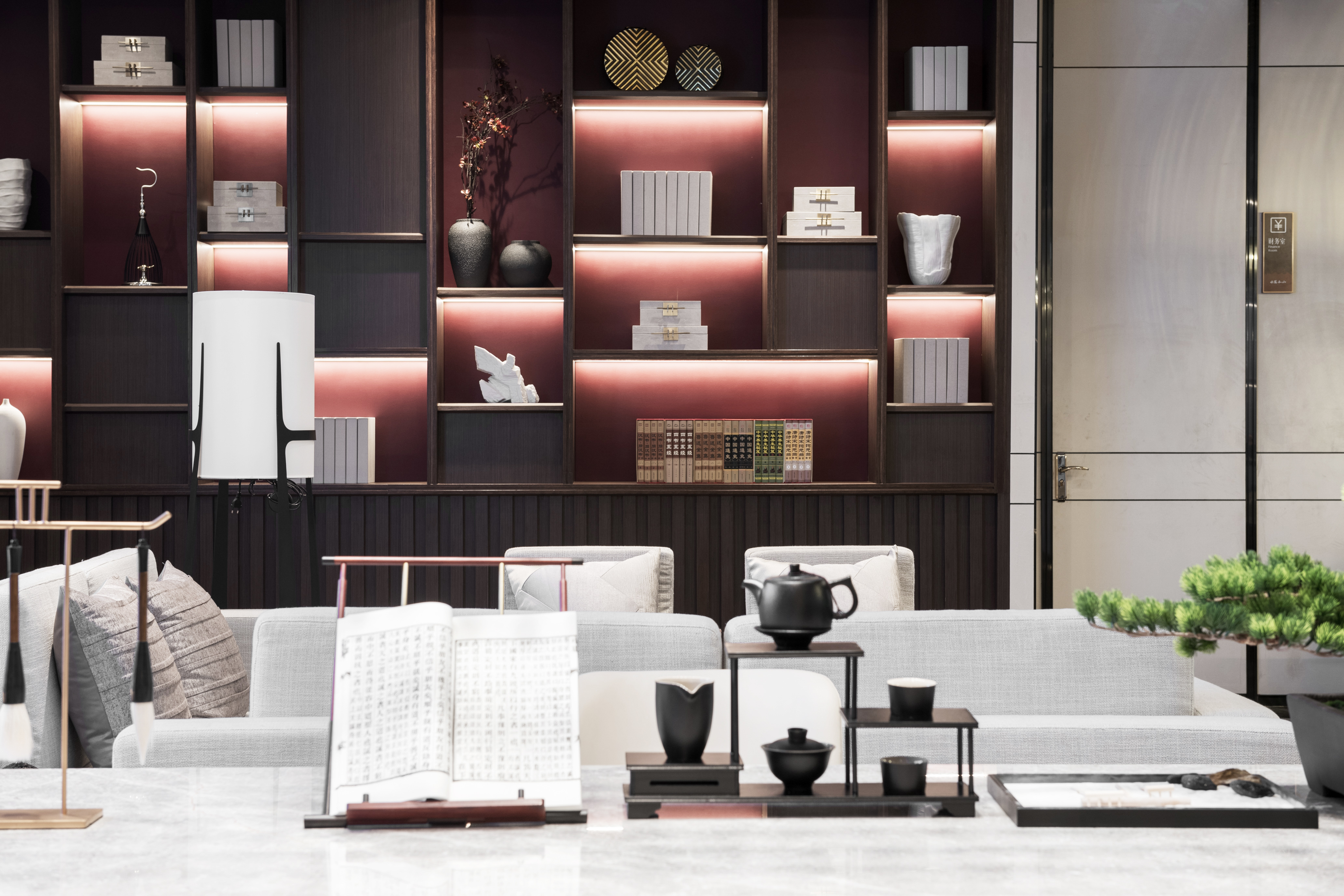 图10初步洽谈区:洽谈桌上都摆放了香薰炉,一炉一烟,享受静怡生活,沉浸于新中式美学生活之中。