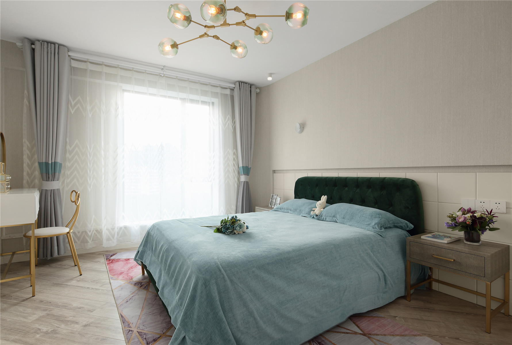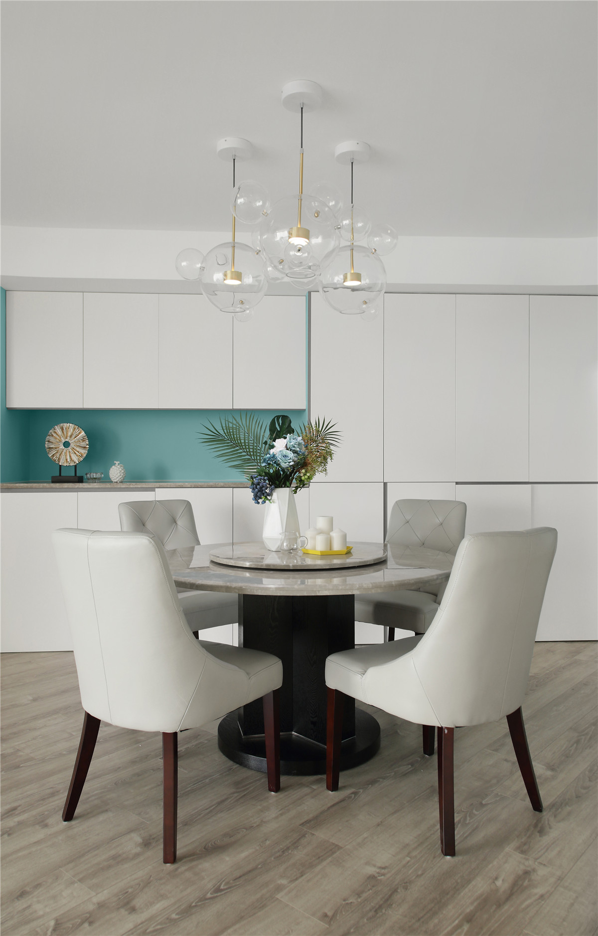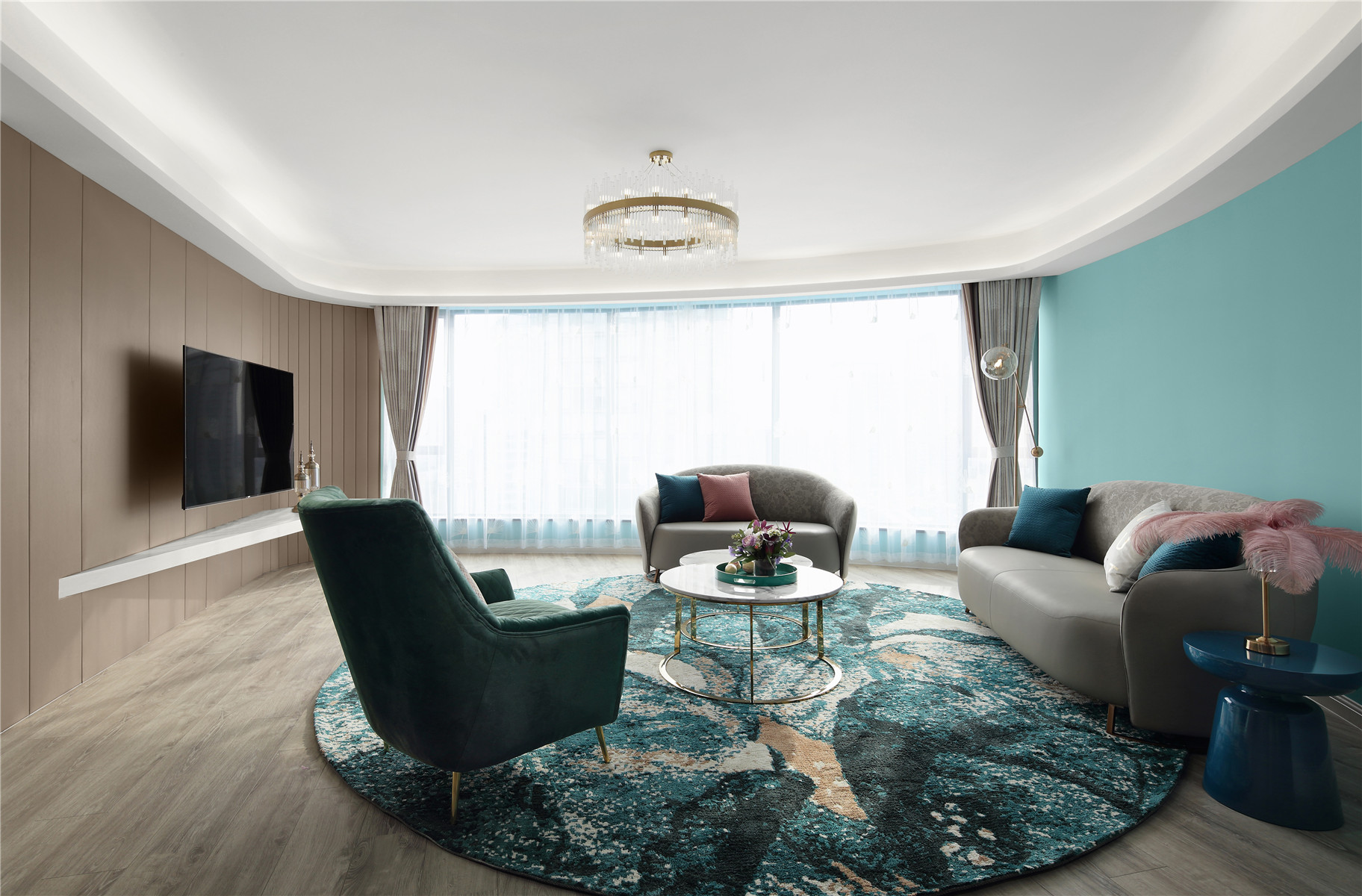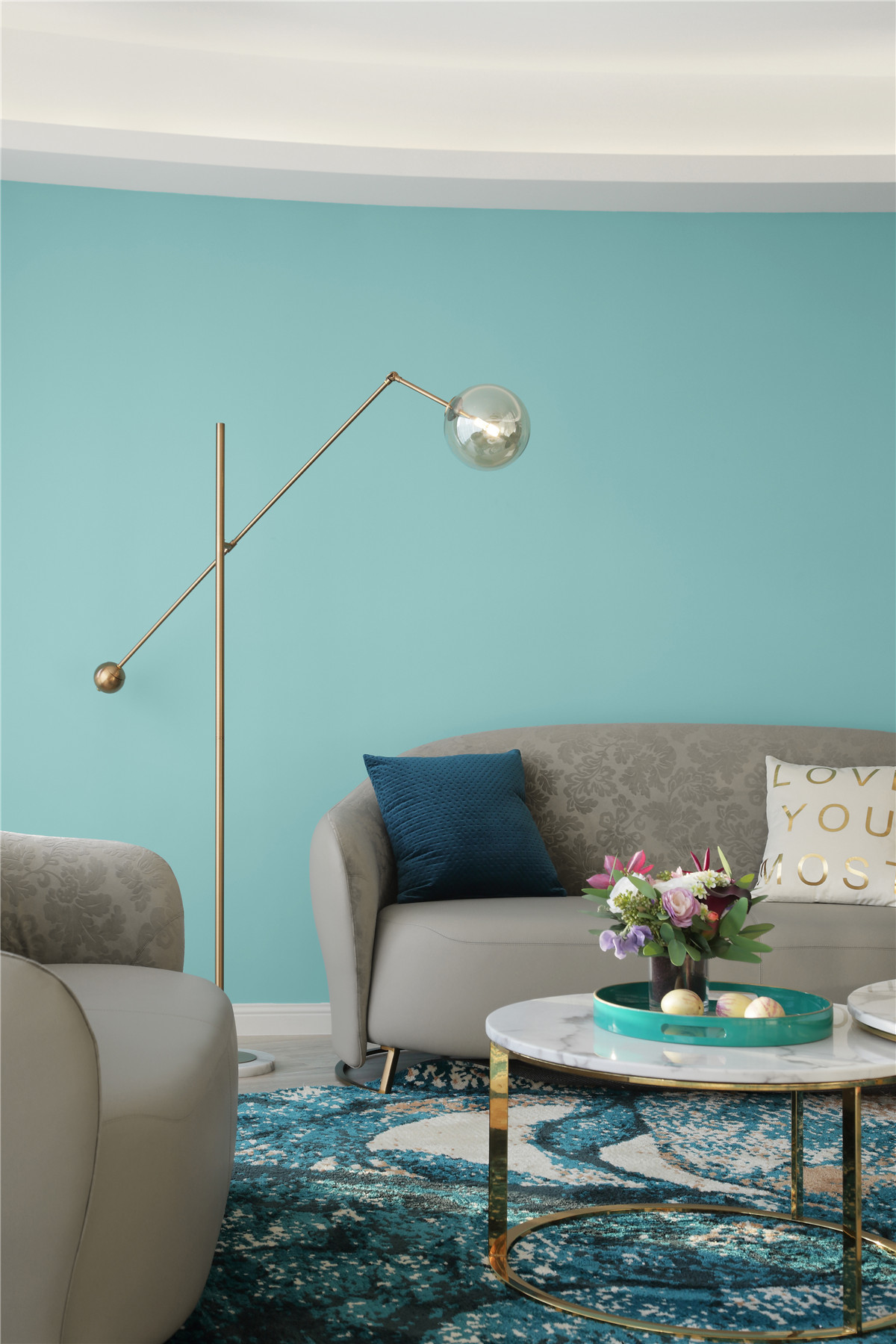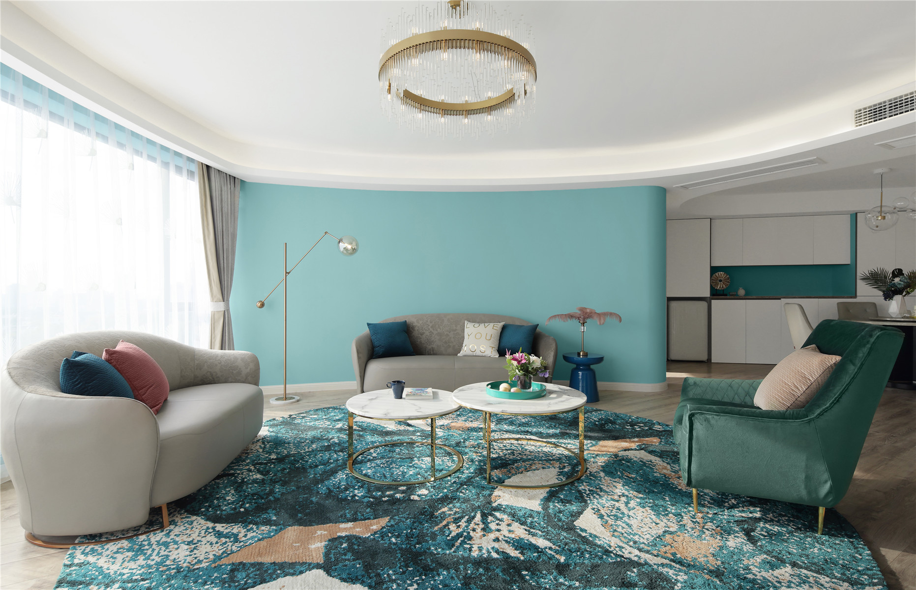 项目定位:本案位于市中心,业主是年轻白领女性,期待有个浪漫温馨的家,不足的是异形户型,要保证功能的完善以及舒适感需要重新梳理结构。我们将这个项目打造成都市白领快节奏生活之余,回到家中有一个放松心灵,愉悦心情的浪漫之家。同时用屋主最爱的蒂芙尼蓝色来打造匹配她个性标签的家。