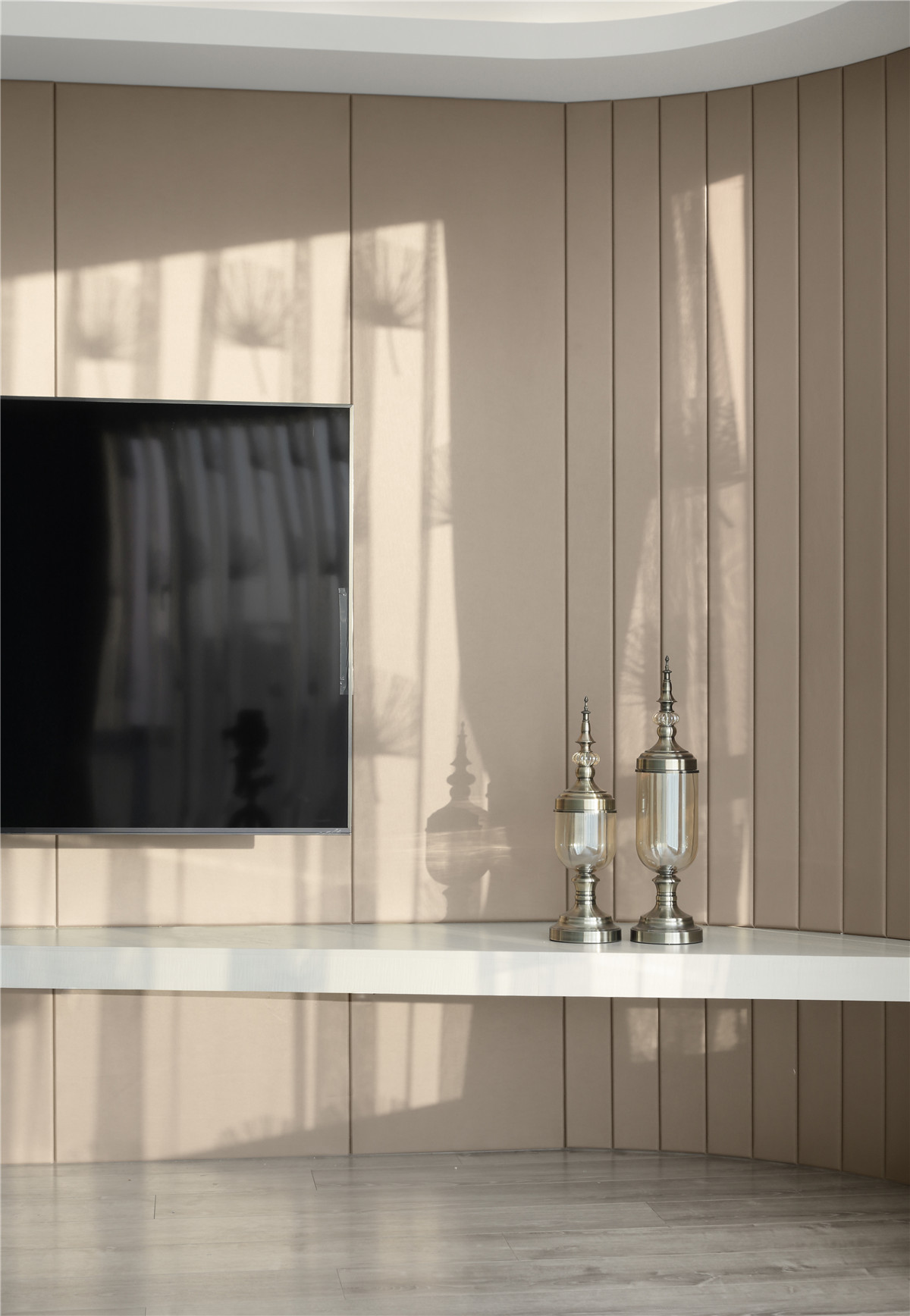 用户体验:在业主入住后的两周,我们接到了对方欣喜的电话。她说,没有想到原先让人头疼的圆形客厅,连沙发电视都不好摆放的空间,居然今天能够给她带来感动。特别喜欢现在的客厅,懒懒地坐在沙发上,欣赏着从早上到晚上,从日出到夕阳,从雨天到晴天,窗外不同街景带来不同的惊喜。不管有多疲惫不快,一切烦恼都会烟消云散。