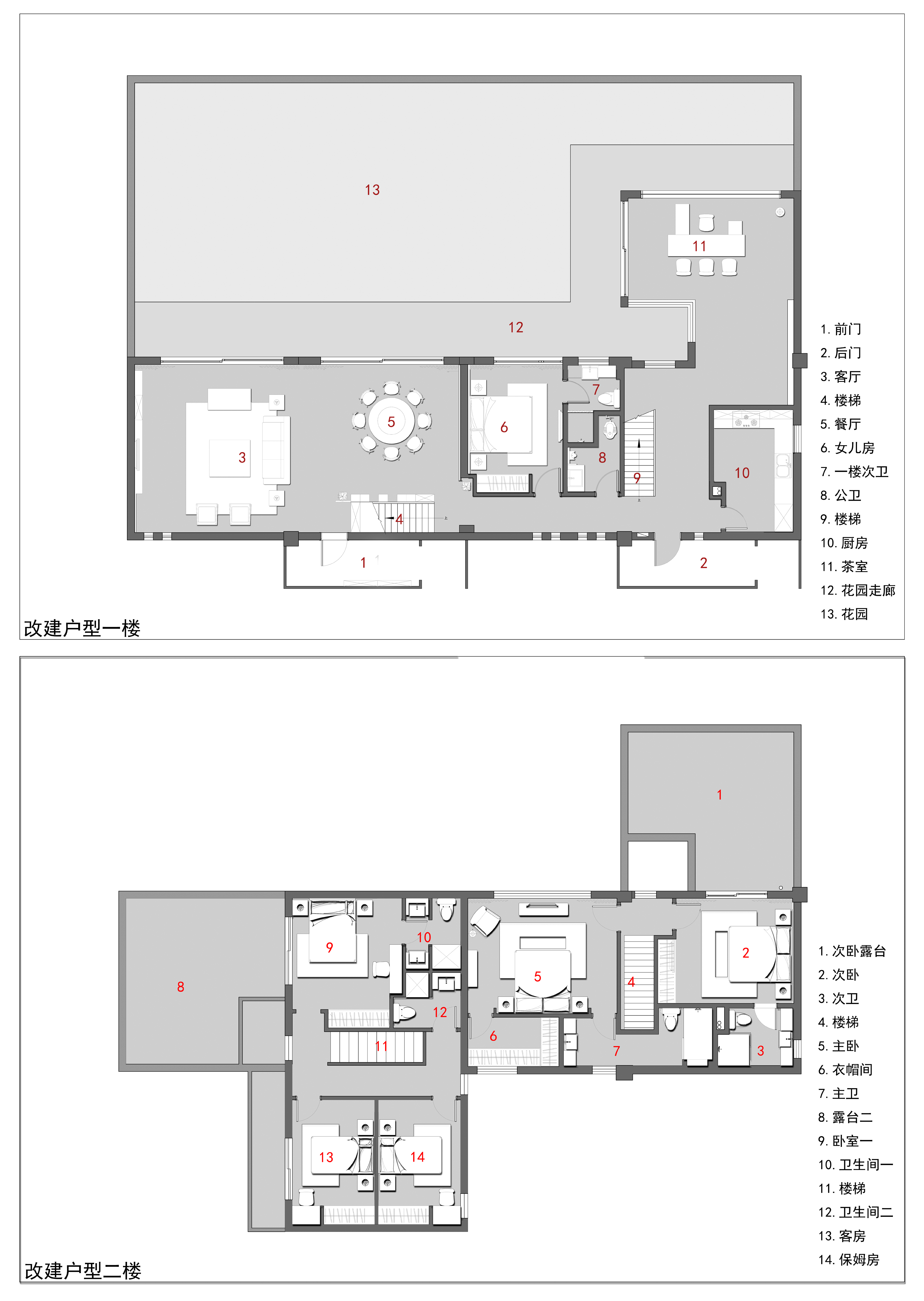 设计选材:以灰色砖、白色墙布及天然石材为主要装饰材料,采用大面积外墙玻璃将室外庭院与室内空间最大限度的借景。