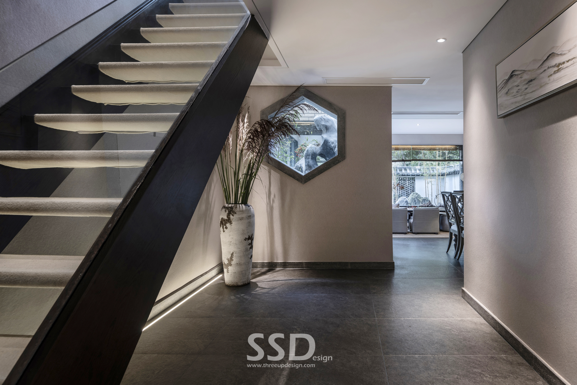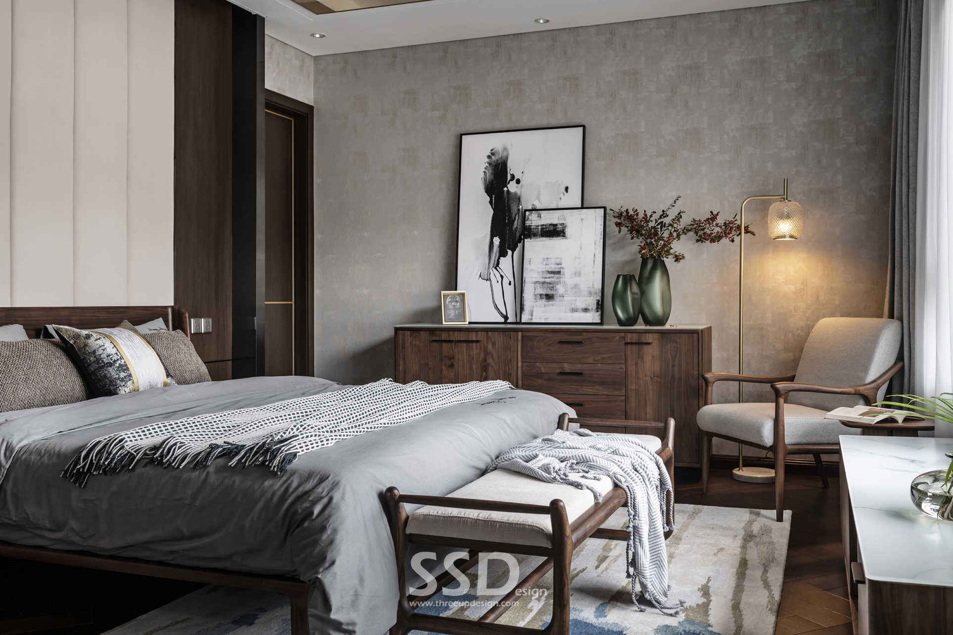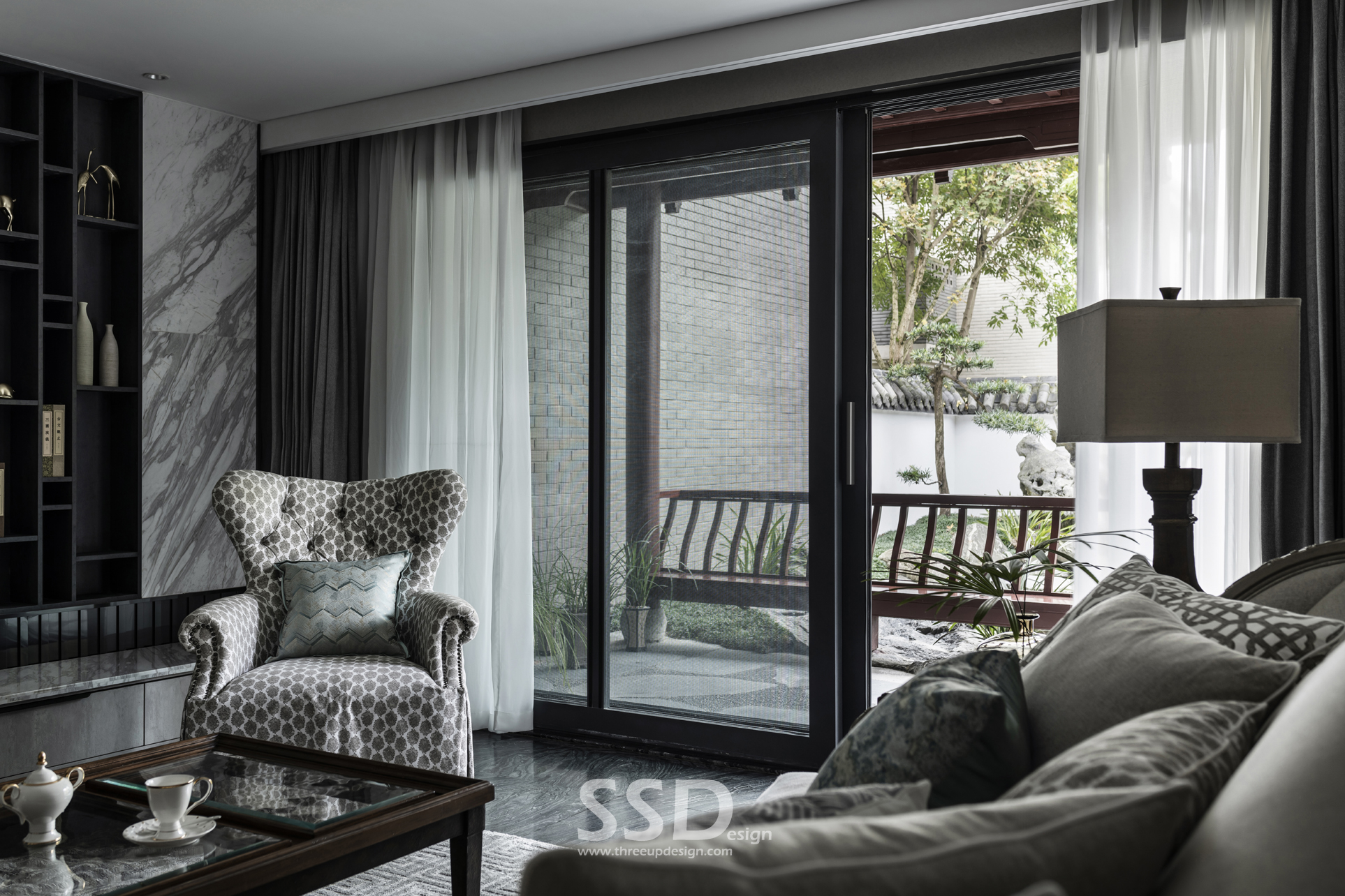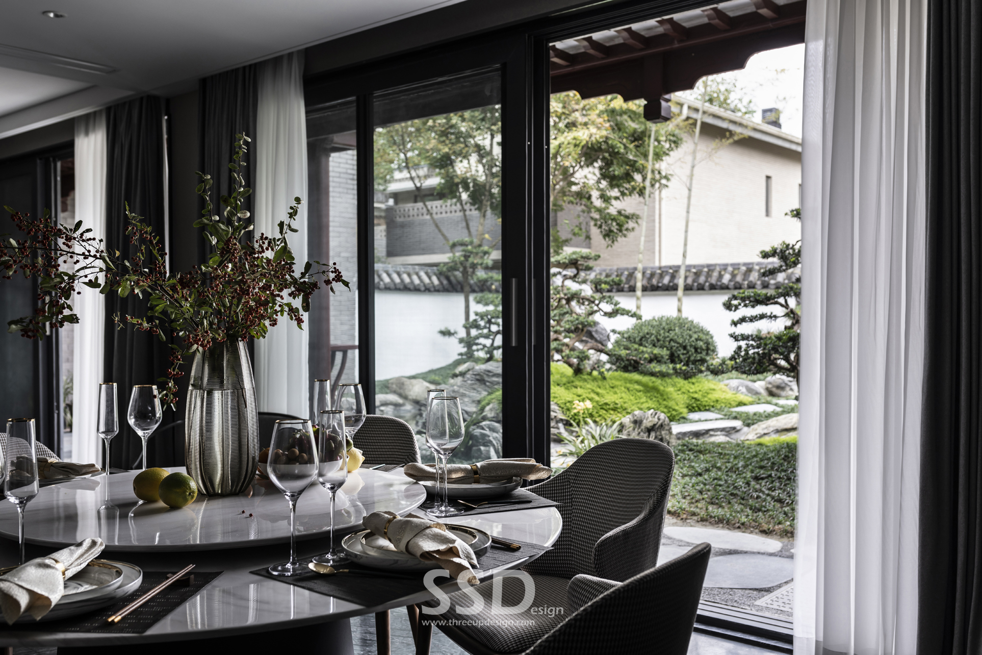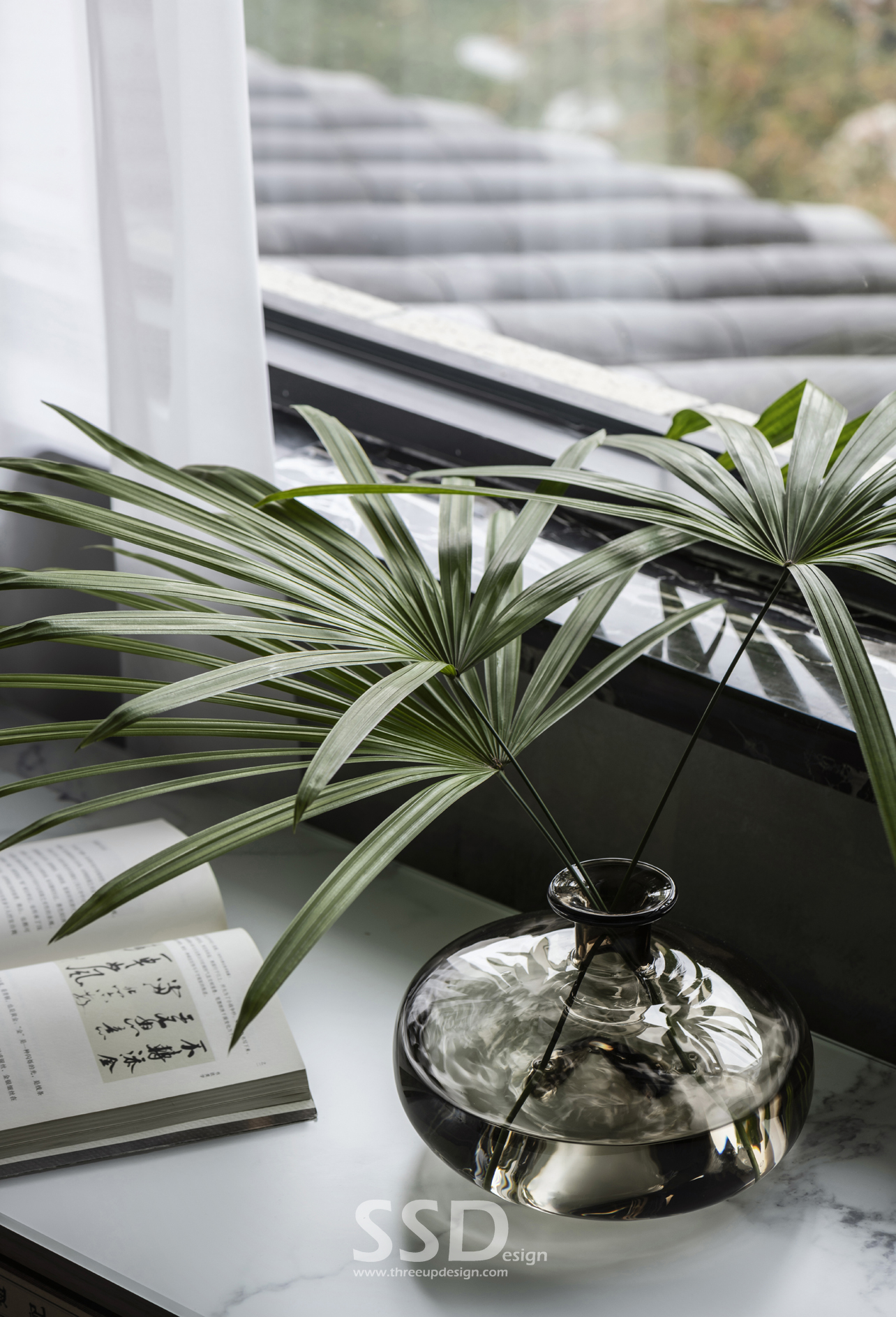 室内各空间主体以现代空间风格,简洁明亮的注入东方装饰主义意境。房间的布局均以花园为造景中心,设计中延伸庭院视觉,以灰阶淡彩登堂,干净利落,更显通透。