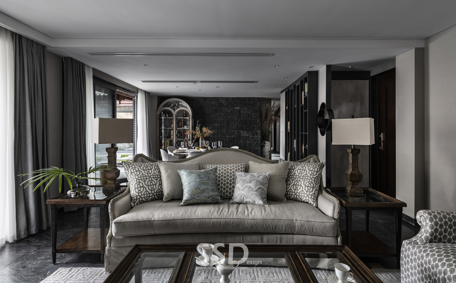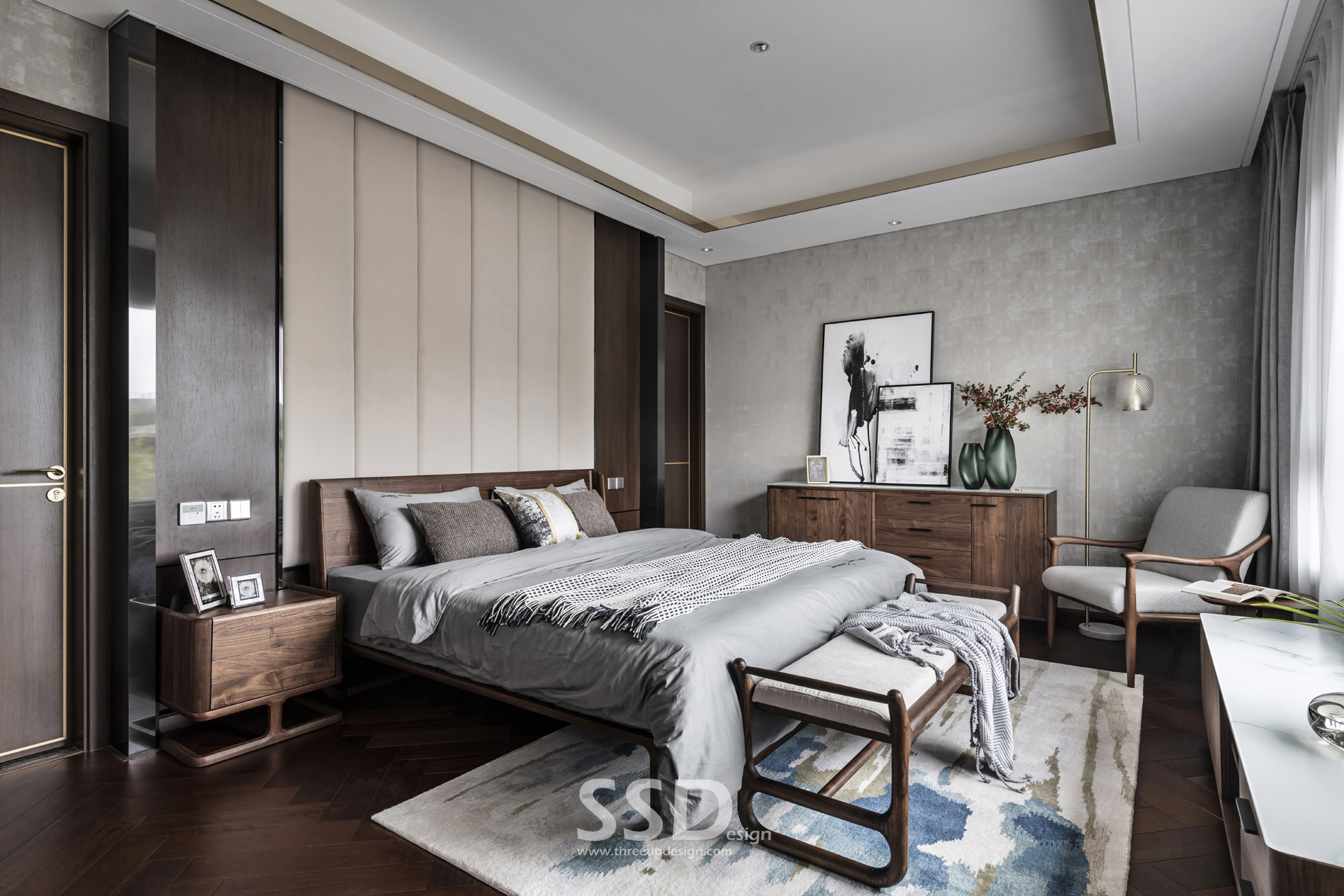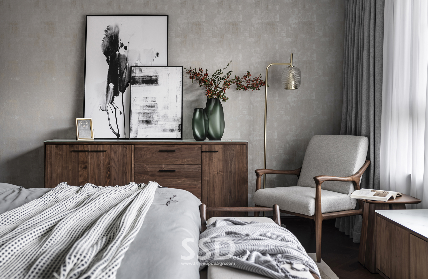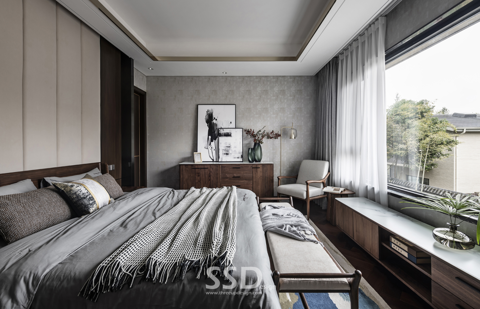 室内各空间主体以现代空间风格,简洁明亮的注入东方装饰主义意境。房间的布局均以花园为造景中心,设计中延伸庭院视觉,以灰阶淡彩登堂,干净利落,更显通透。