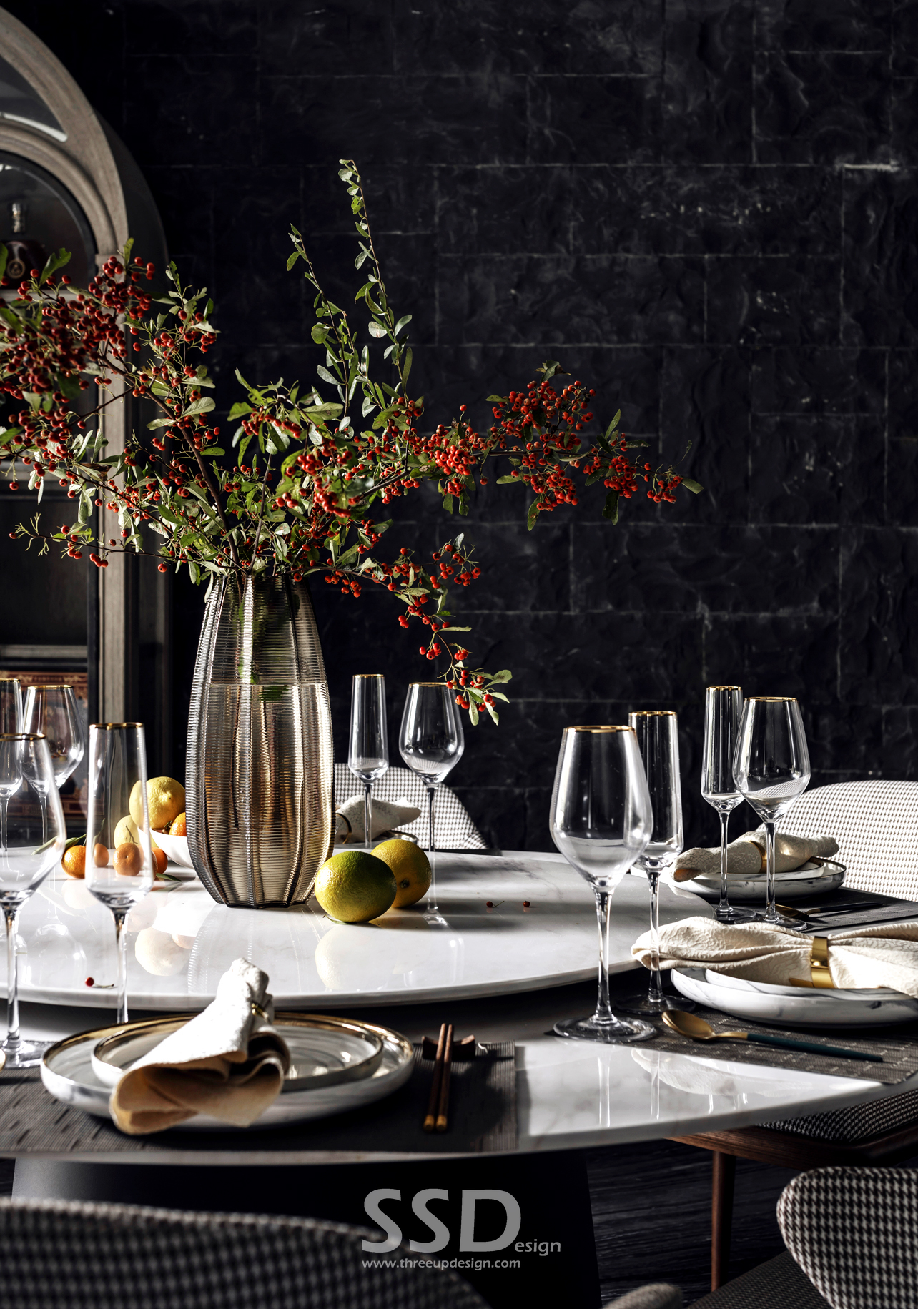 空间意境:在充满现代感的新东方意境中,可感受到一种从大自然中生长出的厚文化美学,它汇集了悠远的东方美感,散发文人意境,内涵丰富、细腻,在简约中有留白之美,在品味中带出时尚。