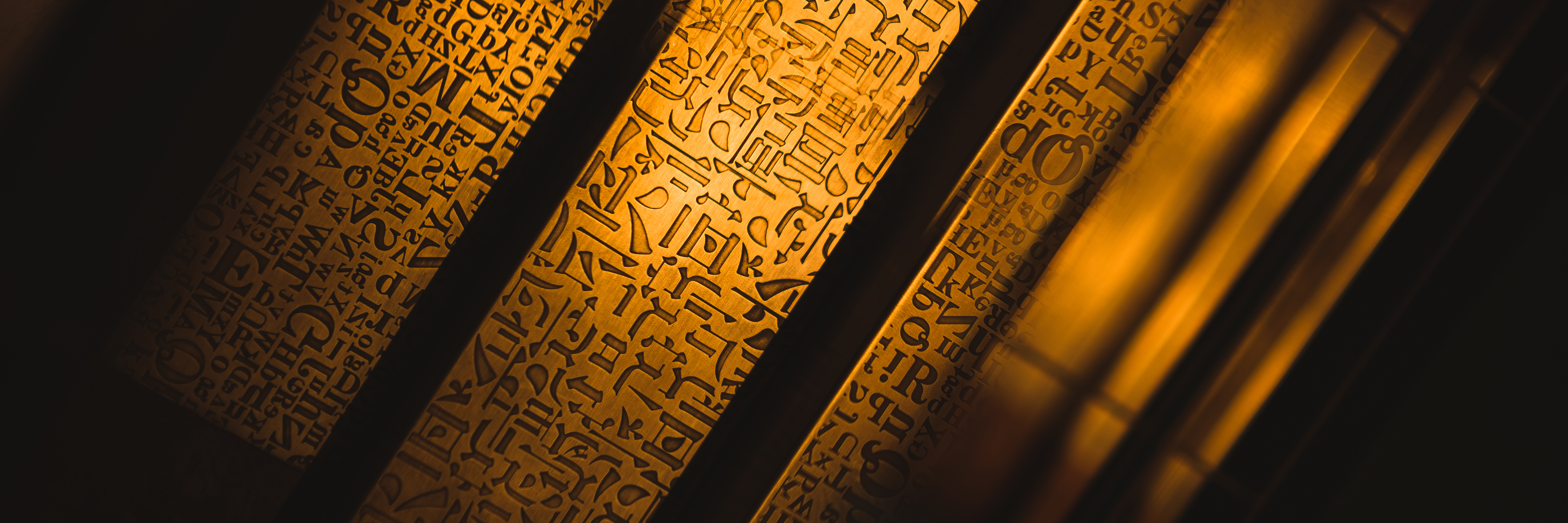 中厅通往二层的台阶,中间部分仍为59铜做旧加腐蚀工艺刻字,既能防滑,又如同文字在台阶间自然流淌。