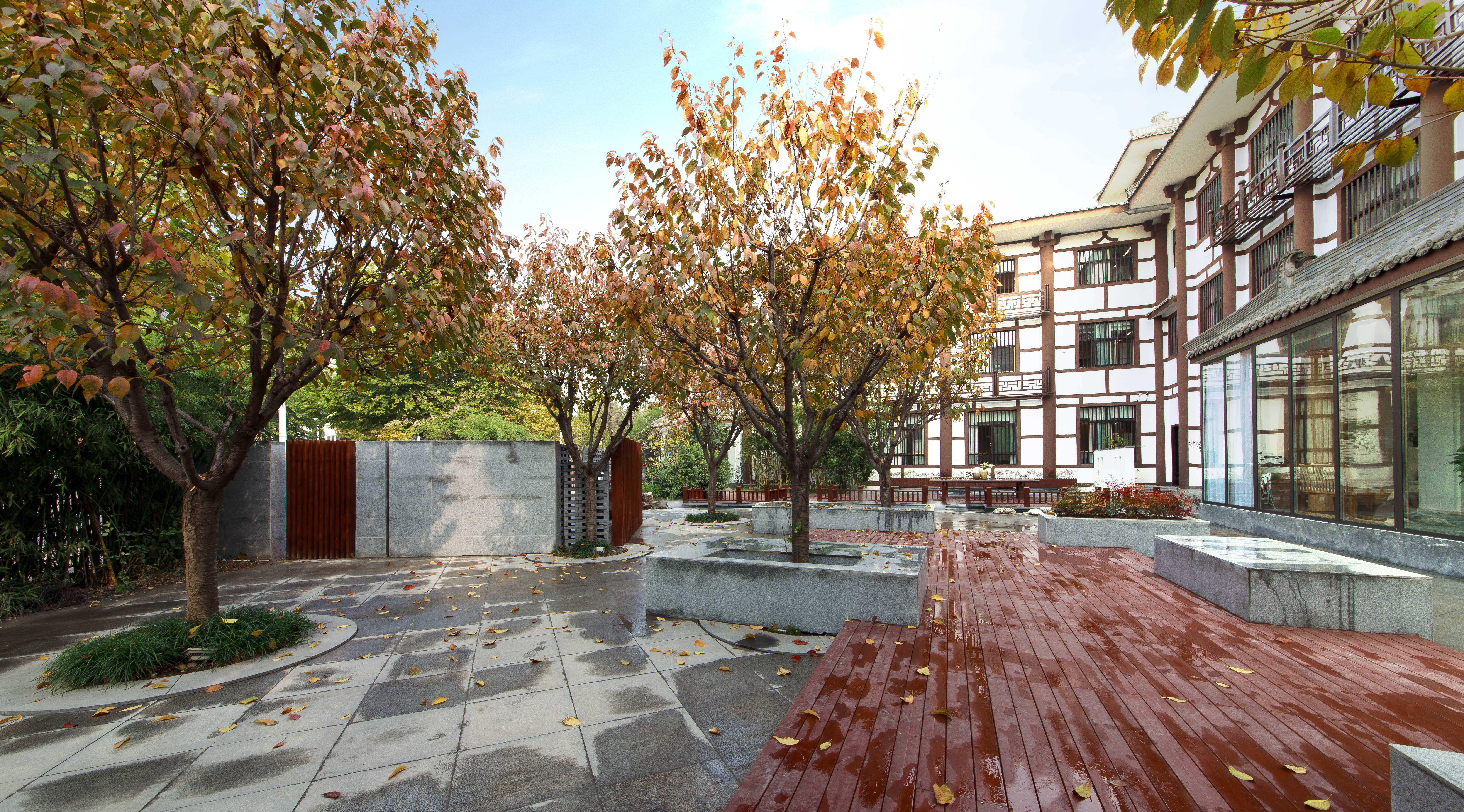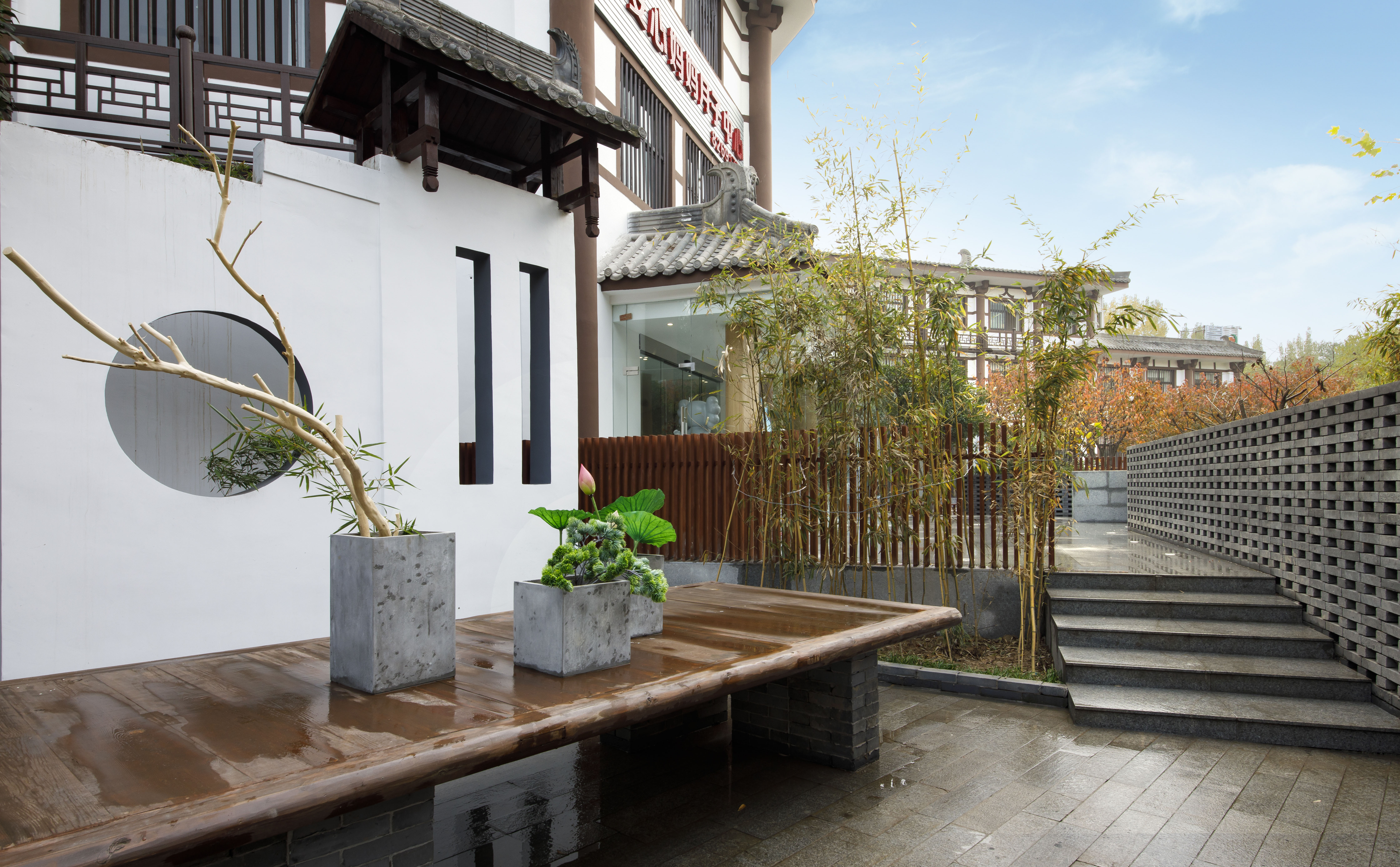 ∗原建筑为仿唐建筑呈T字型布局,属于青龙寺景区古建筑群落,故我们针对外立面控制性进行了二次修缮,拆除原建筑前期商业加建部分,更换所有门窗,翻新外立面