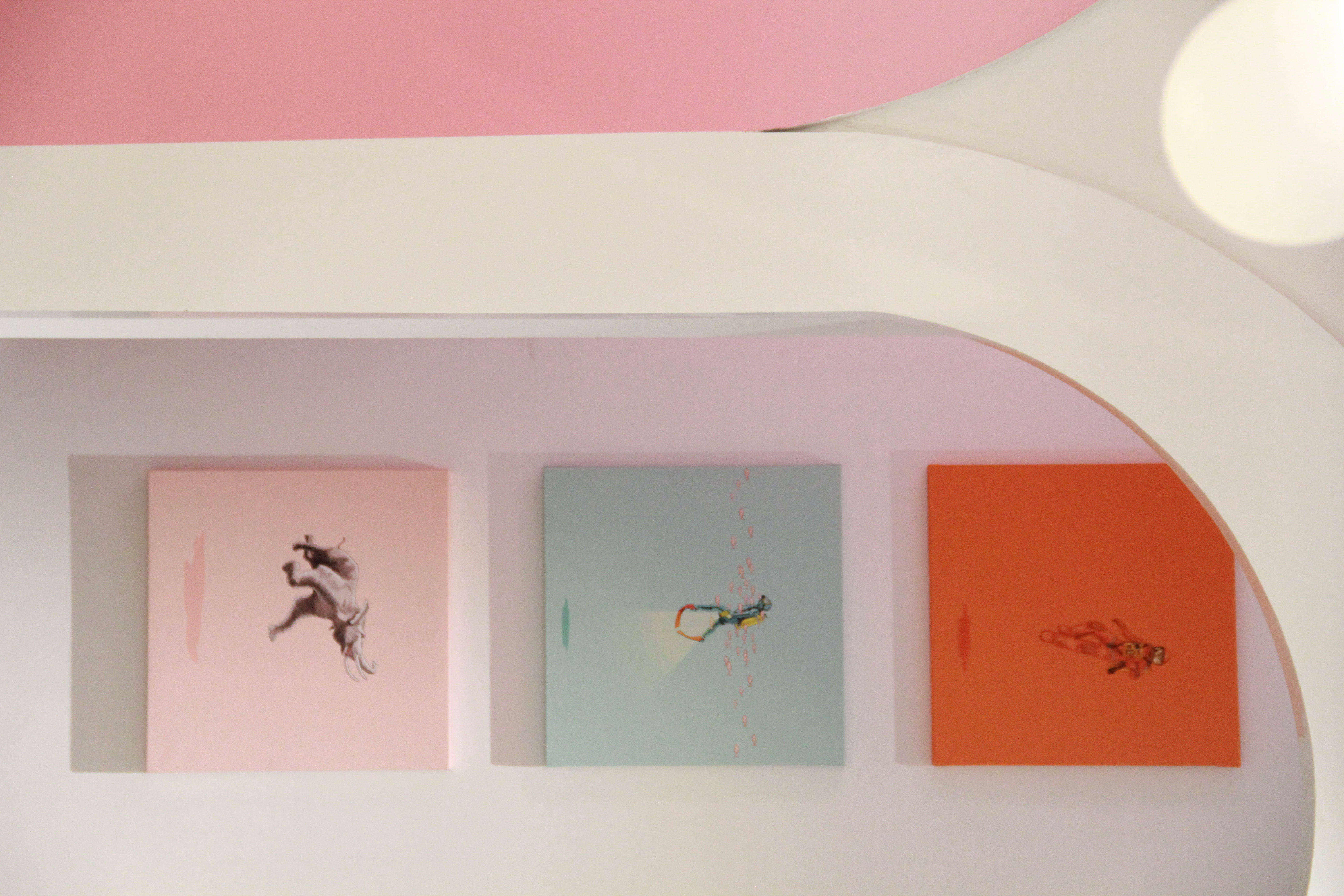设计选材:材料方面除去墙地顶的基础材料以外,其实空间没有过多的装饰造型,我们通过实用功能与造型结合,降低了不必要的支出。同时所有的造型镜框都是采用钢管材质方面拆卸可重复利用。