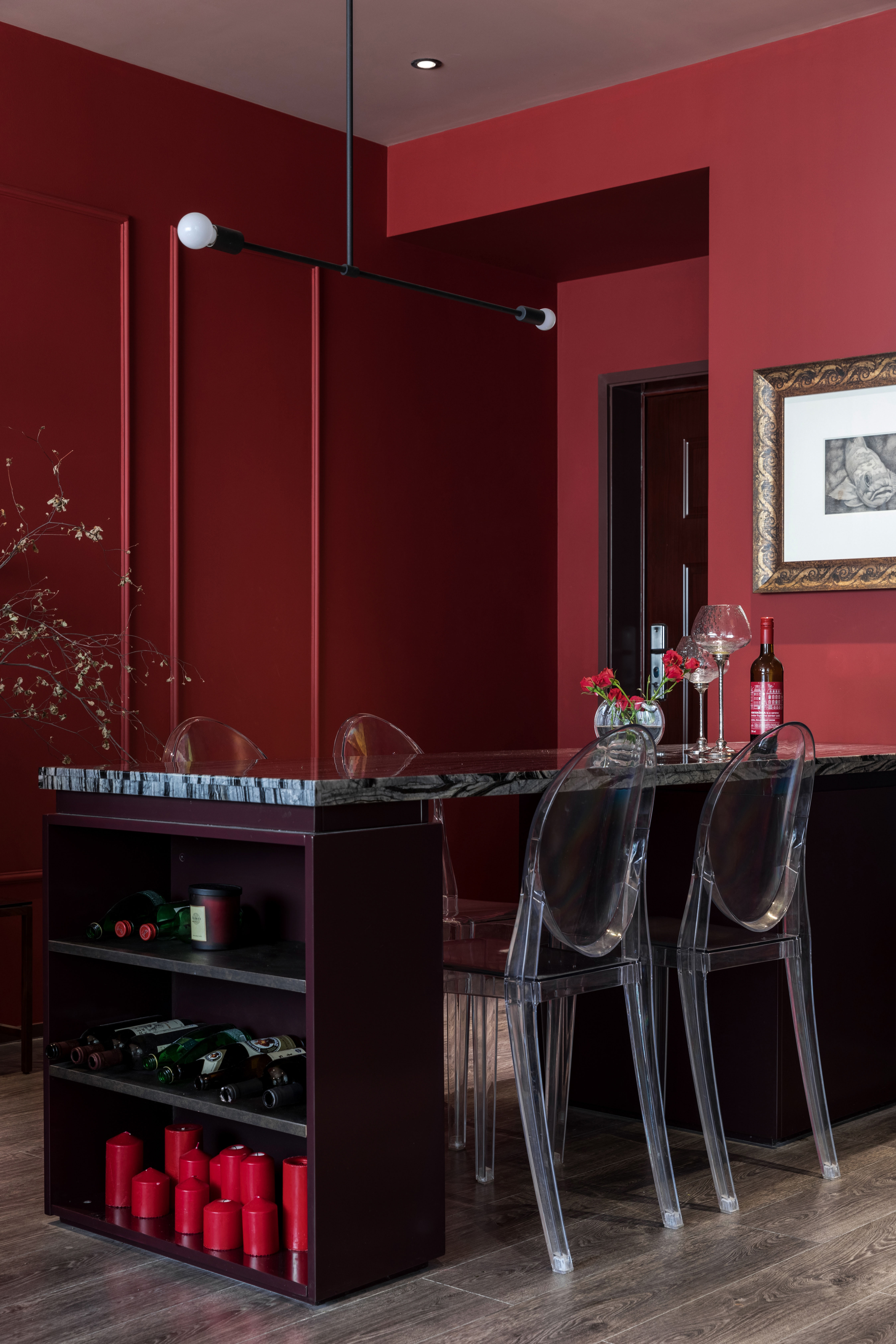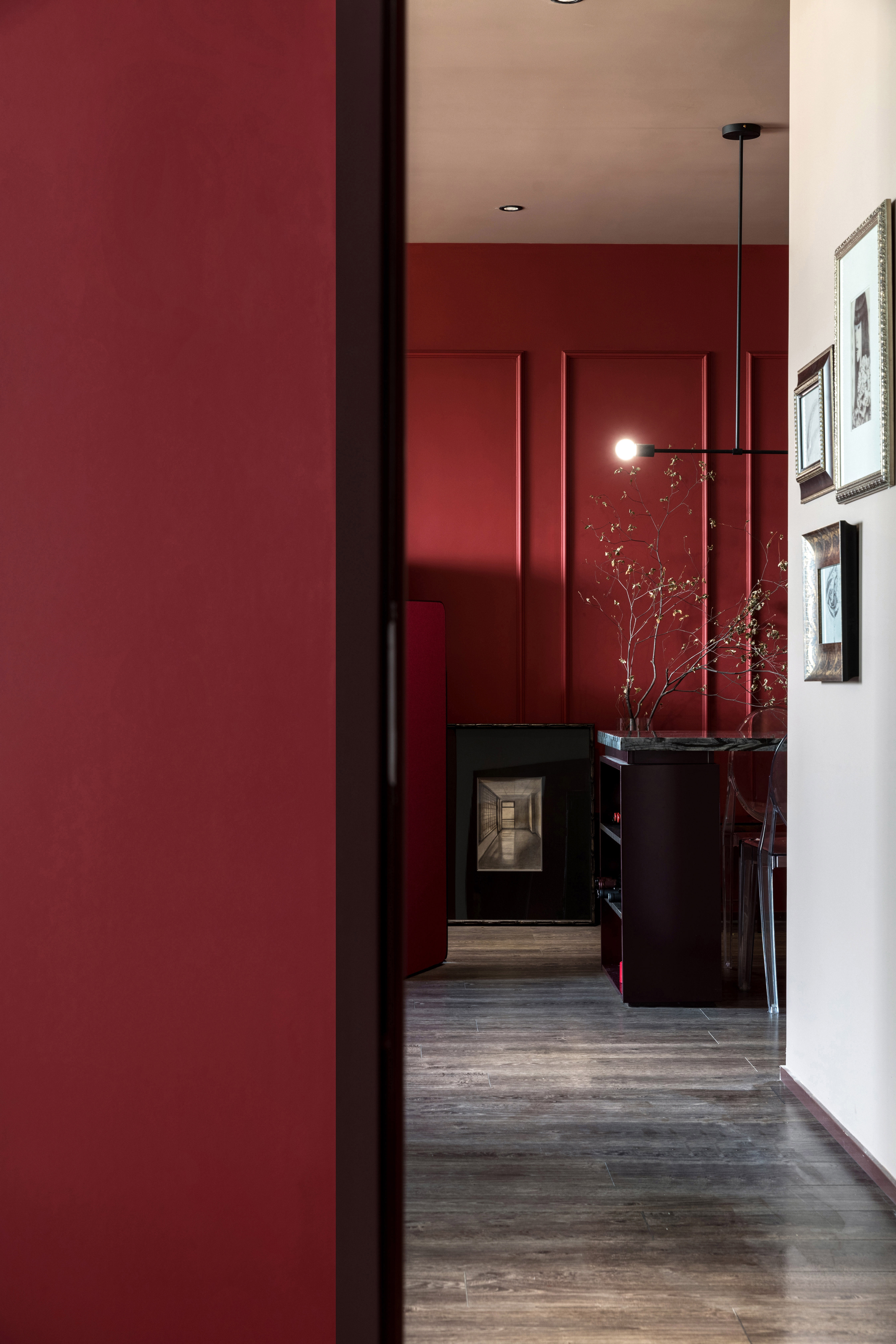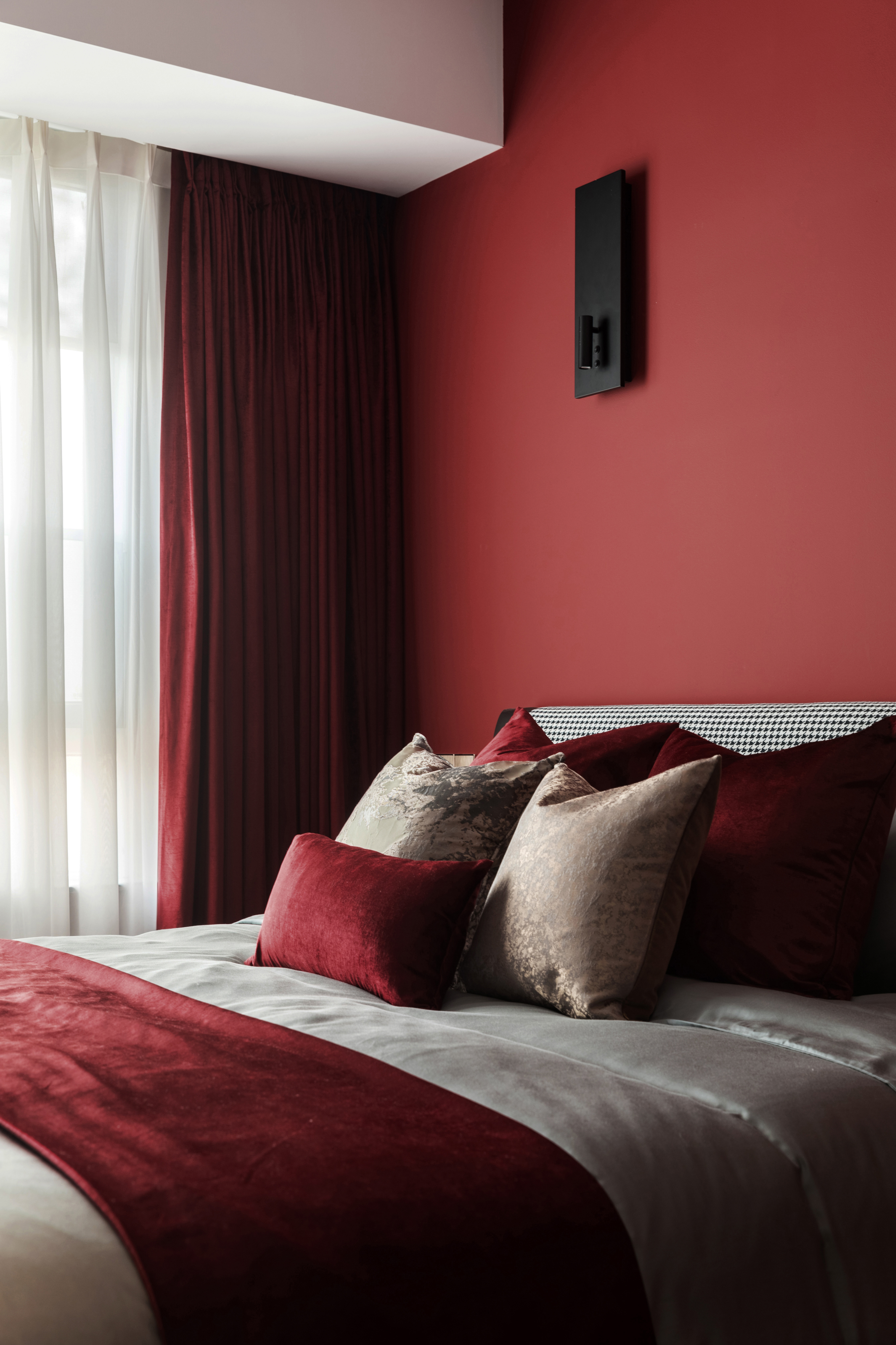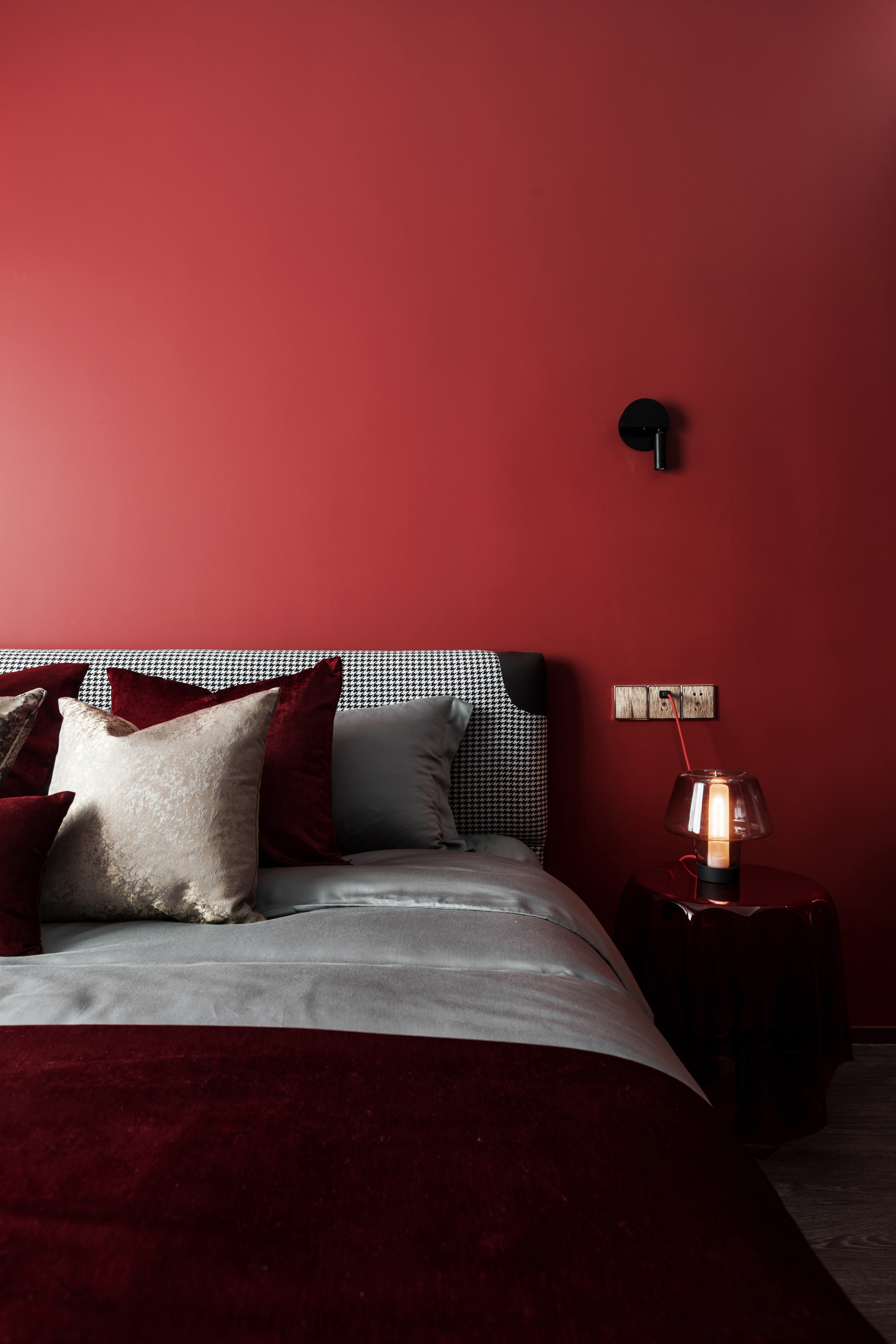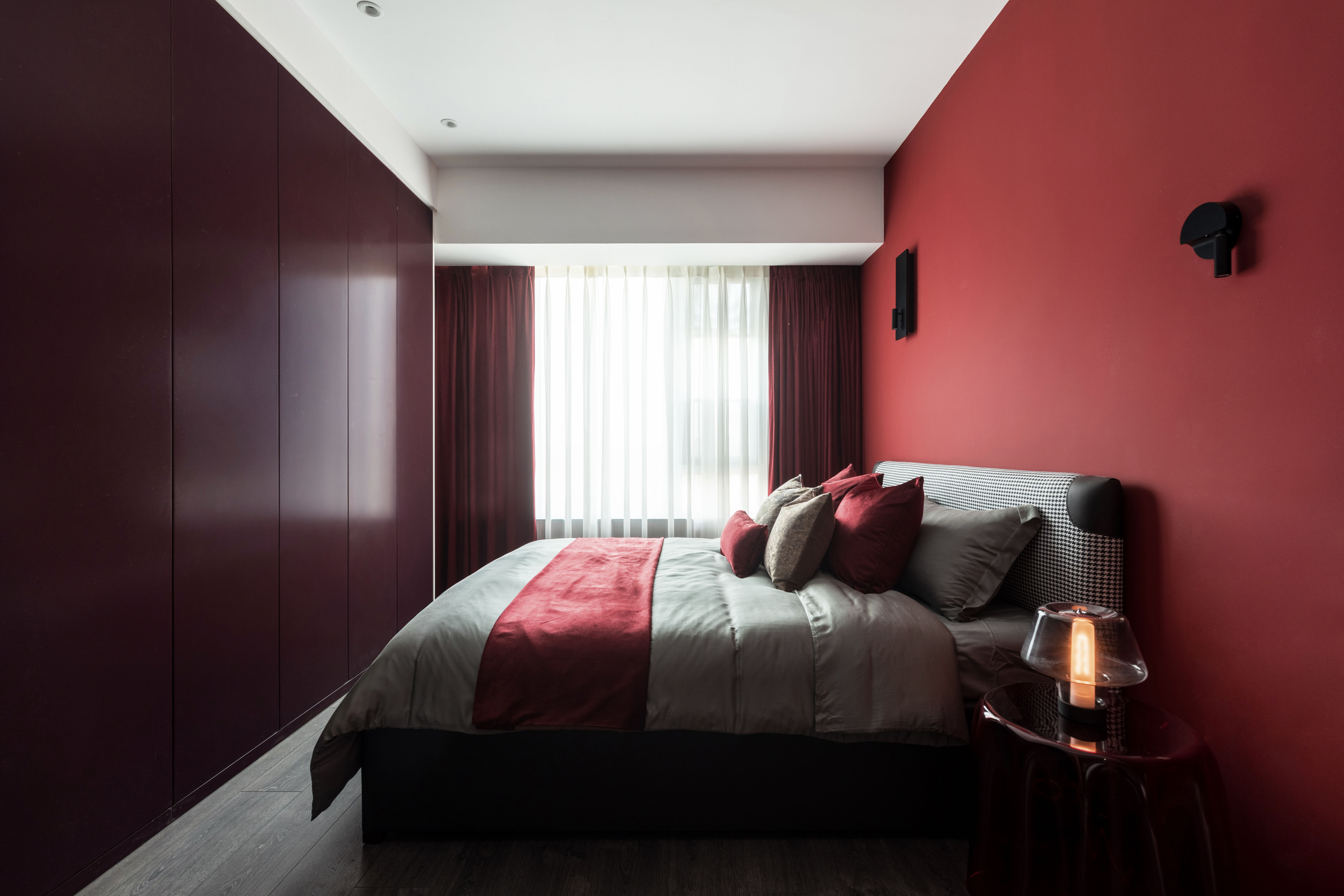 初与Art club红相识的场面定格在香格里拉的一面墙上:“我要把这片红带回家”当时作为设计师的我被这个色彩的张力深深的吸引,便产生了这样的想法。于是,我将这片红种在家里的任何地方:它生长于几何墙体上,蔓延在床头上,散列、张扬、又不失于安静,我想这便是根植于内心的真正的我。
