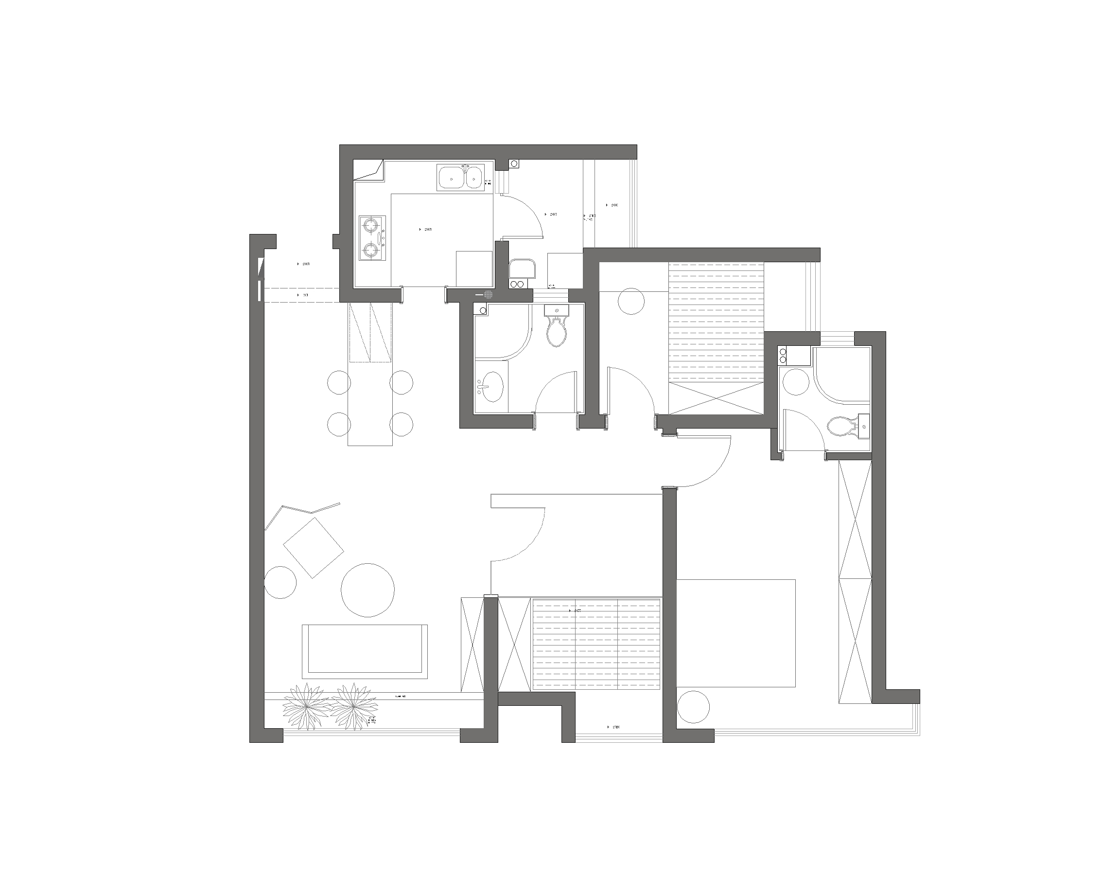 整个空间有张有驰 客厅的千鸟格屏风作为层次点缀又将客厅另一半的私密性包裹起来 呈现出恰到好处的美