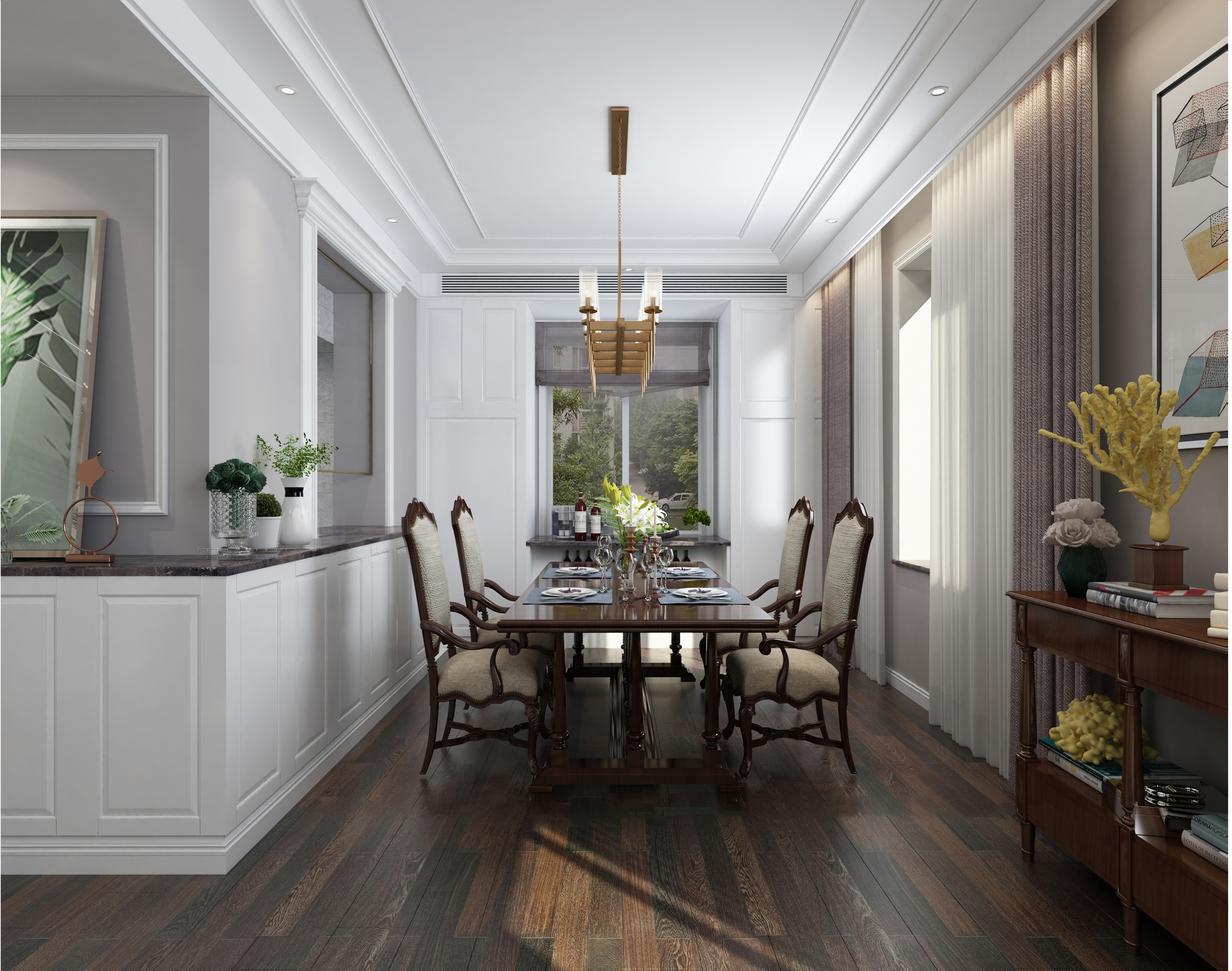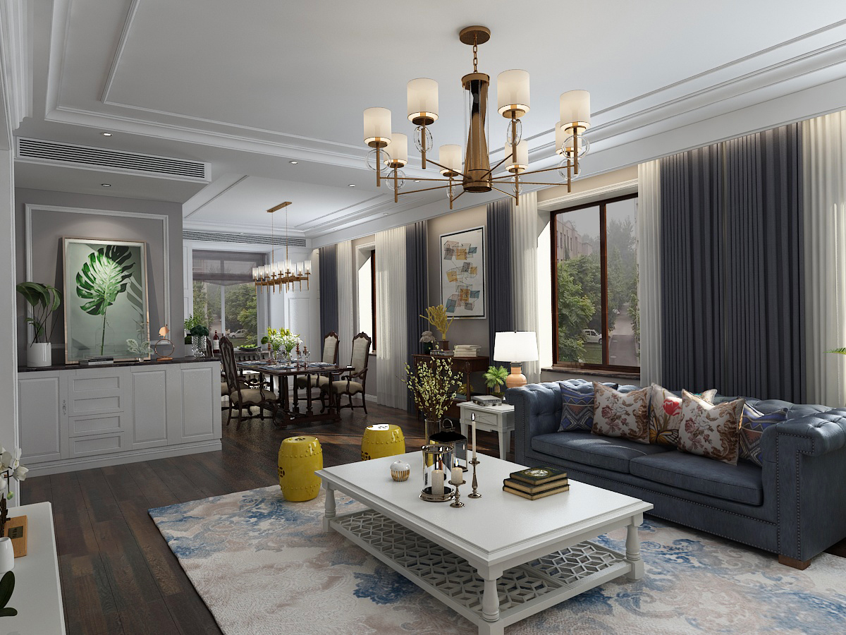空间意境:传统的美式风格由于地缘性的限制,其实不是很适合中国甚至天津地区。尤其是随着现代爆炸性文化的充斥,加上个人意识的觉醒。对于空间的使用及定义,愈发的趋向个人主义。不在受限于形式或者风格。对于住宅空间的机能使用也变得相对多元。所以我们在操作本案的过程中会适量的做些形式上的增减。其实更多的属于一个去风格化的过程。