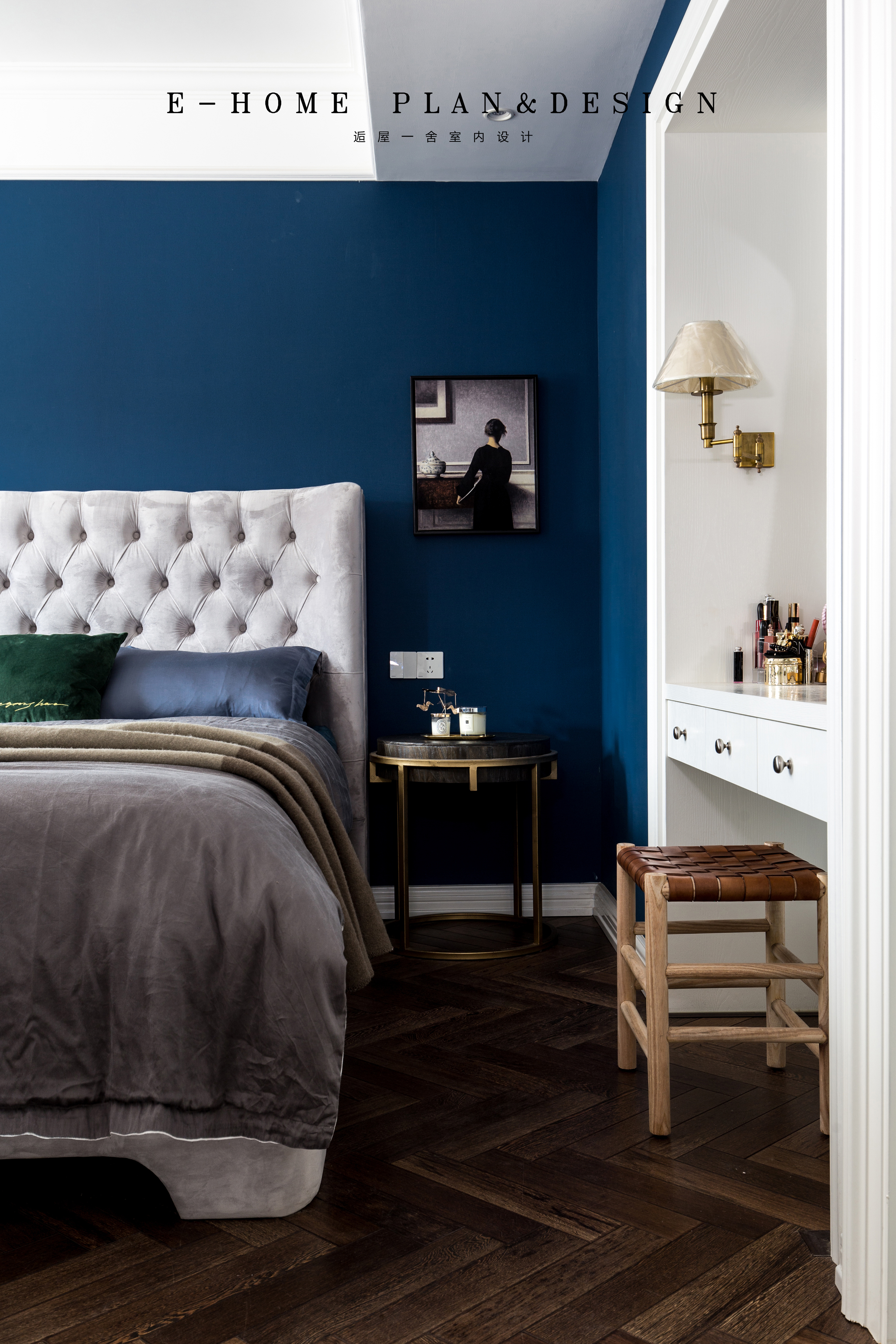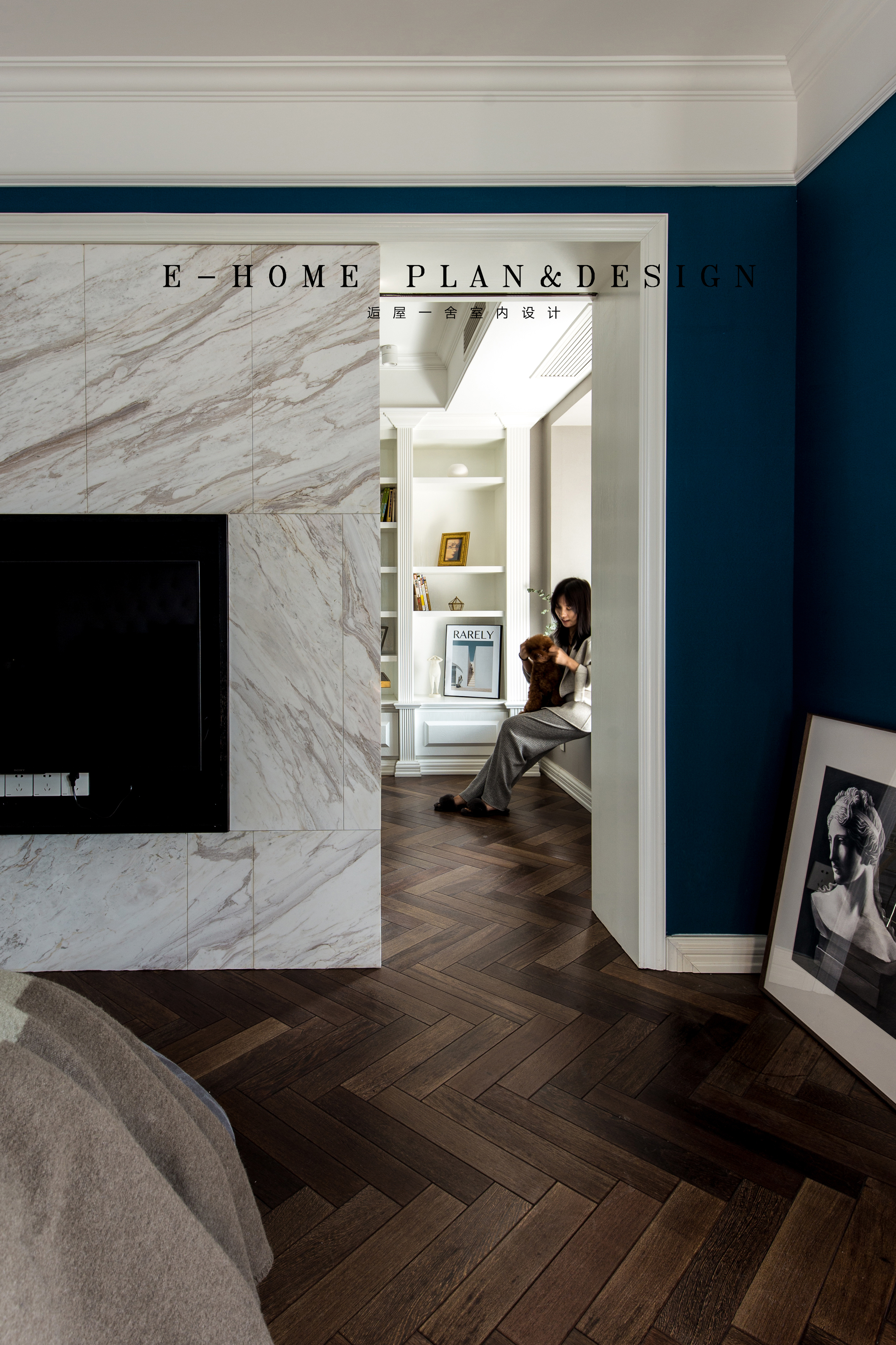 设计选材:石材的运用,给空间材质带来丰富的层次,柔化了书房和主卧的界限。