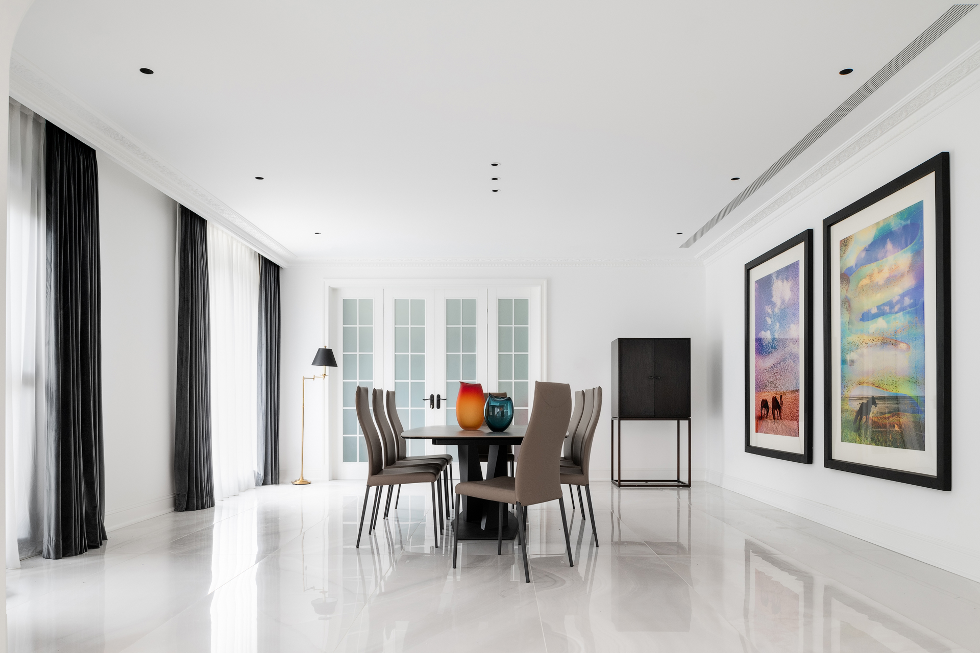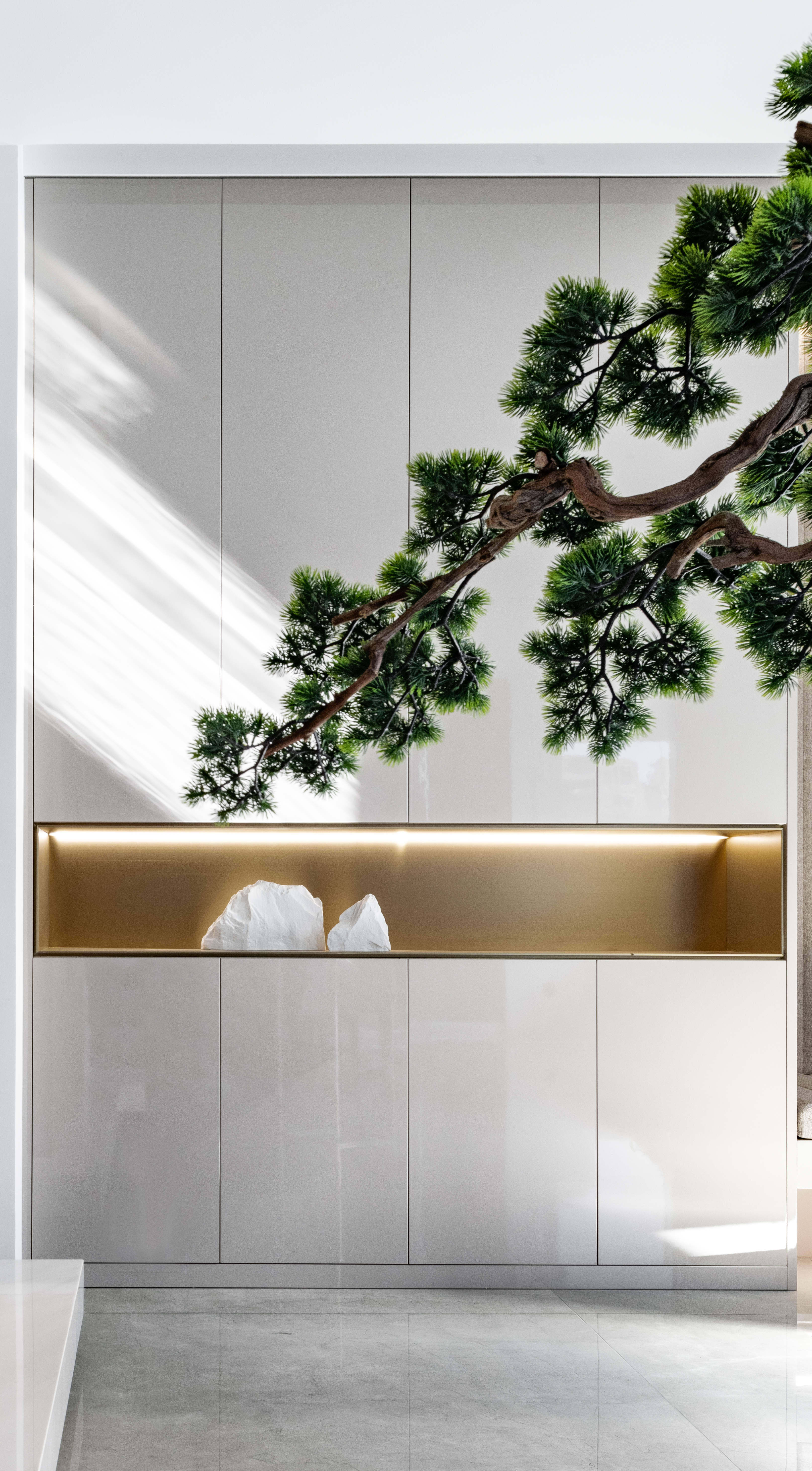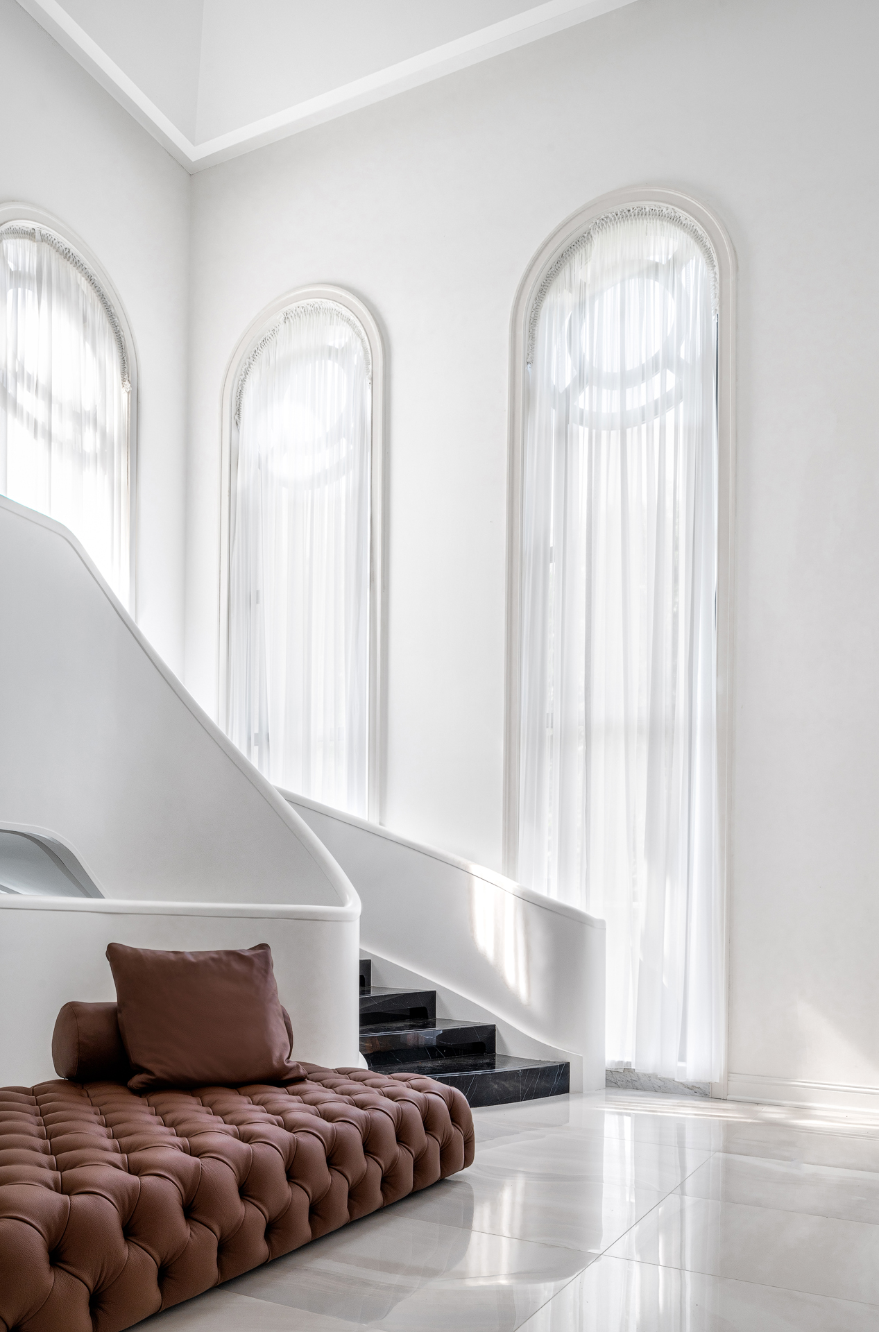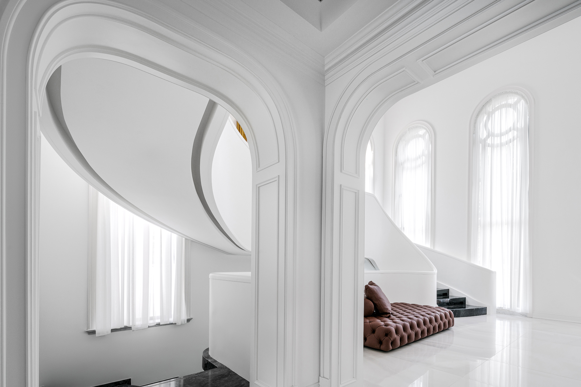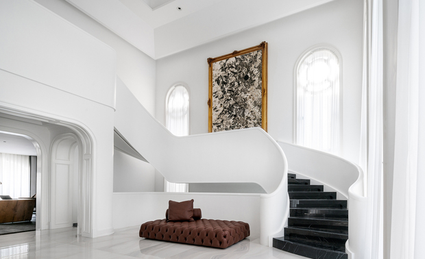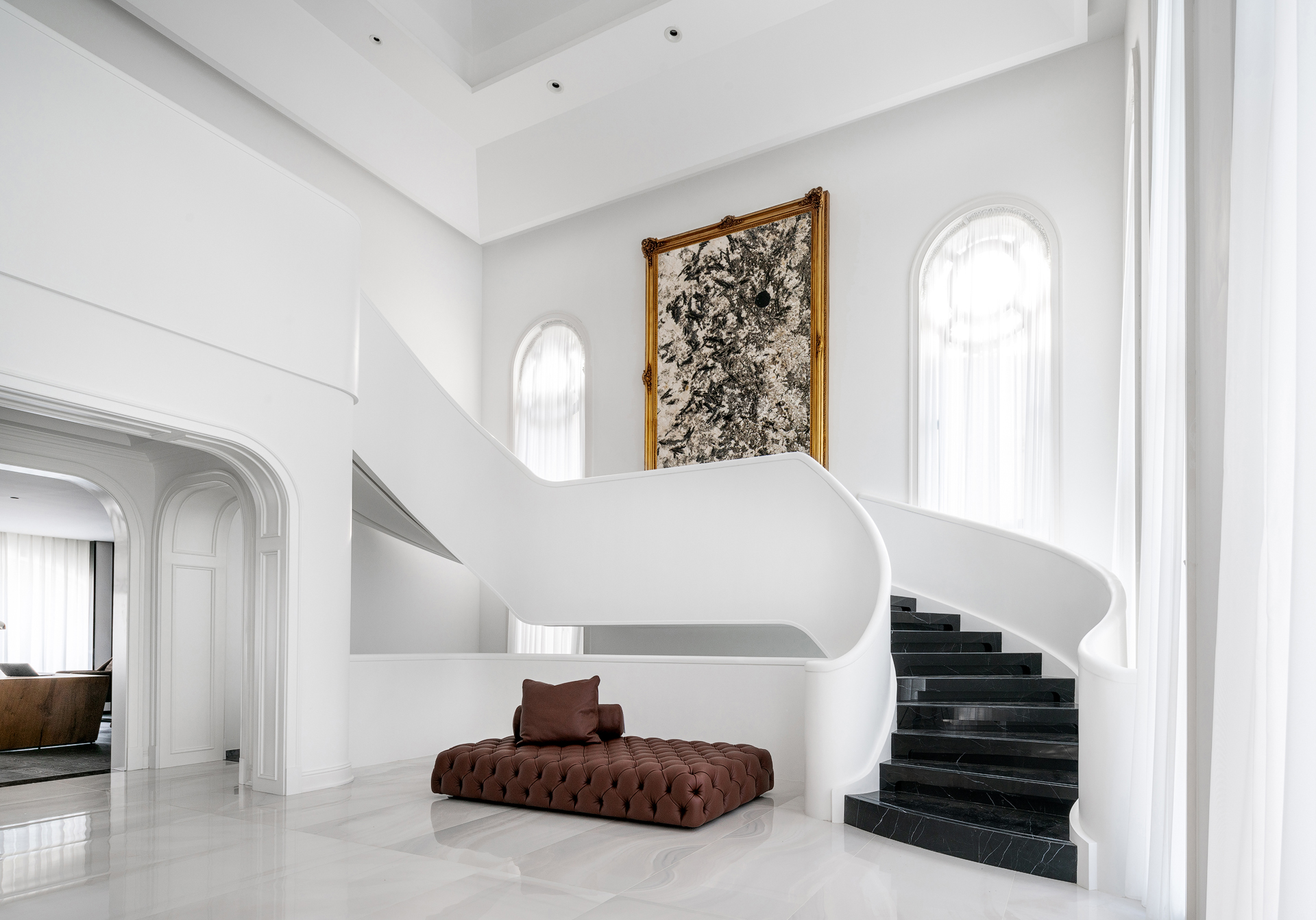 空间意境:风格以简约而富有灵动变化的曲线感,带动整体空间,游走于现代与新古典主义之间的形态艺术。