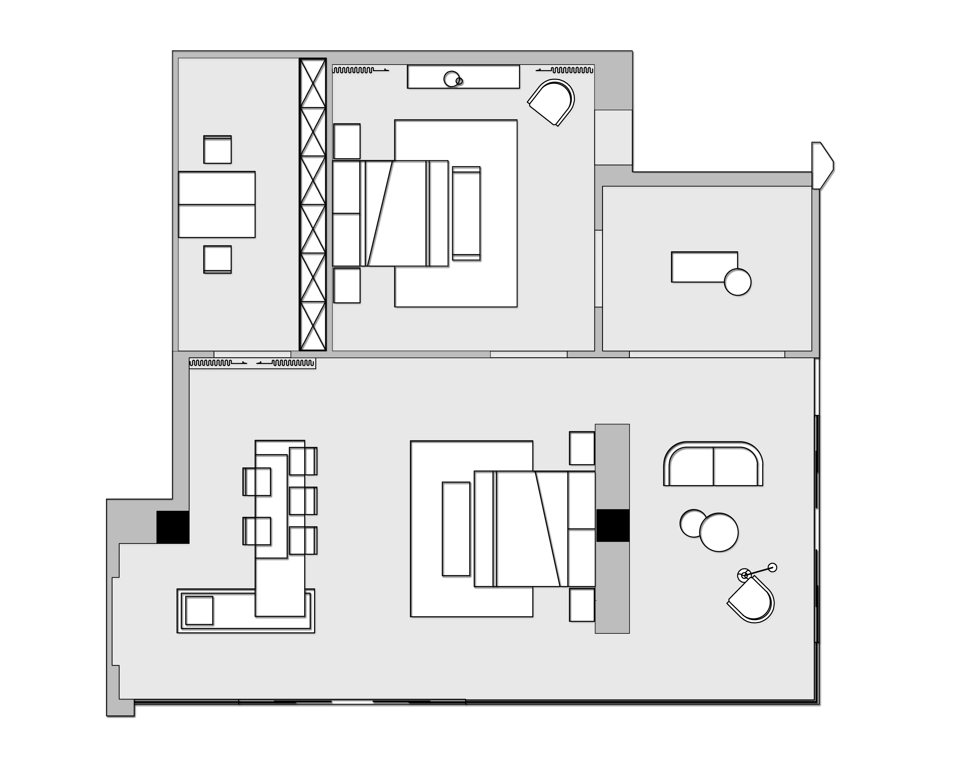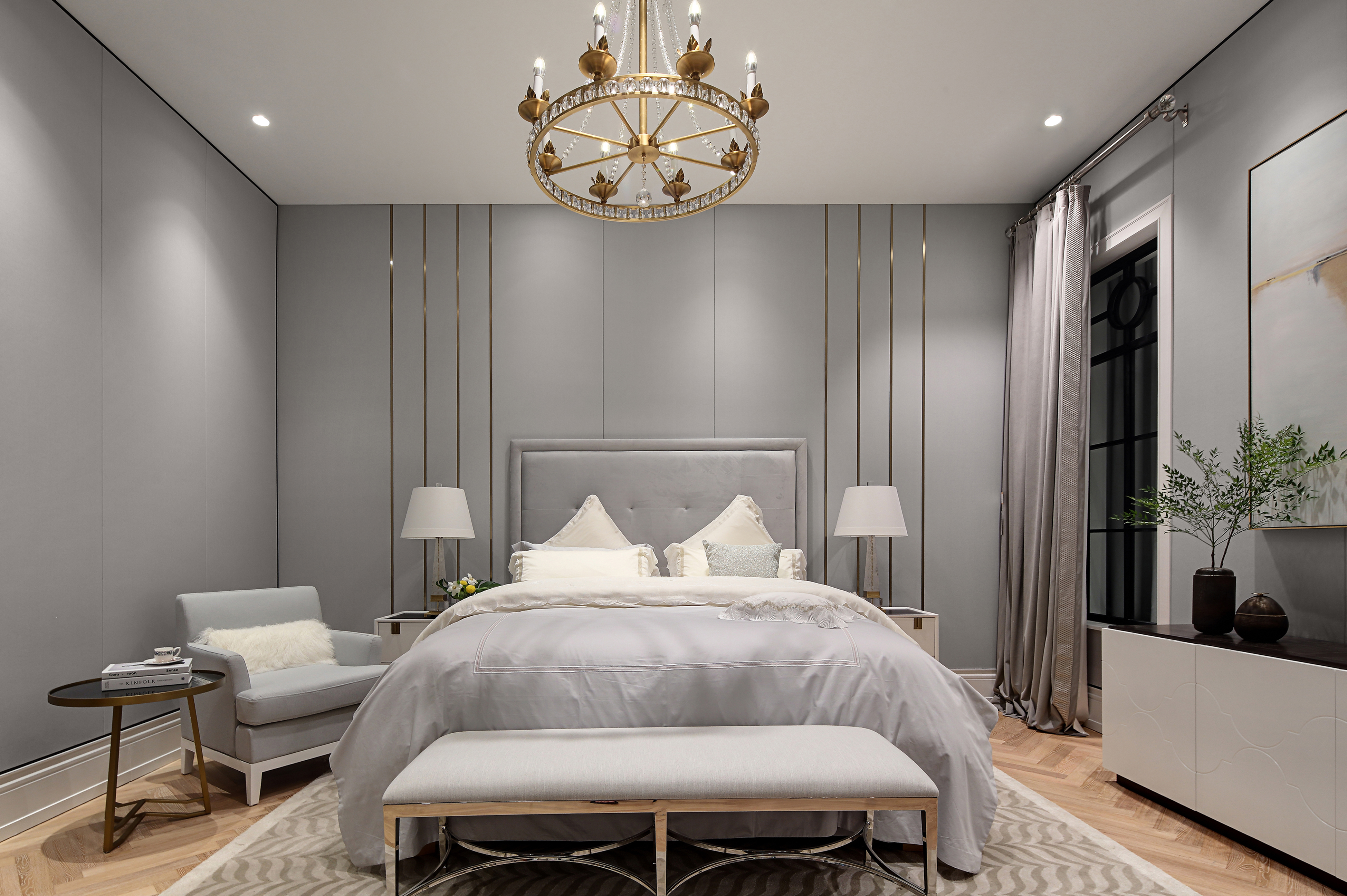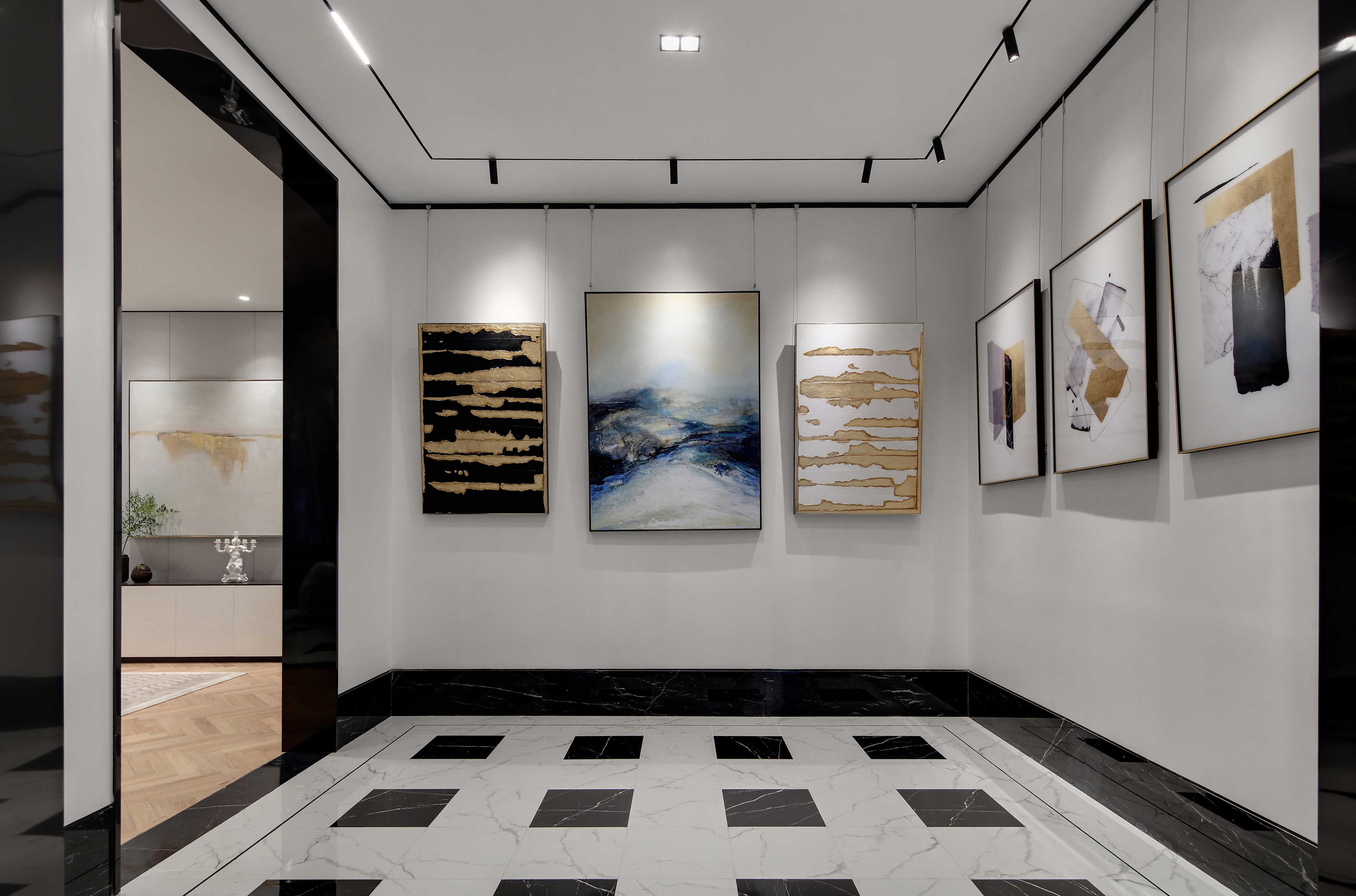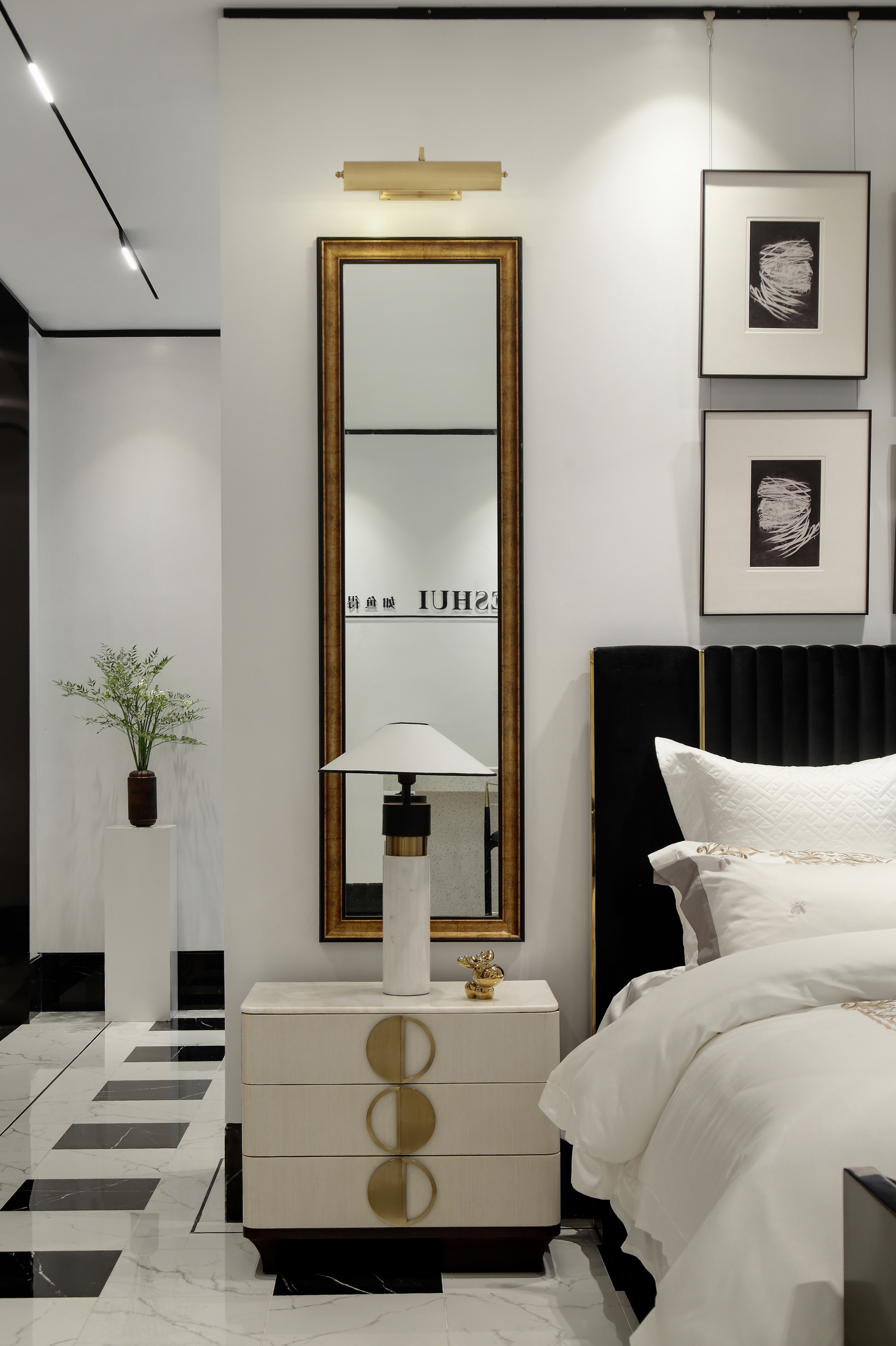 设计选材:优雅、舒适以及不露圭角的奢华是空间所要传达给人们的感受,坚硬的大理石和金属永远擅长表达奢华和现代感。为了避免空间过于冷淡或浮夸,所以选择丝绒布料穿插其中,在坚硬和温暖中获得平衡。材质、肌理与色泽交织对照,一切都恰如其分,却又灵活可塑。